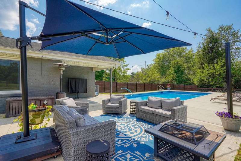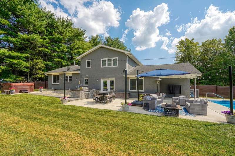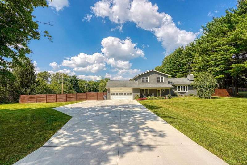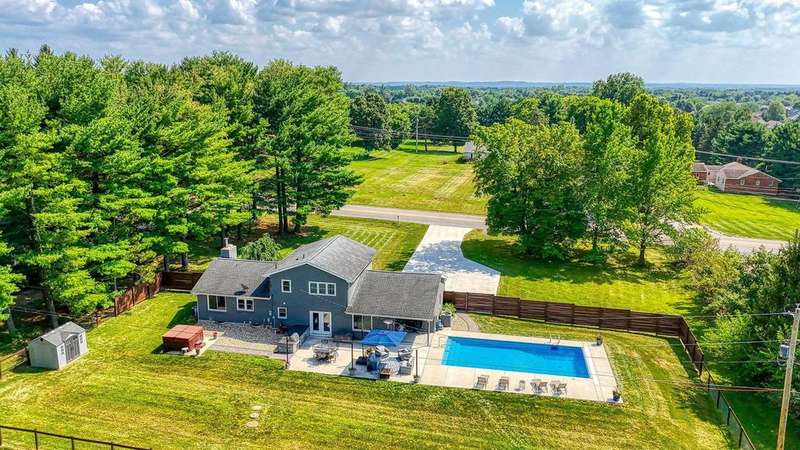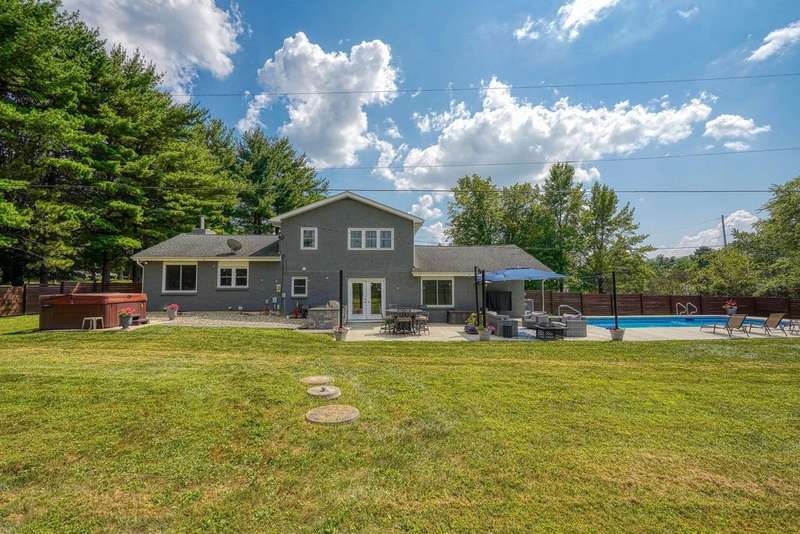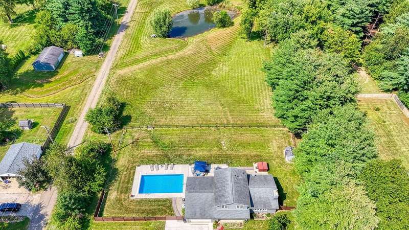 Wait until you see this property! With the gorgeous land, this could be a horse and livestock paradise! Welcome home to this gorgeous, split-level home on 6.23 acres of private land! The park-like setting features an amazing pond & detached pole barn! Enjoy your free time on the stunning patio with built-in grill, mini fridge, & beautiful granite countertops, all while overlooking the beautiful, inground pool & hot tub! From the moment you walk in the door, the open foyer overlooks the lovely, living rm w/ stone fireplace! The upgraded kitchen boasts lots of cabinetry, granite countertops, ss appliances, & a lg dining space! Three, nice size bedrooms & 2 full baths! The lower level offers a finished rec rm plus an additional room that could be an office, bedroom, or workout room! Lots of additional storage too! Two car garage & new concrete driveway. Super clean & well-kept! This home is truly a must see!
