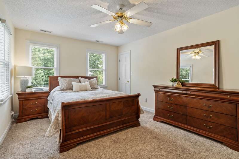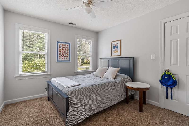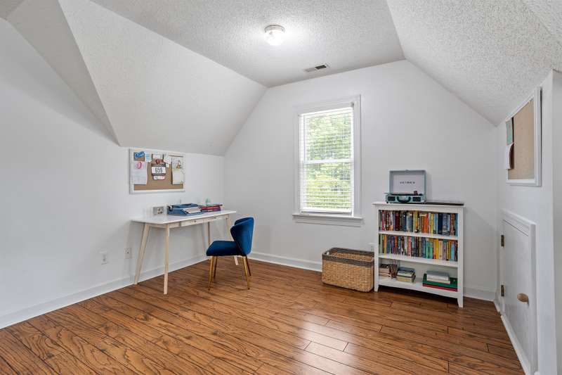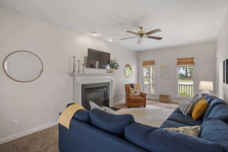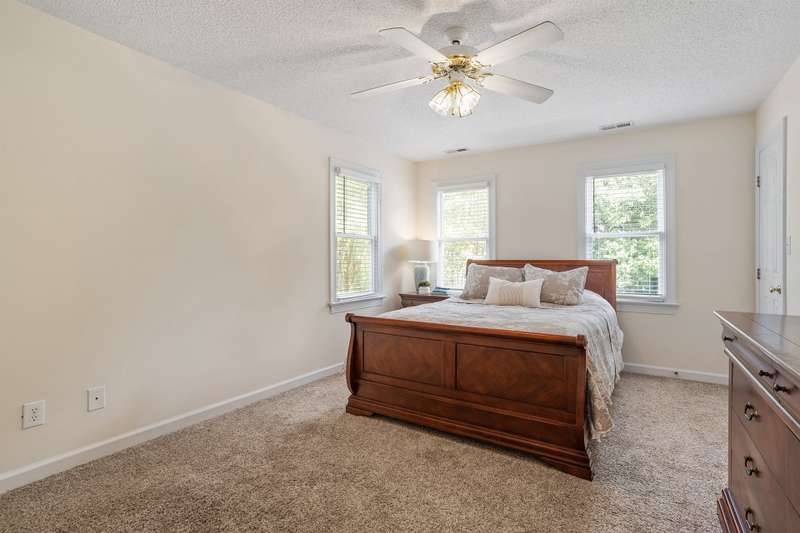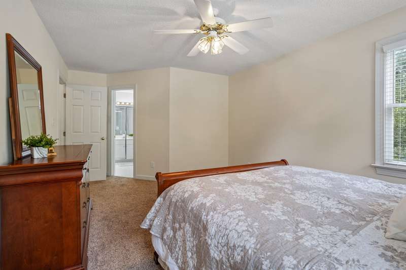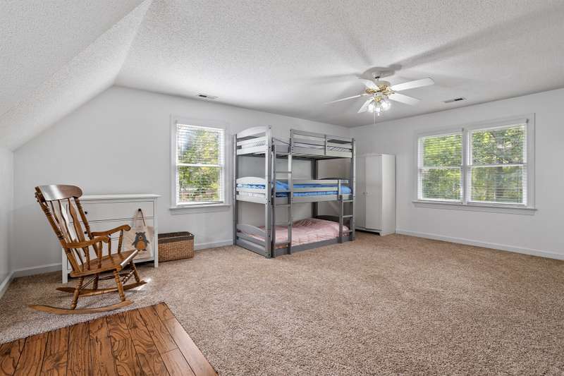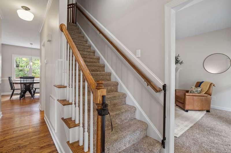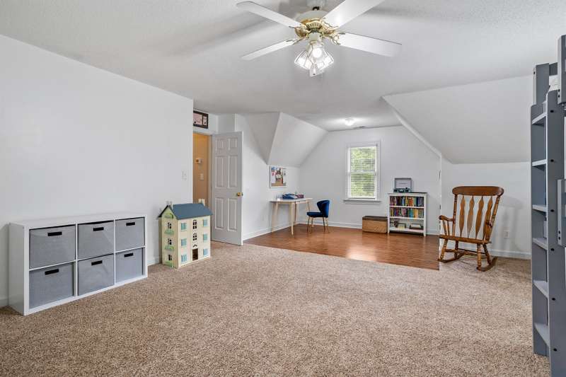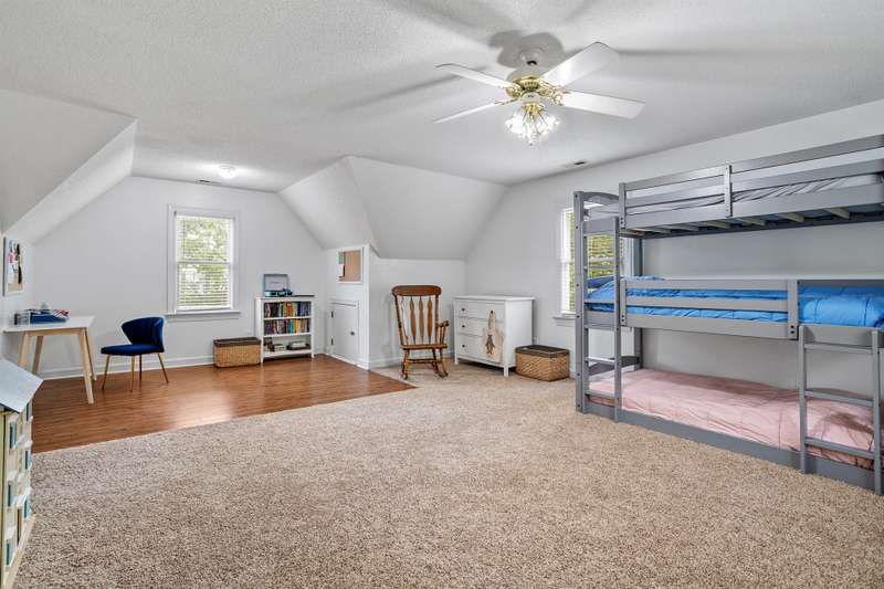 Welcome to this timeless two-story Colonial in the desirable Woodlands at Oak Hall. Mins away from downtown Holly Springs and Ting Park, tucked away on a quiet tree lined cul-de-sac, this home offers 3 bedrooms, a large upstairs bonus room, and a walk-up attic that could be finished for future living space. The main level features a formal dining room, a comfortable living room with cozy gas logs that leads to a den that can serve as an office or flex space. The updated kitchen boasts quartz countertops, a center island, and stainless steel appliances, and opens to a bright breakfast room overlooking the large backyard. A 2 car garage and 1/2 bath complete the main level. The upper level has bedrooms along with a versatile bonus room that can double as a 4th bedroom. With its classic Colonial charm, flexible floor plan, and private cul-de-sac setting, this home is an excellent opportunity in one of Holly Springs' most sought-after neighborhoods with a pool and dog park.