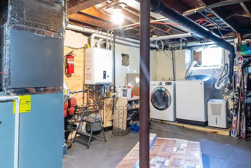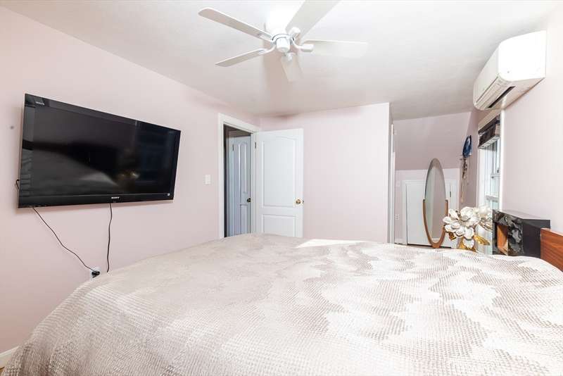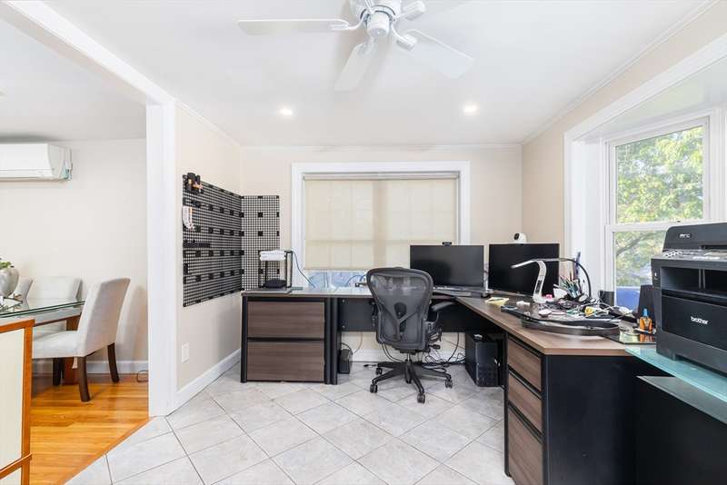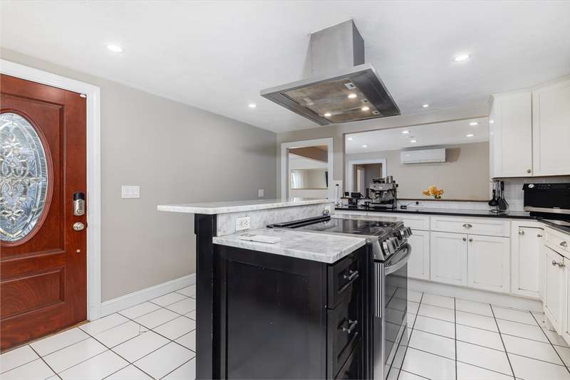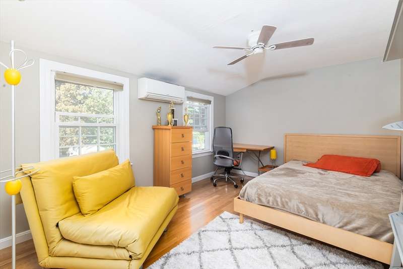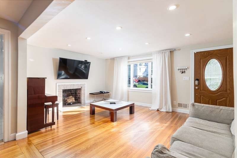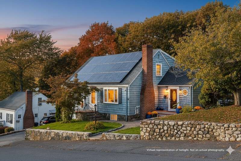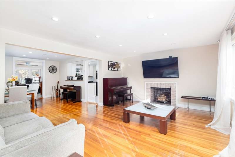 Stunning expanded Cape in a desirable family neighborhood! This sun-filled home offers an open floor plan with gleaming hardwoods, elegant living room with fireplace, sunroom, and updated kitchen with granite counters and stainless steel appliances. Three bedrooms upstairs with an updated bath, plus two versatile first-floor rooms perfect for bedroom, office, or den.Enjoy the new deck, patio with pergola, and beautifully landscaped level yard with sprinklers—ideal for entertaining. Many updates include newer heating system, mini-split AC/heat pumps, tankless water heater, new windows/doors, and owned solar panels with EV charger. Garage, large basement storage, and easy commuter location near the high school.Welcome home for the holidays!