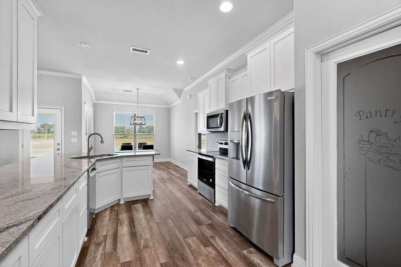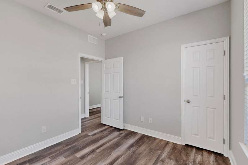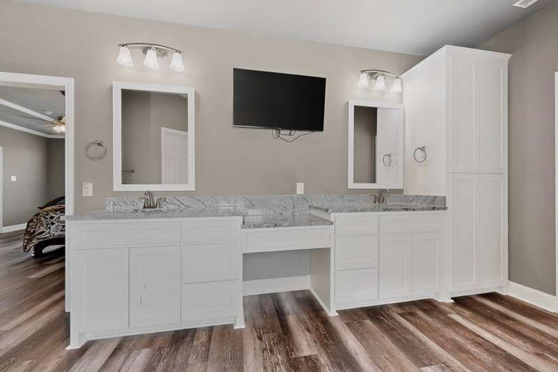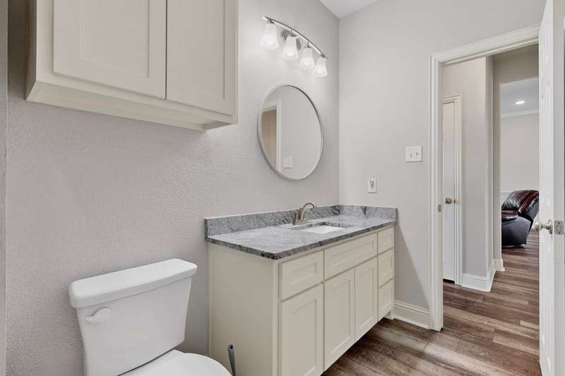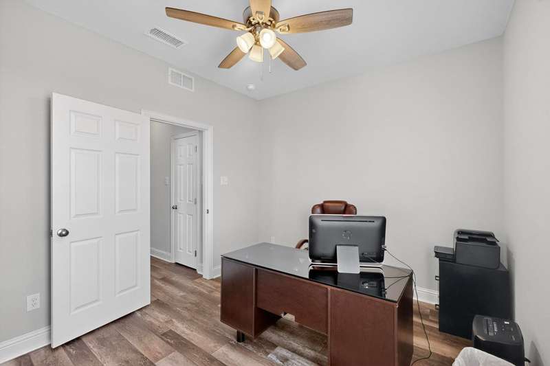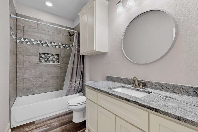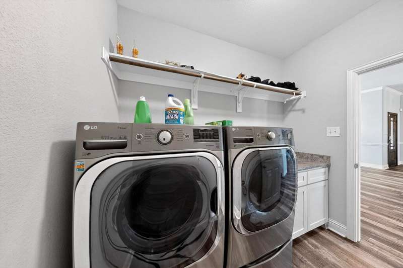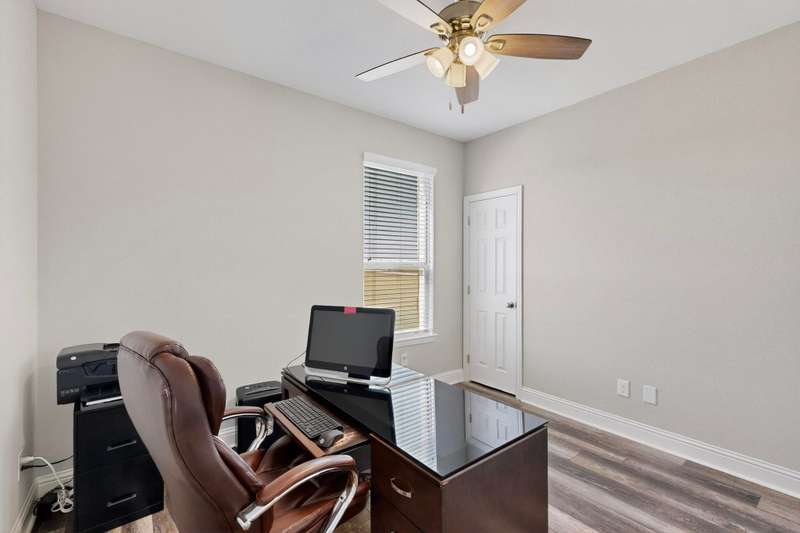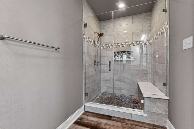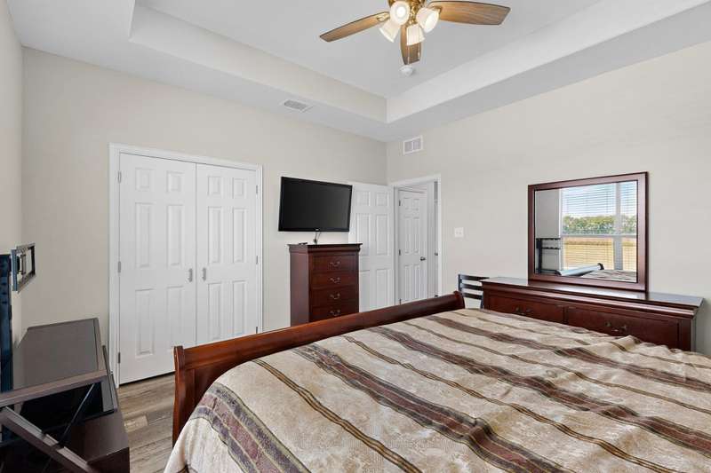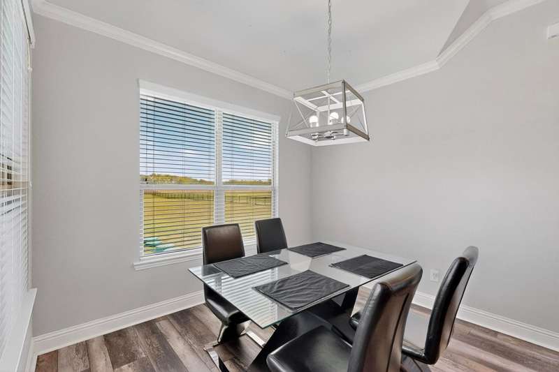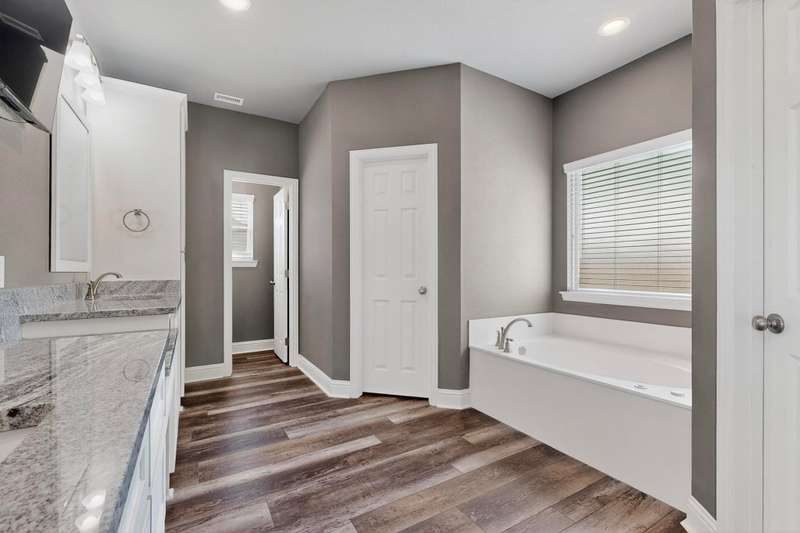 Welcome to a stunning 4-bedroom, 2-bathroom home built in 2021, nestled on 1.890 acres of serene Texas land. From the moment you arrive, the expansive driveway and wrought iron fencing set the tone for elegance and privacy. The light brick exterior is beautifully accented by rich mahogany shutters and a matching front door, offering exceptional curb appeal. Step inside to a light grey interior palette complemented by dark wood plank-style tile flooring. The open-concept living space flows effortlessly into a chefs kitchen featuring granite countertops, shaker cabinetry, and a stone backsplash that adds texture and warmth. Retreat to the luxurious master suite with an inset ceiling and private sitting area. A sliding barn door reveals a spa-like ensuite with dual vanities, spacious cabinetry, a soaking tub, and a walk-in shower designed for relaxation. Updated bathrooms showcase contrasting tilework, modern lighting, and refined finishes throughout. And when its time to unwind, step into your backyard oasis complete with wide-open skies, lush acreage, and a brand-new pool perfect for entertaining or peaceful solitude.