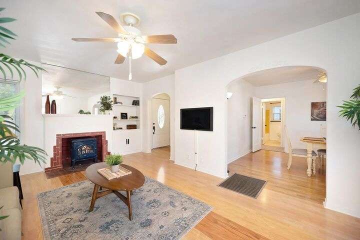 HUGE PRICE REDUCTION - Black Friday SALE!! Classic 1940's home on a large lot in one of the best kept secret neighborhoods in Oak Park. This charming single story home offers a welcoming entry, 2 large bedrooms with spacious closets, 1 full bathroom, and an oversized 1 car detached garage with room for storage or a workshop. Garage is tucked at the back of the property at end of a long driveway. Enjoy an open spacious floor plan with a light and bright living room, dining room, and kitchen that overlooks the backyard. The kitchen has tile countertops and a cozy breakfast nook, spice cabinet, and freestanding gas range. Flooring includes hardwood, laminate, tile, and newly installed carpet in August 2025. Enjoy multiple ceiling fans, window blinds and gas floor furnace. Large backyard with concrete patio, walkways, open lawn area, and a covered deck perfect for entertaining. Come see this beautiful home in this well sought after neighborhood!