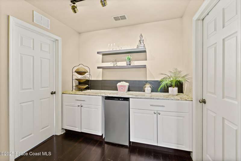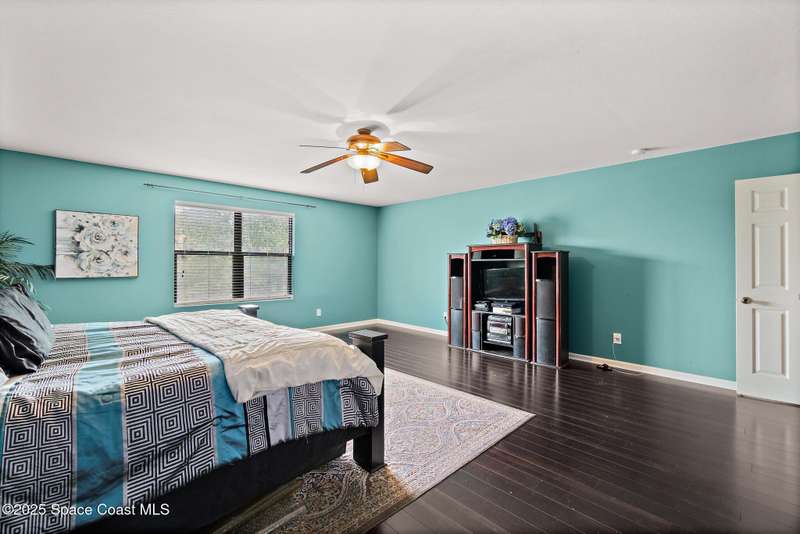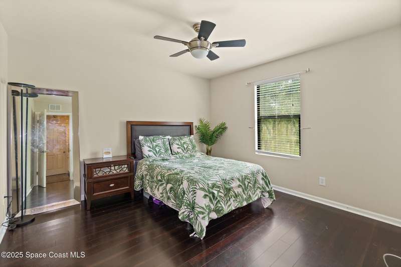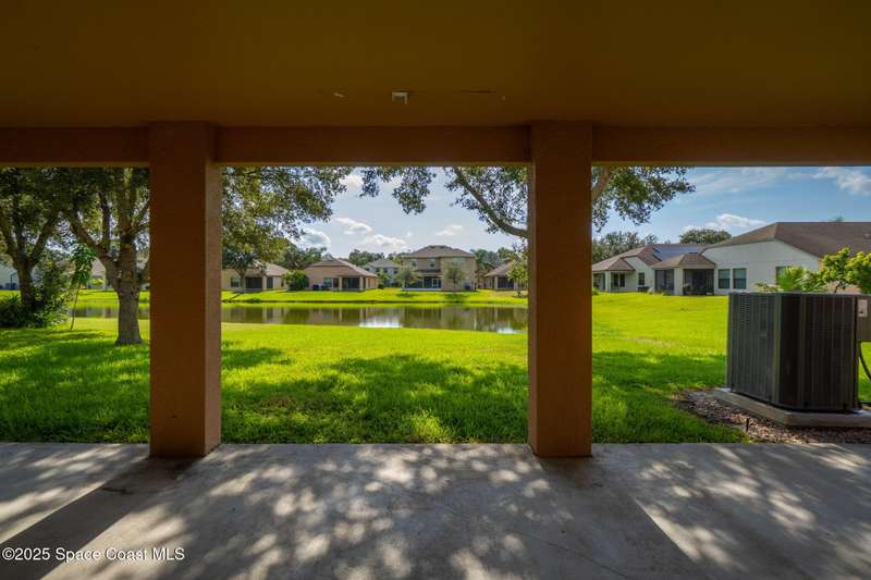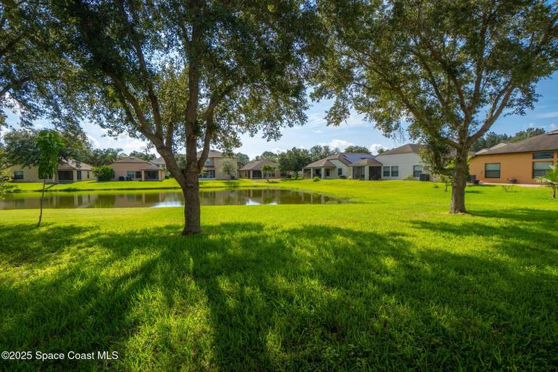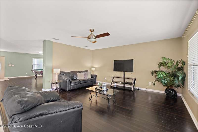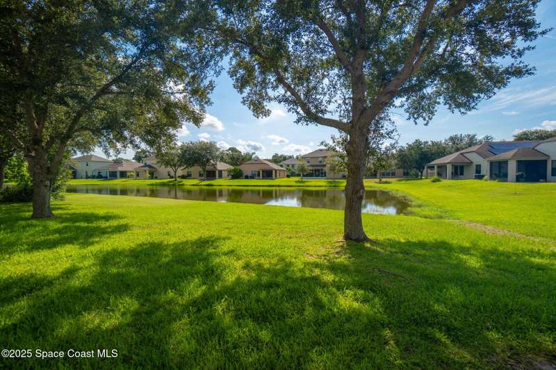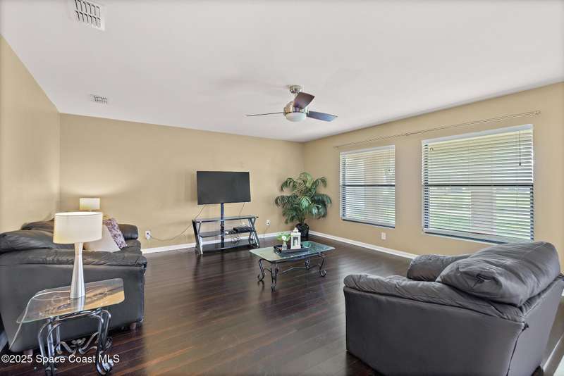 VERY MOTIVATED SELLER!!! Waterfront Beauty with Theater Room in Fern Meadows! Tucked away in the popular Fern Meadows community, this spacious 3-bedroom, 2.5-bath home with a bonus theater room (or optional 4th bedroom) offers the perfect mix of comfort and entertainment. Enjoy peaceful waterfront views from your oversized covered back porch, where nature and wildlife create a relaxing backdrop. Inside, you'll find an open layout with plenty of space to gather and entertain. The upstairs bonus room has been transformed into a fully equipped home theater, featuring a projector, screen, platform seating, ambient lighting, and built-in speakers-all included! Prefer a bedroom instead? The space can easily be converted back. There's also a kitchenette upstairs, complete with a mini fridge and storage-great for a coffee bar, snack station, or movie night setup. The main kitchen includes all appliances, and the home is wired with Cat6 Ethernet, cable, and DirecTV connections Other Other features include hurricane shutters, an oversized garage, durable bamboo wood and tile floors, and ample storage throughout. Located just west of I-95 off SR 520, Fern Meadows offers a convenient commute to Orlando, the Space Coast, local beaches, and the airport. Neighborhood amenities include a playground, gazebo, basketball, and tennis courts. Whether you're looking for your forever home or a peaceful retreat with entertainment perks, this home is a must-see!