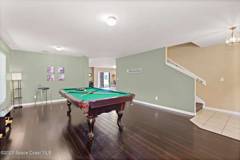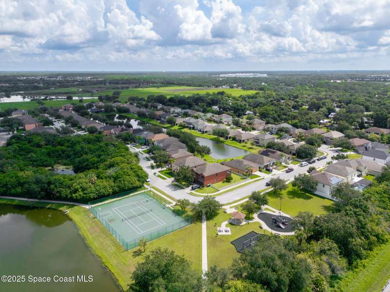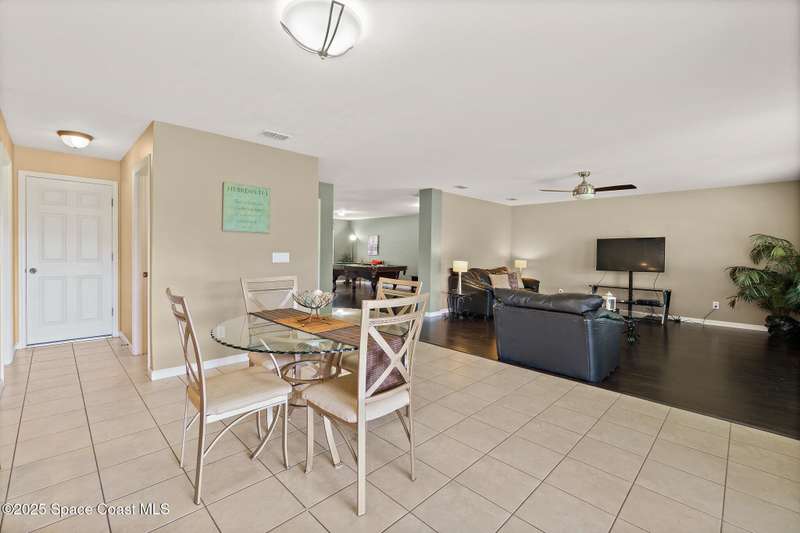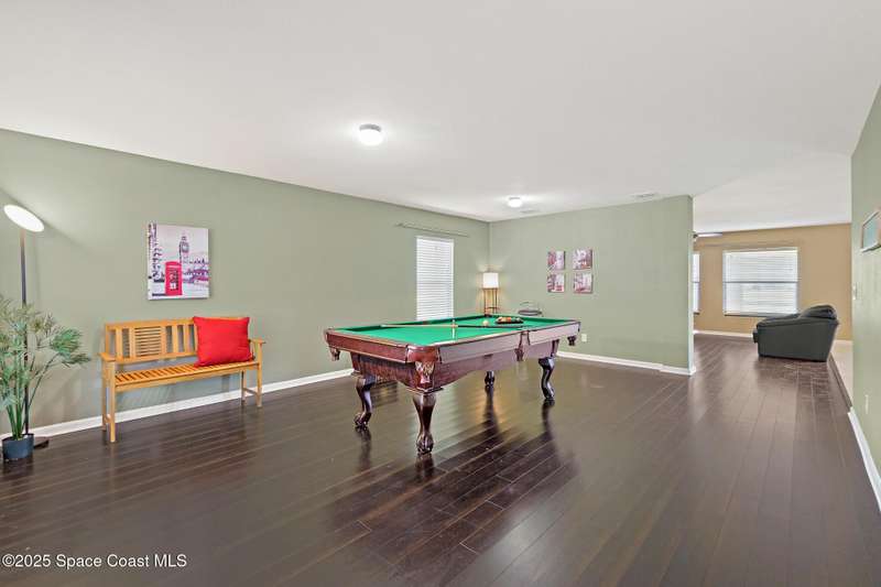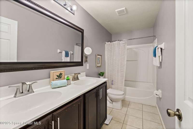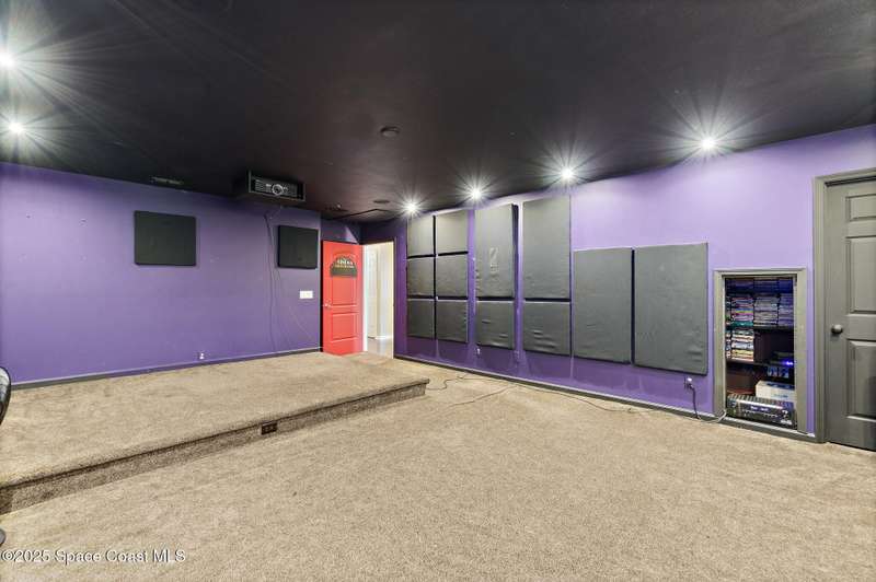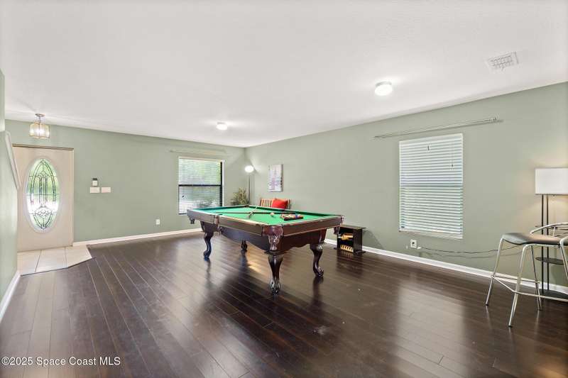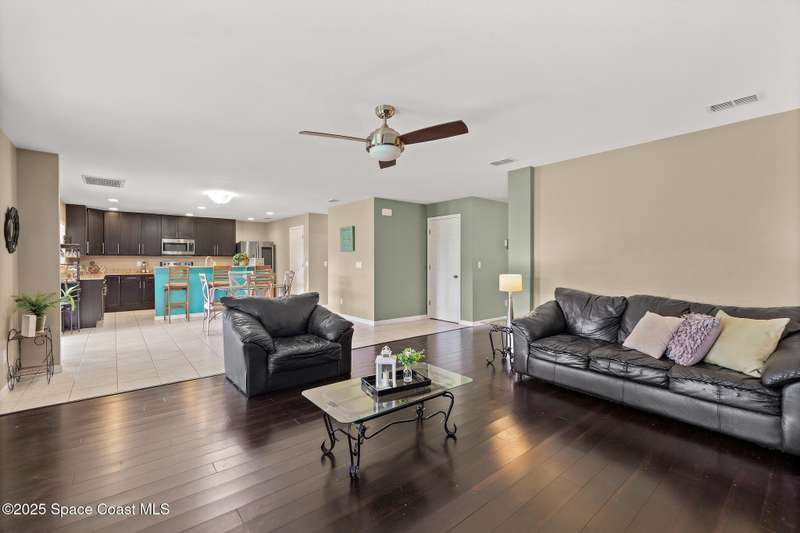 VERY MOTIVATED SELLER!!! Waterfront Beauty with Theater Room in Fern Meadows! Tucked away in the popular Fern Meadows community, this spacious 3-bedroom, 2.5-bath home with a bonus theater room (or optional 4th bedroom) offers the perfect mix of comfort and entertainment. Enjoy peaceful waterfront views from your oversized covered back porch, where nature and wildlife create a relaxing backdrop. Inside, you'll find an open layout with plenty of space to gather and entertain. The upstairs bonus room has been transformed into a fully equipped home theater, featuring a projector, screen, platform seating, ambient lighting, and built-in speakers-all included! Prefer a bedroom instead? The space can easily be converted back. There's also a kitchenette upstairs, complete with a mini fridge and storage-great for a coffee bar, snack station, or movie night setup. The main kitchen includes all appliances, and the home is wired with Cat6 Ethernet, cable, and DirecTV connections Other Other features include hurricane shutters, an oversized garage, durable bamboo wood and tile floors, and ample storage throughout. Located just west of I-95 off SR 520, Fern Meadows offers a convenient commute to Orlando, the Space Coast, local beaches, and the airport. Neighborhood amenities include a playground, gazebo, basketball, and tennis courts. Whether you're looking for your forever home or a peaceful retreat with entertainment perks, this home is a must-see!