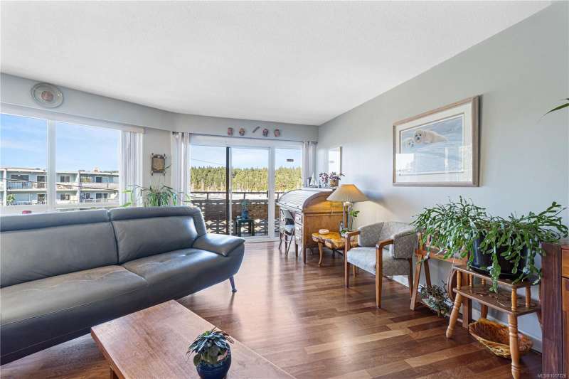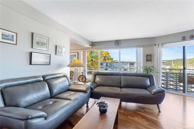 Welcome to the Royal Vista, an oceanside 55+ building in the charming Brechin Hill neighbourhood in Nanaimo. This beautifully maintained 2-bedroom, 1-bathroom condo boasts 1100sqft of living space with Brazilian cherry flooring throughout the main living area, stainless steel fridge and stove in the kitchen, a spacious dining area to entertain your guests, and a second bedroom complete with a Murphy bed to host any overnight visitors. Natural light fills the home through the large windows which also allow you to take in the stunning panoramic views of the ocean, marina, and nearby Protection and Newcastle Islands. Watch the boats and seaplanes come and go from your covered deck or access the Nanaimo Harbourfront Walkway which is just steps from the building's entrance. Close to beaches, trails, cafes, and local shops, this building offers a peaceful, community-oriented lifestyle in one of Nanaimo's most desirable waterfront locations