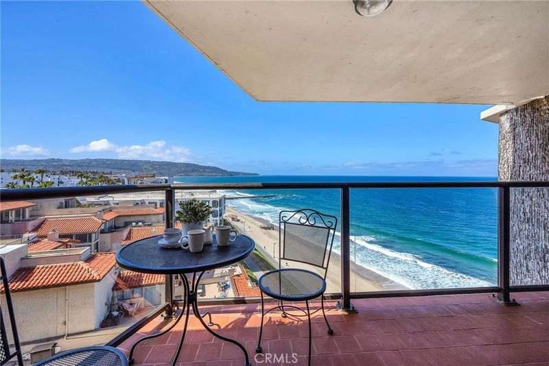 Enjoy panoramic ocean views, golden sunsets, and refreshing coastal breezes from this beautifully appointed southwest-facing condo in Ocean Plaza. This spacious 2-bedroom, 2.5-bath residence combines style and comfort with an open living and dining area, cherry plank wood flooring and a galley kitchen featuring quartz counters, abundant cabinetry, stainless steel appliances, and a wine fridge. Upstairs, both bedrooms boast breathtaking ocean views . Step unto your balconies to enjoy the breezes & vibrant colors of the sky. The primary suite includes a large walk-in closet and updated ensuite bath, while the secondary bedroom offers its own modernized bathroom and balcony. Outdoor living is a highlight with a generous front patio for entertaining or dining al fresco. Relax and take in the sunsets. A tandem garage provides convenient parking and storage. Ocean Plaza’s resort-style amenities include a sparkling pool, spa, ocean-view sun deck, gym, and clubhouse. From the garage, step directly onto the beach and bike path—just moments to the Redondo Pier, Veterans Park, and the sandy shoreline. Hermosa, Manhattan Beach, and Riviera Village with shops, cafés, and fine dining are all nearby. This home offers the ultimate blend of coastal lifestyle and everyday convenience—Your front-row seat to the South Bay’s coastal lifestyle.