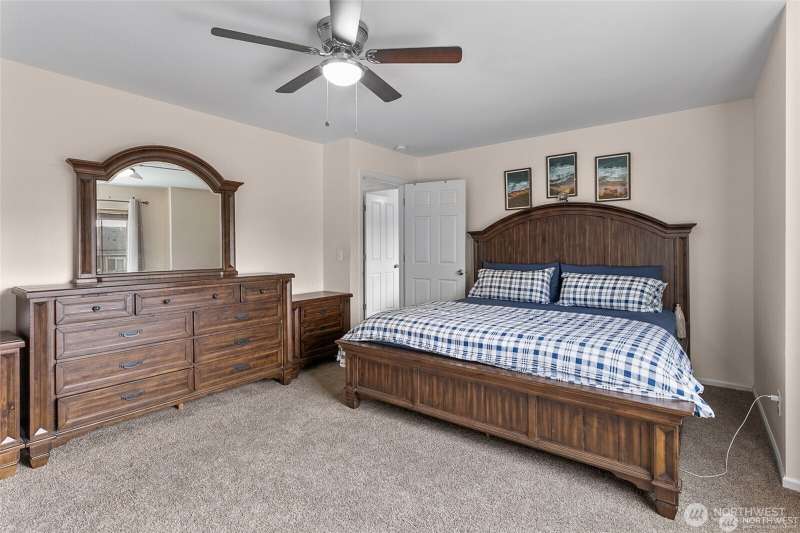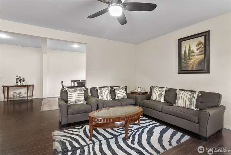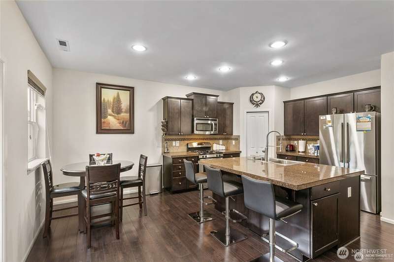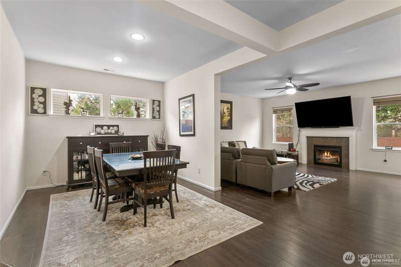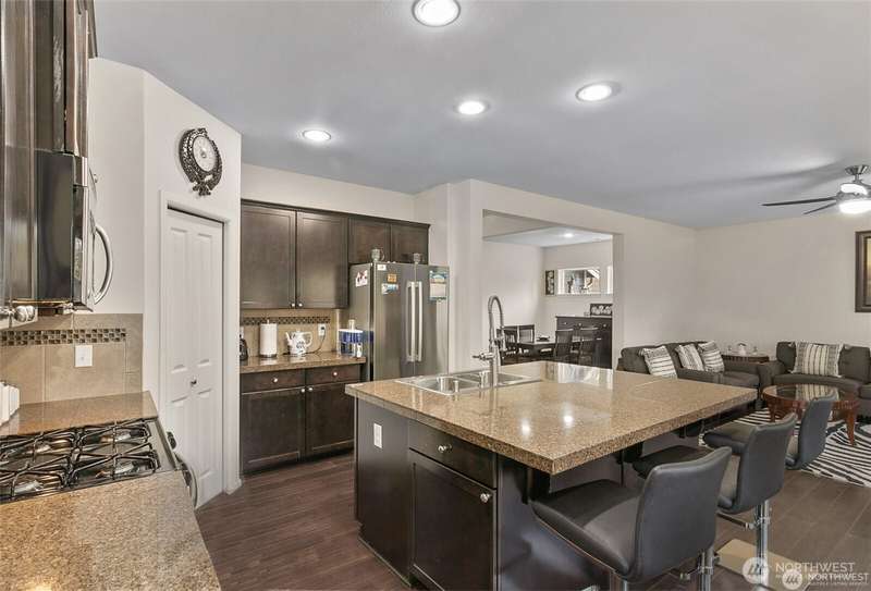 Step into comfort and style in this spacious, light-filled, and meticulously maintained home. Designed with function and flow in mind, this contemporary gem features an open great room with a cozy gas fireplace and a chef-inspired kitchen complete with stainless steel appliances, granite island, and a walk-in pantry. The luxurious primary suite includes a spa-like 5-piece bath and an oversized walk-in closet. Enjoy the flexibility of a formal dining room and a fifth bedroom or bonus room. Outside, you'll find a fully fenced backyard with a dog run, storage area, and direct access to open space with paved walking paths. True gem you’ll love to call home!