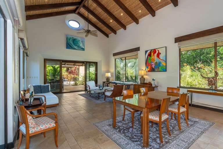Discover the epitome of Costa Rican luxury at this stunning ranch-style home, nestled within the prestigious Las Brisas community in Hacienda Pinilla. It is perfectly designed to host up to 12 guests. This luxurious home has 5 bedrooms and 6 1/2 baths, an office, TV room, solar panels that cut the electrical bill in half, a two-car spacious garage with storage closets, an electric vehicle (EV) outlet, and an extended driveway with parking space for multiple vehicles, an outdoor shower, state of the art monitored security system, and an expansive outdoor backyard space.