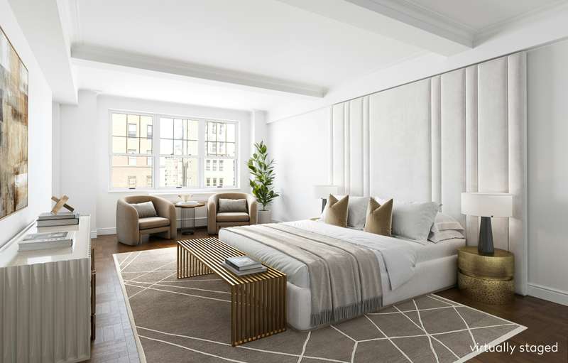 Sunny, gracious, corner pre-war co-op on a high floor in a premier Park Avenue location. Two apartments have already been combined to create a large 3 bedroom/4.5 bath corner residence with open, sunny, Southwestern views and 2 original kitchens. A gracious entry foyer with powder room opens into the over-sized living/dining room with over 36' feet of windows facing onto Park Avenue and East 73rd Street. A hallway with a substantial walk-in-closet leads to the private quarters - a spacious primary bedroom and 2 additional bedrooms with en-suite baths. Hardwood floors, high beamed ceilings, and generous closets abound throughout this 2500+ SF home.