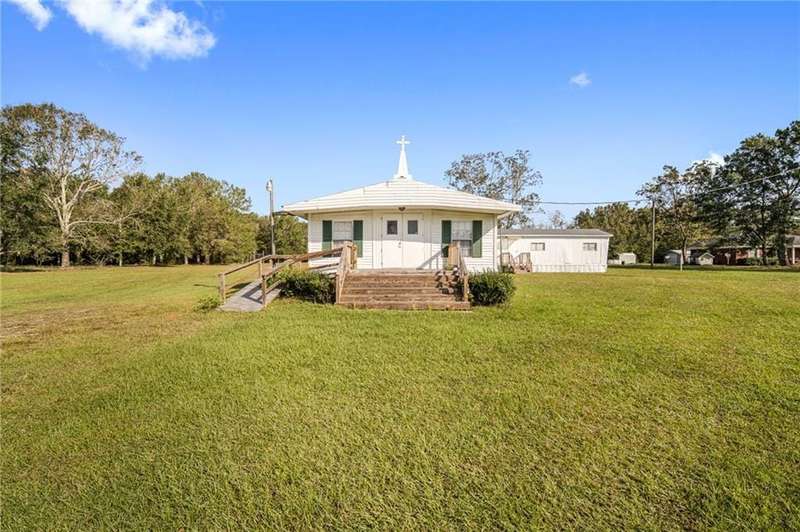 Come check out this piece of property in a great location near Old Pascagoula in Grand Bay. This beautiful piece of property has 7.5 acres of flat and level land. Sitting in the center of the property is a 2000 square foot church that could be changed back to residential use or used as a church. Fellowship hall features a full kitchen and both buildings have several rooms for meetings. Property also has an outside storage building. Church and storage building are being sold as is. Come check out the endless possibilities on this pretty slice of Grand Bay. Buyer responsible for verifying all measurements and relevant details.