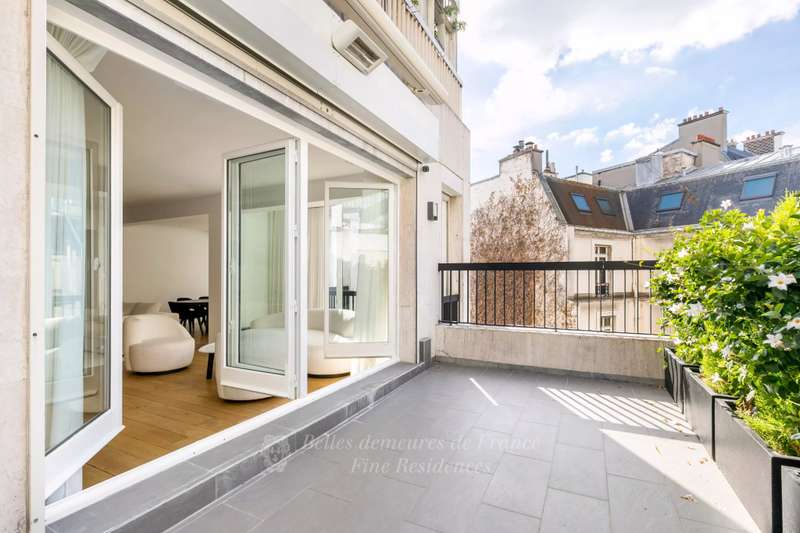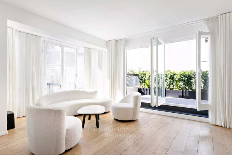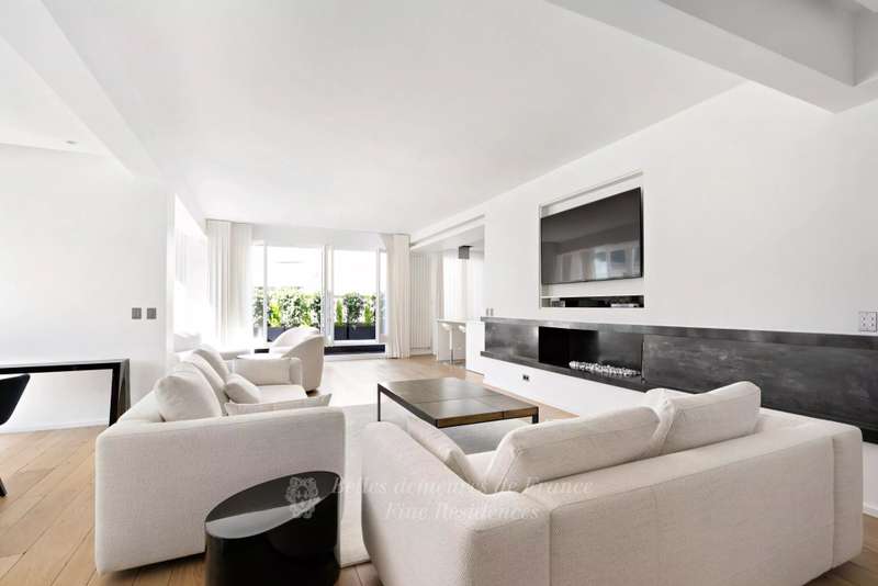 Avenue Montaigne. Located in a prime location in the capital’s prestigious Golden Triangle. exceptional apartment on the sixth floor of a mid 20th century building includes a living/reception room opening onto a superb terrace, a contemporary kitchen, and three bedrooms with bathrooms. With a cellar. Apartment fully air-conditioned. Parking on top of that price.