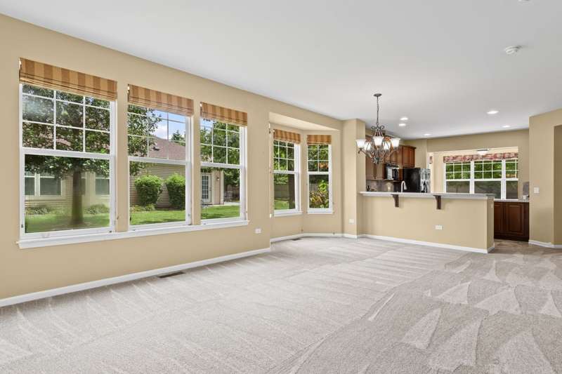 Your Wait is Over ... 'PALMER' RANCH + FULL BASEMENT @ the Prestigious 55+ Active Adult Resort Community of CARILLON CLUB NAPERVILLE is Here! This HIGHLY DESIRED & RARELY AVAILABLE Maintenance Free Townhome Spans 1885 sq ft of Convenient Main Level Living & Just Steps to the Coveted Clubhouse! Featuring 3 True Bedrooms with CUSTOM ADJUSTABLE 'Elfa Shelving' - 2 Full Bathrooms, Open & Flexible Floor Plan, an Abundance of Windows + Storage Galore at your fingertips on the Main Level or in the Full Basement with Rough-In! The Well-Designed Kitchen is like No Other, Featuring Neutral & Timeless Corian Countertops, Custom Peninsula, Warm Cabinetry including Crown Overlay, Recessed Lighting, Bright Sun Room or Breakfast Room Overlooking the Private Outdoor Space & an Elevated Breakfast Bar that doubles as a Great Serving Spot while Entertaining Many Guests - This Custom Kitchen is Open to your Formal Dining Room & Spacious Living Room with 2025 NEW CARPET. Comfortable & Private Primary Ensuite includes Ceiling Fan, 2 Closets & Extra-Large Luxury Bathroom - The 2nd & 3rd Bedrooms & 2nd Full Bathroom are nicely appointed for Overnight Guests, Private Workspace, Crafts ... The Options are Endless!! **2025 SUMP PUMP WITH 1 YR TRANSFERABLE WARRANTY** **2019 WATER HEATER** ! Professional Maintenance Agreement for the HVAC System has been On-Going & All Works Perfectly!! This Model Is the MOST DESIRED ATTACHED HOME IN CARILLON CLUB!! Don't miss your opportunity to own this home with all the upscale amenities you desire. CARILLON CLUB INCLUDES 24 HOUR GUARD/GATED ENTRY, LAWN & SNOW MAINTENANCE, CLUBHOUSE, INDOOR AND OUTDOOR POOLS, OUTDOOR GRANDCHILDREN'S POOL, 3 HOLE GOLF COURSE, WALKING PATHS, PONDS, PLAYGROUND, EXERCISE FACILITY, ACTIVITIES, TRIPS, CLUBS AND SO MUCH MORE .... THIS IS THE LIFE YOU'VE WORKED FOR!!!!