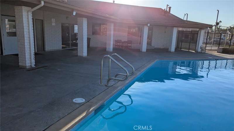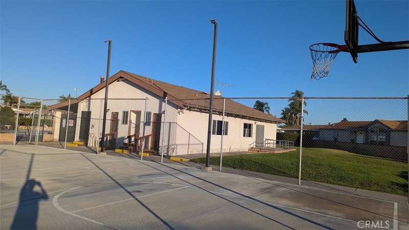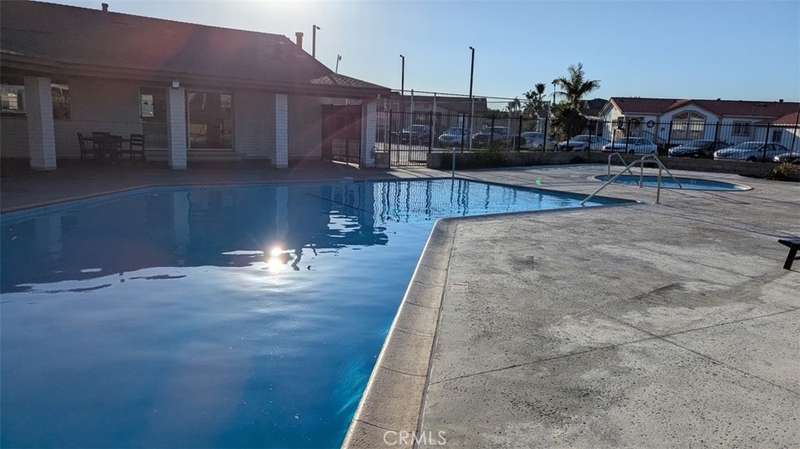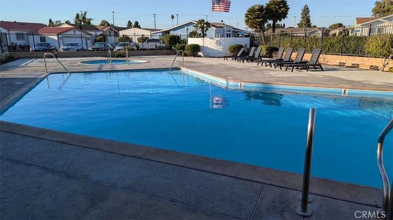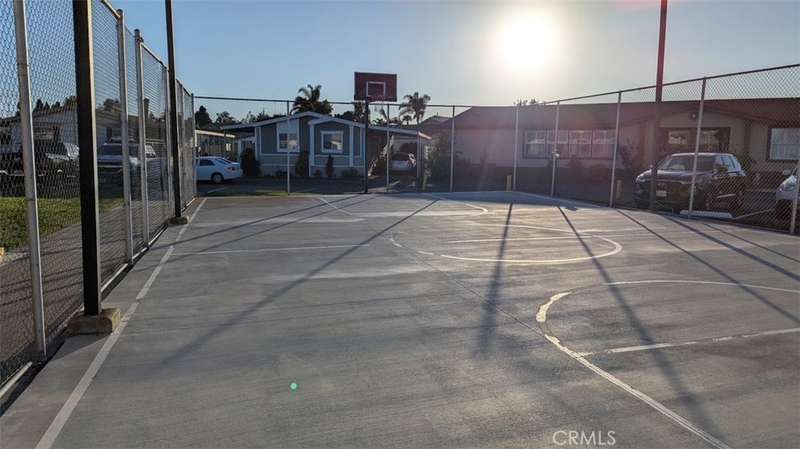 Located near the clubhouse, the home enjoys access to community amenities at Fountain Valley Estates, a land-leased park with 192 home sites. Amenities include a large clubhouse with kitchen and TV area, heated pool and spa, pool restrooms, basketball court, enclosed dog park, on-site laundry room, car wash area, greenbelt, and on-site management. One small indoor pet is permitted with park approval. Six-foot fencing is allowed. A monthly land lease applies and park approval is required for residency.