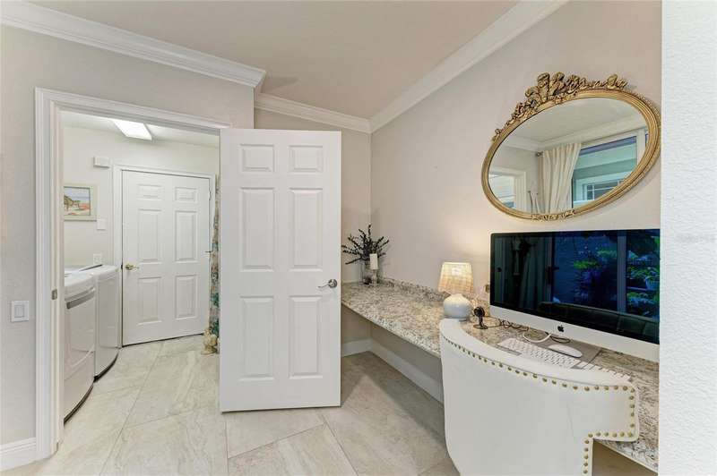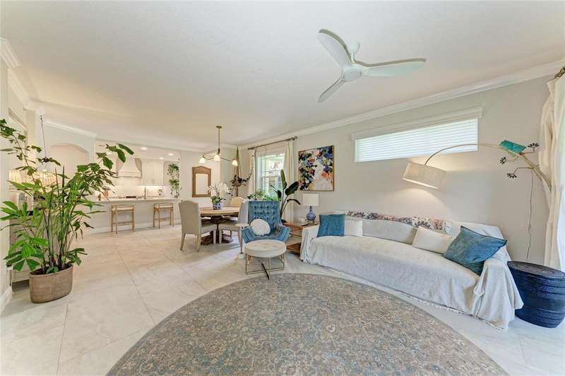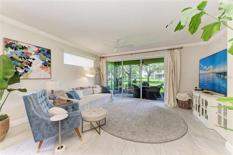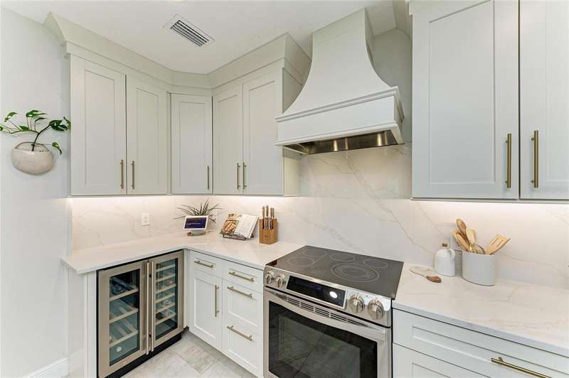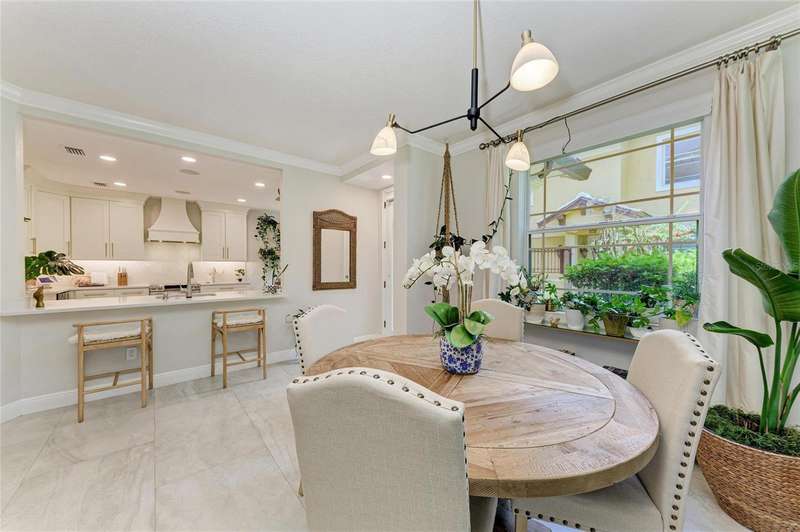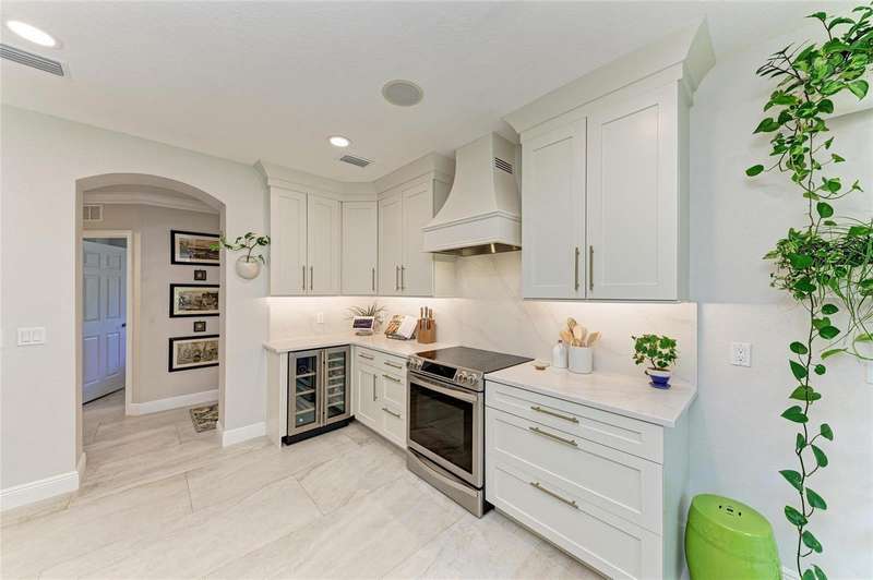 The Moorings at Edgewater Village is a gated community and is within walking distance to four separate town centers featuring over twenty restaurants, craft-style pubs, cinema, mini-golf, hospital, medical centers and a grocery stores. And, with University Town Center only 5 minutes away, the entertainment and shopping options are simply unmatched! This first-floor 3-bedroom, 2-bathroom coach home with 1-car garage has been completely transformed. The entire property has been updated with new tile flooring throughout. The large great room has an expanded pass through to the kitchen and offers plenty of room for entertaining friends and family while overlooking peaceful views of the gardens. The kitchen has been completely redesigned, equipped with quartz countertops, stainless steel appliances, wine fridge, and a breakfast nook overlooking a paver lanai. The owner's suite with ensuite bathroom has been meticulously updated with a walk-in shower stall, new dual sink vanity and walk-in closet. The 2 additional bedrooms have their own separate lanai area and share the second bath which has also been entirely remodeled and includes a spa tub/shower. The unit also has a central vacuum for ease of cleaning. NEW ROOF IN 2021! The Moorings offers a clubhouse with fitness center, catering kitchen, billiards table, library, meeting space with Wi-Fi and entertainment area, showers and lockers, pool and hot tub, and outdoor grill. Sitting on the 153-acre Lake Uihlein, The Moorings offers fishing, non-motorized boating, and social gathering spaces on the private island accessible via a long boardwalk. The award-winning master-planned community of Lakewood Ranch offers a plethora of golf, tennis, pickleball, and public park options and is less than 30 minutes from SRQ Airport, Downtown Sarasota, St. Armands Circle, and several of Sarasota’s world-renowned beaches just minutes to I-75.