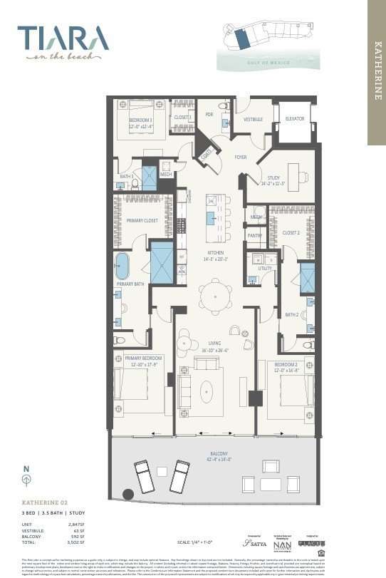Open House November 1st 11:00AM-3:00PM. Now under construction! Welcome to the Katherine floorplan at Tiara on the Beach- This floorplan is located on the 4th floor and redefines the art of gracious living with a private elevator vestibule, lofty 10’ ceilings, and all Thermador appliances. Contemporary and sophisticated, Tiara on the Beach will be an architectural gem nestled along one of Galveston Island’s prime locations. This luxury residence will offer an amenity-rich lifestyle on Galveston Island. Features include spacious open floor plans and endless water views. Distinctive finishes such as Italian cabinetry and the highest levels of design and craftsmanship await you. Visit our one-of-a-kind sales gallery that includes a scaled model to showcase the architecture and amenities on 300ft of beachfront. Total square footage includes square footage of balcony. Completion scheduled for Summer of 2027.