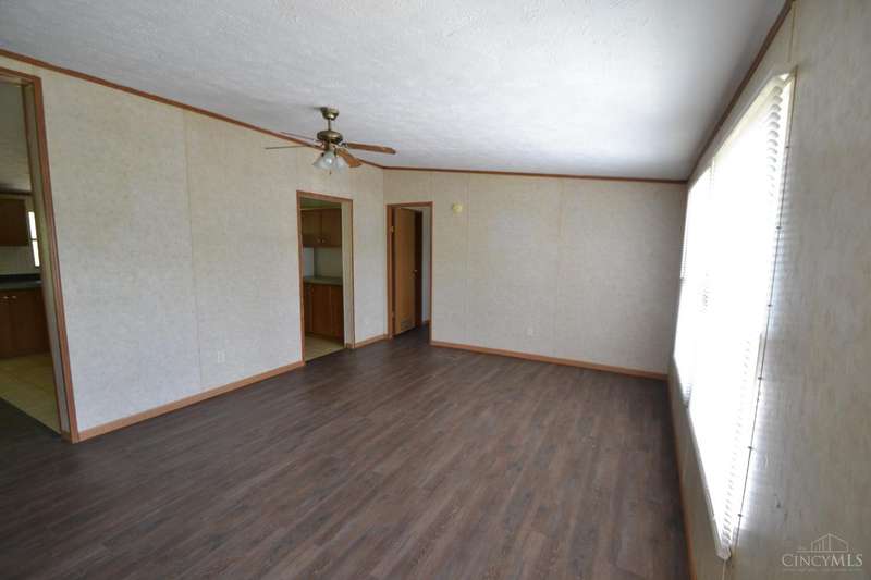 This double-wide manufactured home has 3 bedrooms and 2 full baths. Newer flooring, AC, and range. Very spacious, all bedrooms have walk-in closets. The primary bath adjoins the primary bedroom. Shady side porch leads in to the laundry room. Great value at a great price.