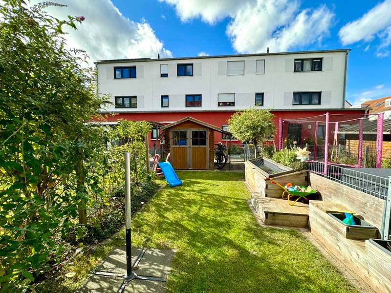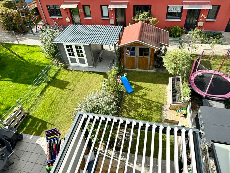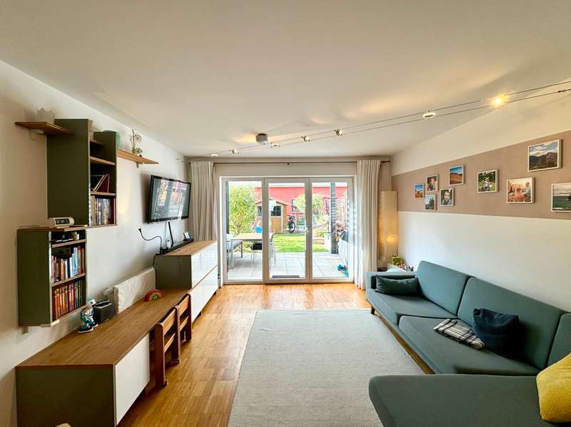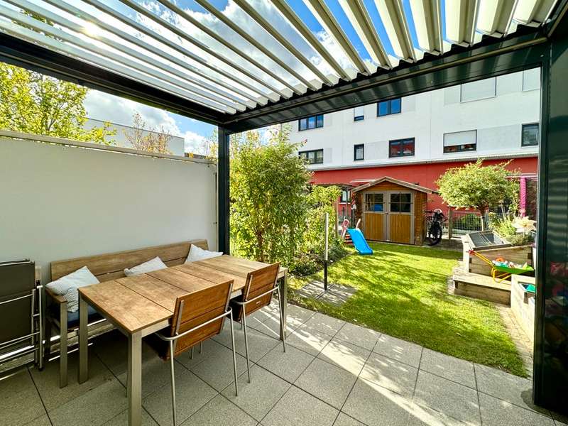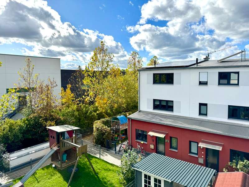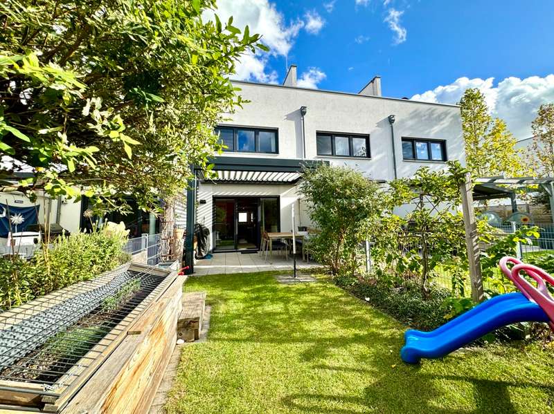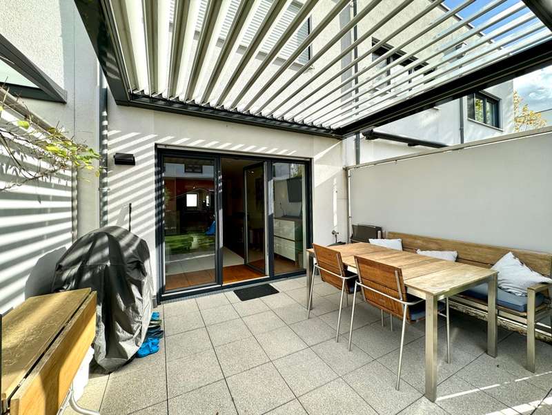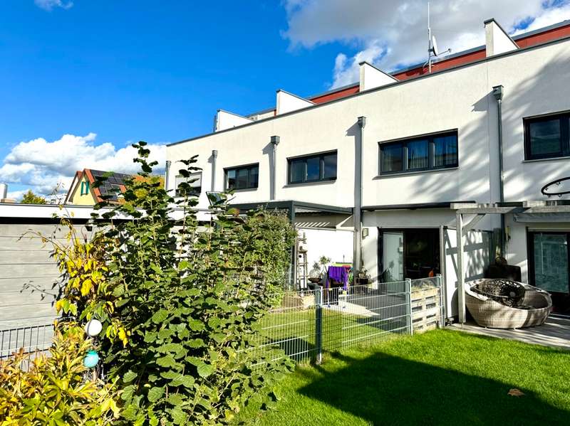 Welcome to your new home! We present to you an exclusive mid-terrace house that not only impresses with its modern architecture, but also with its high-quality construction and first-class energy efficiency. This gem with a living space of approx. 115 sqm spread over 4.5 rooms offers everything a family's heart desires and harmoniously combines comfort, style and functionality. The property is located in an extremely sought-after residential area - central to Regensburg's old town and yet in a quiet oasis of relaxation. The class A energy certificate not only underlines the outstanding building quality, but also promises low heating costs, a decisive factor in today's world. As soon as you enter the spacious entrance area with its elongated hallway, you can feel the friendliness of this house. A guest WC is conveniently located to the side, while high-quality parquet and tiled floors adorn the flooring throughout the house. The open-plan living/dining area on the first floor flows seamlessly into the modern kitchen. The stylish fitted kitchen is already in place and is waiting to accommodate your culinary creations. The dining area offers enough space for the whole family, while the spacious living room area with a large sofa and living room wall makes the cozy get-together perfect. Access to the spacious terrace, protected by a modern slatted patio cover with rain protection and vertical awning, extends the living space outdoors. The lovingly tended garden invites you to play and have fun, while garden lovers will also get their money's worth here. The elegant wooden staircase leads to the second floor, which offers a variety of uses. Individual room concepts can be implemented here, for example as a children's floor with two children's rooms. The bathroom impresses with a spacious glass shower, a washbasin with vanity unit and timeless tile decor. Another highlight awaits you on the 2nd floor: a sunny roof terrace with beautiful views as far as the Regensburg cathedral spires. An additional room here can be used as a study or bedroom and the gallery already has generous built-in wardrobes. In the basement you will find a separate utility room for washing machine and dryer as well as a hobby room and a workshop. Direct access to the car parking space makes everyday life easier, while there is a storage area for bicycles in front of the house entrance. The property not only relies on a sustainable energy supply with very good energy values and a solar system for hot water, but also on contemporary comfort. Air conditioning ensures pleasant temperatures even on hot summer days. This mid-terrace house combines elegance, functionality and a first-class location to create the perfect home for your family. Take the opportunity to arrange a viewing to see the many advantages of this unique property for yourself! Sale against bid in a bidding process - minimum offer 495,000 euros. Viewing period on Sunday, 03.12.23 from 11:00 am to 12:30 pm. Please register in advance for the viewing.