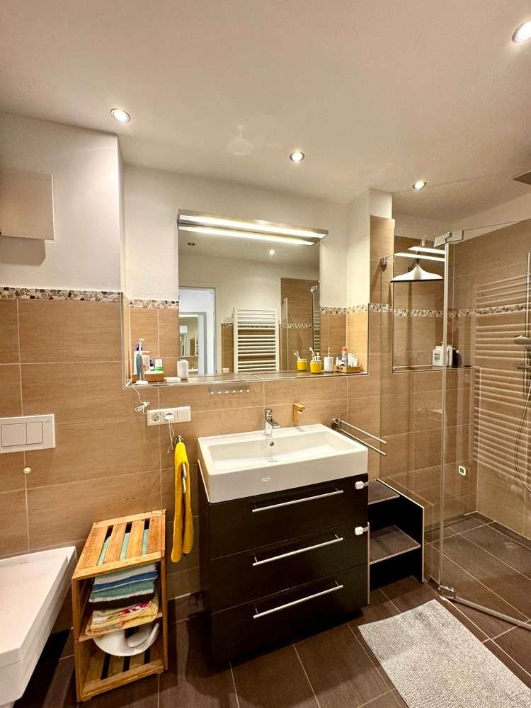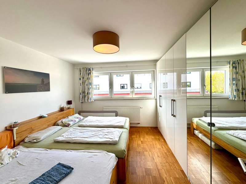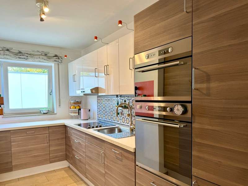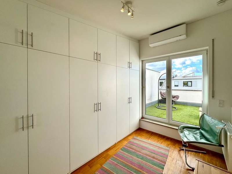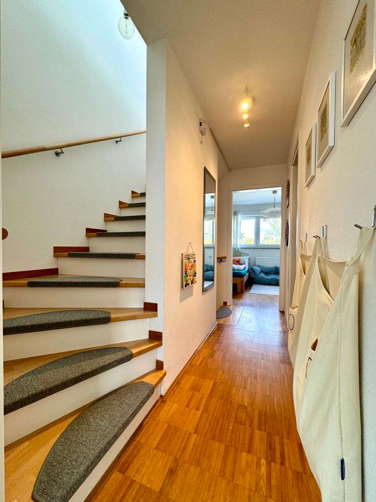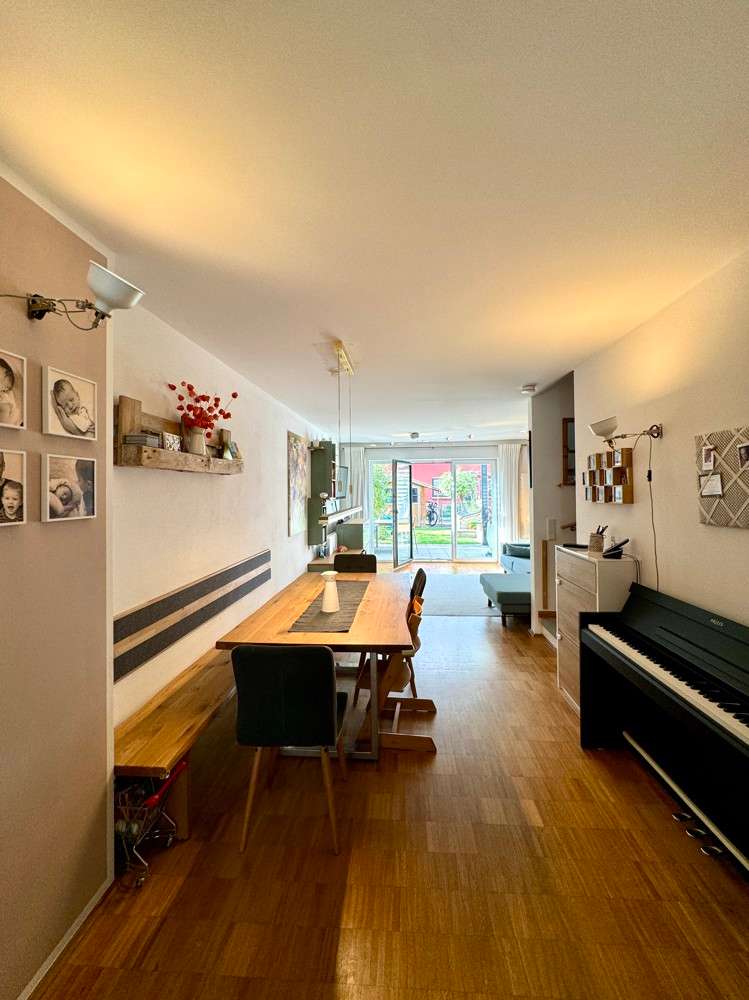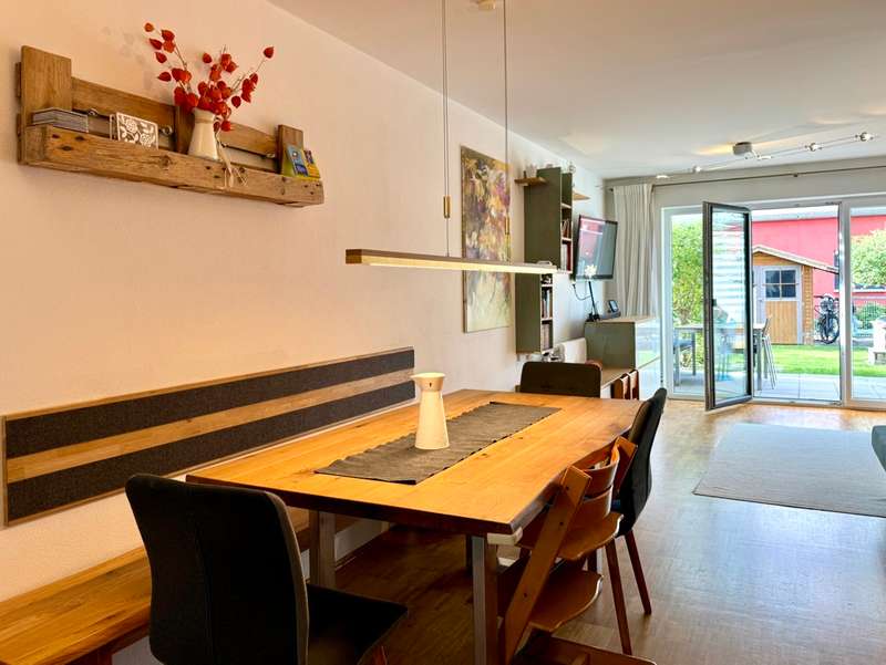 Welcome to your new home! We present to you an exclusive mid-terrace house that not only impresses with its modern architecture, but also with its high-quality construction and first-class energy efficiency. This gem with a living space of approx. 115 sqm spread over 4.5 rooms offers everything a family's heart desires and harmoniously combines comfort, style and functionality. The property is located in an extremely sought-after residential area - central to Regensburg's old town and yet in a quiet oasis of relaxation. The class A energy certificate not only underlines the outstanding building quality, but also promises low heating costs, a decisive factor in today's world. As soon as you enter the spacious entrance area with its elongated hallway, you can feel the friendliness of this house. A guest WC is conveniently located to the side, while high-quality parquet and tiled floors adorn the flooring throughout the house. The open-plan living/dining area on the first floor flows seamlessly into the modern kitchen. The stylish fitted kitchen is already in place and is waiting to accommodate your culinary creations. The dining area offers enough space for the whole family, while the spacious living room area with a large sofa and living room wall makes the cozy get-together perfect. Access to the spacious terrace, protected by a modern slatted patio cover with rain protection and vertical awning, extends the living space outdoors. The lovingly tended garden invites you to play and have fun, while garden lovers will also get their money's worth here. The elegant wooden staircase leads to the second floor, which offers a variety of uses. Individual room concepts can be implemented here, for example as a children's floor with two children's rooms. The bathroom impresses with a spacious glass shower, a washbasin with vanity unit and timeless tile decor. Another highlight awaits you on the 2nd floor: a sunny roof terrace with beautiful views as far as the Regensburg cathedral spires. An additional room here can be used as a study or bedroom and the gallery already has generous built-in wardrobes. In the basement you will find a separate utility room for washing machine and dryer as well as a hobby room and a workshop. Direct access to the car parking space makes everyday life easier, while there is a storage area for bicycles in front of the house entrance. The property not only relies on a sustainable energy supply with very good energy values and a solar system for hot water, but also on contemporary comfort. Air conditioning ensures pleasant temperatures even on hot summer days. This mid-terrace house combines elegance, functionality and a first-class location to create the perfect home for your family. Take the opportunity to arrange a viewing to see the many advantages of this unique property for yourself! Sale against bid in a bidding process - minimum offer 495,000 euros. Viewing period on Sunday, 03.12.23 from 11:00 am to 12:30 pm. Please register in advance for the viewing.