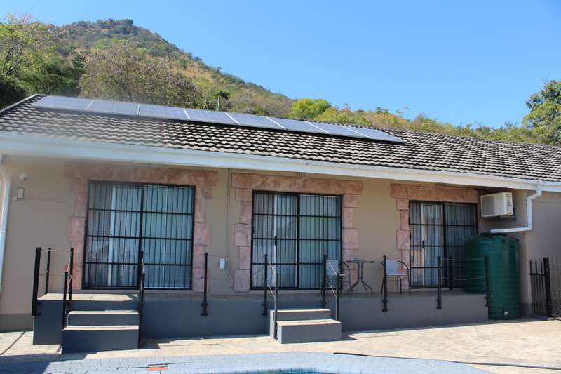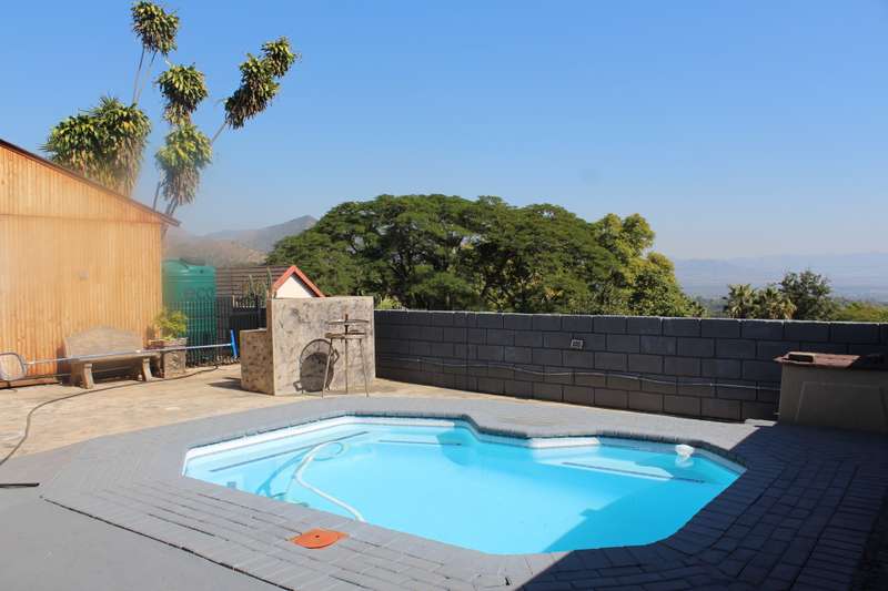 Perfect in Every Way – Move-In Ready Family Home with Stunning Views It is located almost against the mountain in a sought-after area close to town with a beautiful view. This well-maintained property is ready for a family to move in and stay. It’s the perfect setting for family living, combining comfort, space, and practicality. The property includes a beautifully kept 3-bedroom main house and a 1-bedroom flat. A double garage with an extended large workroom provides ample space for projects or hobbies. Additionally, there’s a separate storeroom and two Wendy houses – one used as a garden tool shed and the one next to the pool an entertainment room/bar. Inside, the home boasts generous living spaces including: 1 Lounge, TV Room, Open-plan lounge and dining room and an additional room ideal as a study or playroom. The modern kitchen is fitted with a gas stove and offers plenty of cupboard space. All bedrooms open with sliding doors onto a patio overlooking the pool and entertainment area with a beautiful view over Barberton. To ensure year-round comfort, the whole house and flat is equipped with air conditioning and ceiling fans. Security and Utility Features: Alarm system, security cameras, beams, and electric fencing, Remote-controlled access gate. Upgraded solar power system (5 kVA inverter with a 15.3 kWh LV battery) installed with a 10-year warranty. Three JOJO tanks (5000L, 2500L, and 1800L) – ideal for gardening, household use, or topping up the pool. This is a rare opportunity to own a property that truly has it all – location, space, comfort, and sustainability. Don't miss out – make this dream home yours today!