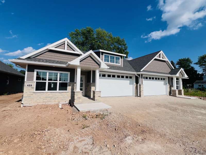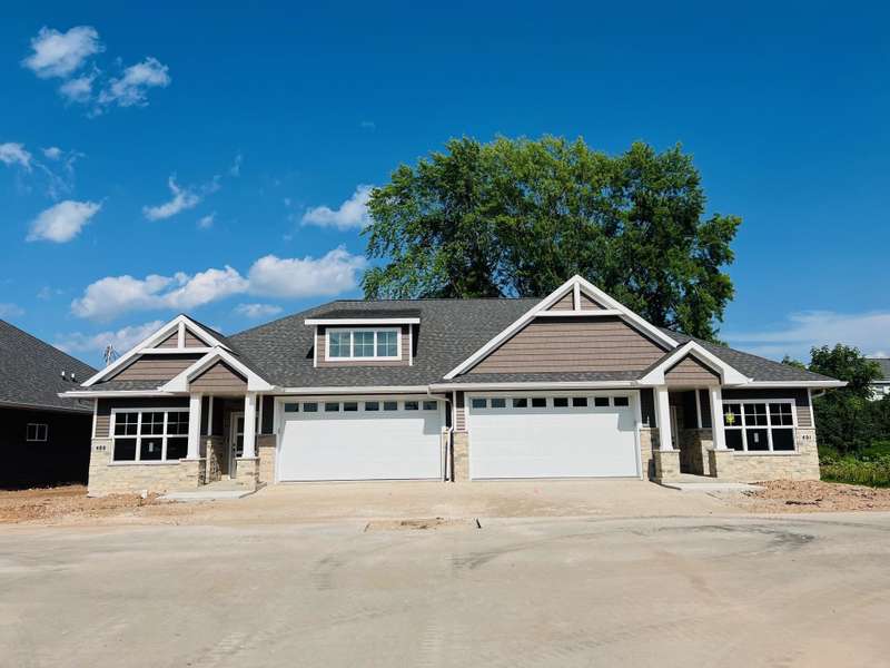 Enjoy carefree living in this beautiful no step entry, side by side condo. Open concept 1-story with spacious great room featuring tray ceiling, large daylight windows, gas FP & door to maintenance free deck. Kitchen offers abundant custom cabinets, quartz countertops, tile backsplash & center island. Enjoy the large master suite with tray ceiling, walk-in closet, dual sinks & walk-in shower. Other amenities include 2nd bedroom/office, first floor laundry & finished lower level with Rec Room, 3rd bedroom & full bath. Photos are similar but may not be exact. Floor plan is the same but colors may vary.
