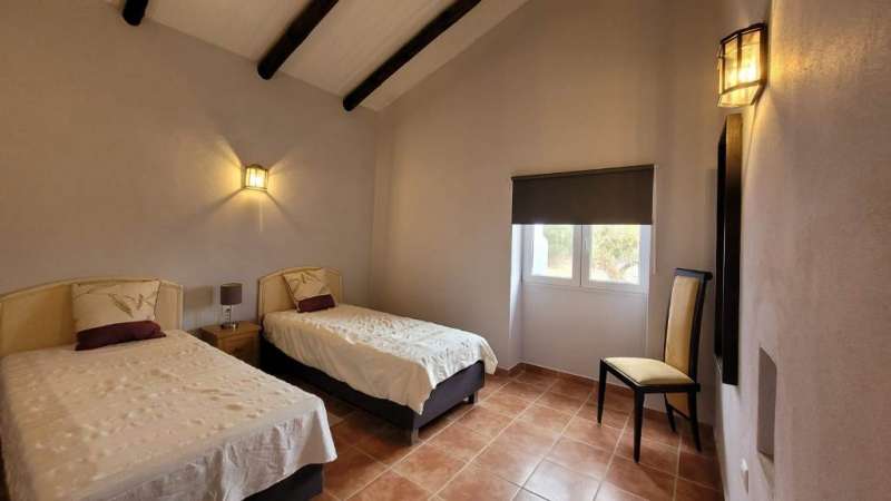 This unique property near the picturesque village of São Bartolomeu de Messines, just a few minutes from Silves, in the heart of the Algarve, is a real haven. A single-storey 4-bedroom villa in traditional Algarve style, it has been completely renovated. Upon entering the house, the spacious and bright open-plan living room with fully equipped kitchen offers the perfect space to receive guests, connecting seamlessly through the sliding glass doors to the large pool and garden area. For total privacy, the villa is completely enclosed by walls. The villa has 4 spacious bedrooms, the master bedroom of which has a large en-suite bathroom. There are two additional full bathrooms and a separate utility room. Throughout the property, the high ceilings and exposed wooden beams contribute to the traditional charm of the house and provide an abundance of natural light. Adjacent to the house, the property also has a large flat plot of land, ideal for developing agriculture, already having several varieties of mature fruit trees. The perfect location to enjoy tranquillity, surrounded by nature, this property offers comfort, privacy and functionality. It has a large water reservoir and is connected to the municipal water network. Located less than 30 minutes from the stunning beaches of Albufeira and 10 minutes from the center of São Bartolomeu de Messines, it benefits from a peaceful countryside setting and good accessibility and connection to the coast, with all services and amenities nearby. CHARACTERISTICS: Plot Area: 7 480 m2 | 80 514 sq ft Area: 530 m2 | 5 705 sq ft Bedrooms: 4 Bathrooms: 3 Energy efficiency: F FEATURES: Single-storey house 4 bedrooms Equipped kitchen Swimming pool Garden