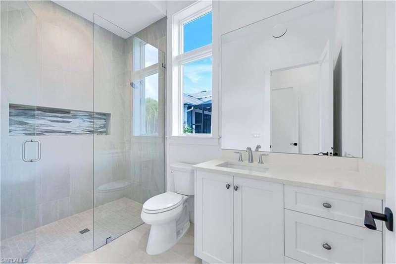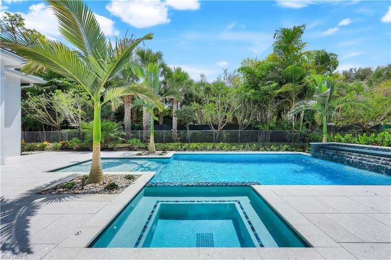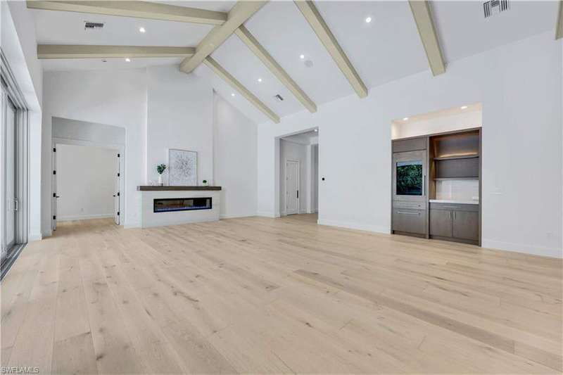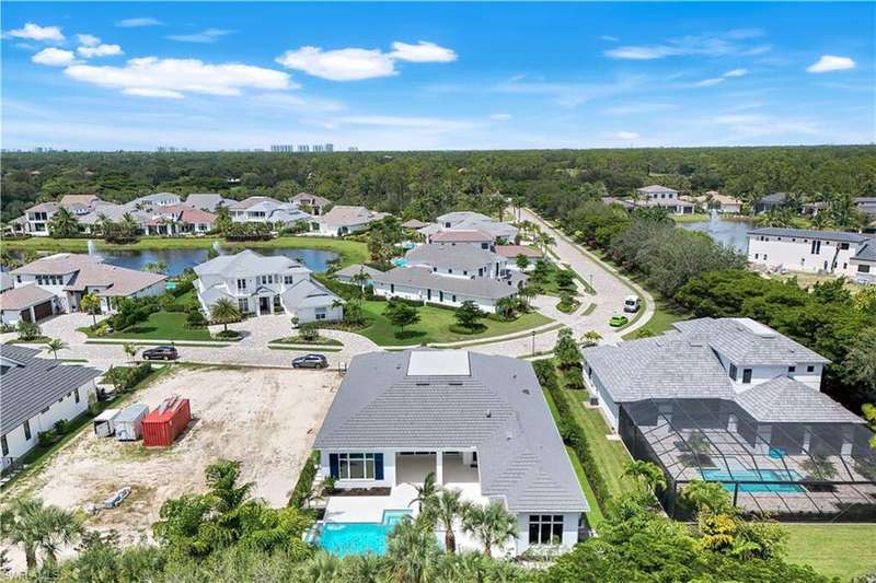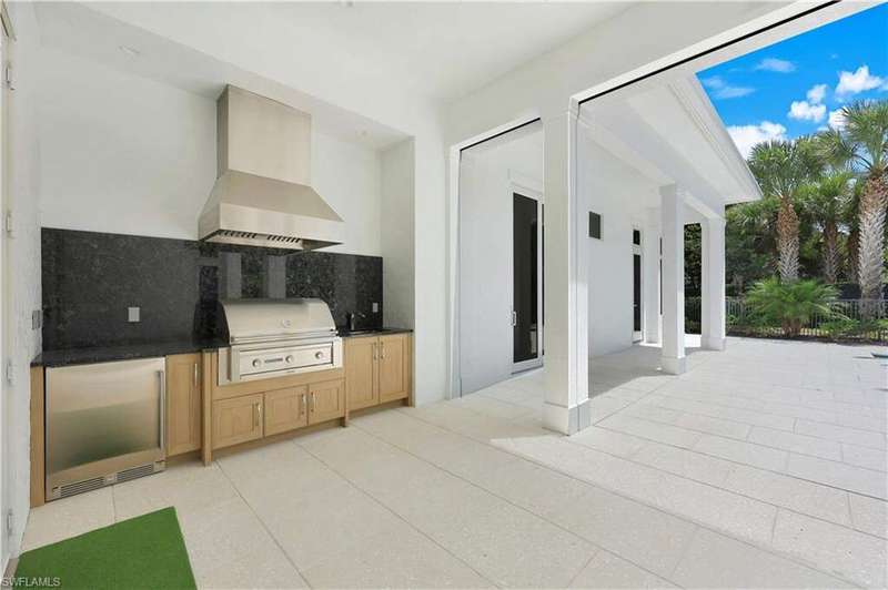 Welcome to your new oasis in the heart of Naples, your single-family home nestled in an exclusive enclave of just 27 residences, offering a warm sense of community. This gated haven provides the perfect blend of privacy and convenience, featuring charming brick-paved streets and sidewalks, all enhanced by neighborhood street lighting and lush landscaping. One-story spacious great room living offering a main suite with a luxurious bathroom featuring a soaking tub, oversized shower, and separate vanities. Two guest suites, a den, and a third guest suite with a private entrance from the lanai, where your guests enjoy a spacious, quiet space with a custom bar, quartz countertop, sink, and beverage center. The home boasts high-volume ceilings that fill the space with natural light, highlighting the stunning great room, which is adorned with wood-beam ceilings, a custom bar built to include a wine cooler, a glass cabinet tower, and free-floating wood shelving with lighting, and a 74" linear fireplace. Culinary enthusiasts will revel in the superior kitchen equipped with Viking appliances, including a refrigerator, dishwasher, convection speed oven, gas range top with hood vent, all beautifully complemented by white wood cabinetry with glass doors, and quartz countertops with waterfall edges. A GE front-load washer and dryer add to the convenience of modern living. Enjoy the tranquility of a private garden setting, or entertain with ease in your outdoor spaces featuring an outdoor kitchen with a gas grill, electronic roll-down screens, a refreshing swimming pool, and spa. Seamless convenience awaits with proximity to Seed to Table, Gulf beaches, Mercato, and Southwest Florida International Airport, making every day a celebration of leisure and luxury within The Promenade's embrace. Don't miss your chance to experience the unparalleled lifestyle this estate provides in beautiful Naples.