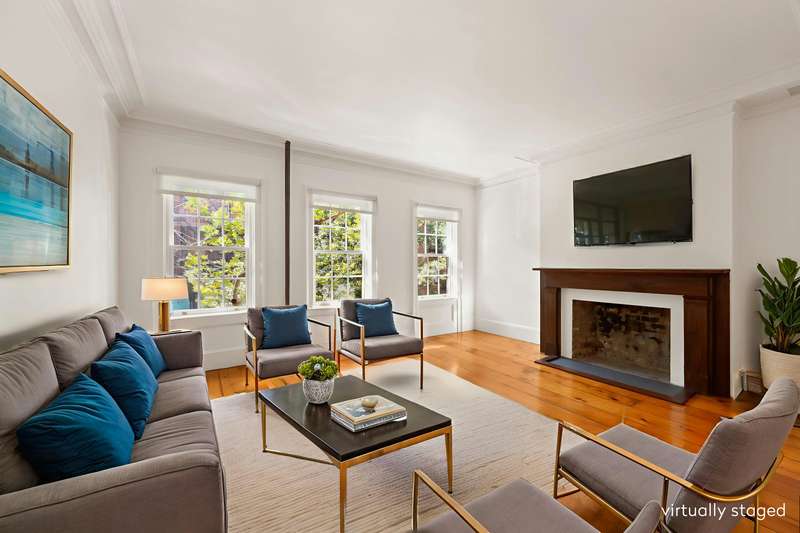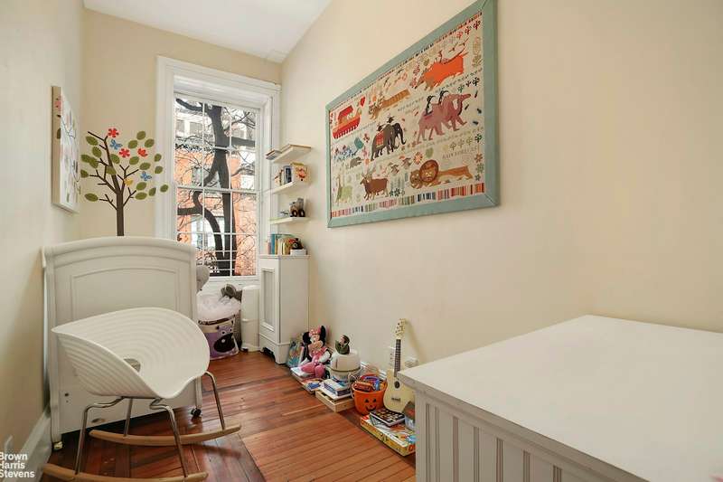 This beautifully maintained 3-bedroom + guest/nanny room, 3-bath parlor duplex is nestled on a quiet, tree-lined street in an 1845 Gothic Revival townhouse just moments from Union Square. A rare blend of historic character and modern comfort, this home offers soaring 12-foot ceilings, original hardwood floors, two wood-burning fireplaces, and a private terrace perfect for relaxing. The parlor level features a grand living room with oversized windows, a striking chandelier, and a fireplace framed by original pocket doors that open into a spacious dining room. The bright, open-concept kitchen includes honed granite countertops, custom white cabinetry, and premium stainless steel appliances. A full bathroom and a versatile bonus room-ideal as a guest suite, office, or playroom-complete this level. Upstairs, the south-facing primary bedroom boasts an en-suite bathroom, generous closet space, a fireplace, and direct access to the terrace, complete with a retractable screen door and newly installed water source-perfect for gardening. The second bedroom accommodates a king-sized bed and features a Bosch washer and dryer discreetly housed in the closet. The third bedroom is ideal for a child's room, home office, or guest space. Additional highlights include ample storage with multiple closets and a large attic loft, wide hallways, and pet consideration on a case-by-case basis. Situated steps from Union Square Greenmarket, Flatiron, Chelsea, premier dining, shopping, and multiple subway lines-this central Manhattan home offers historic charm and modern convenience. The broker's fee will be 15%. Available for September 1st move-in.