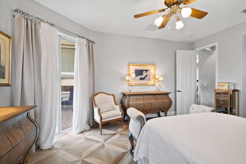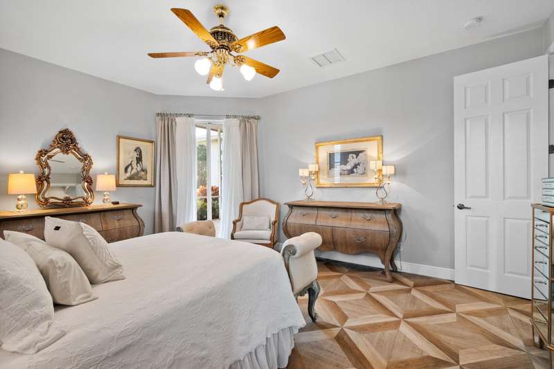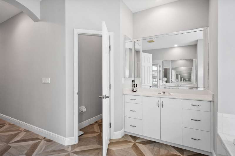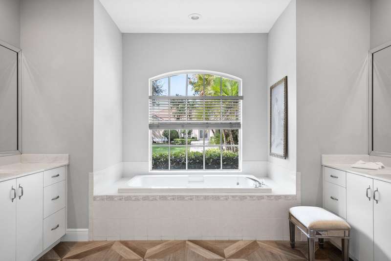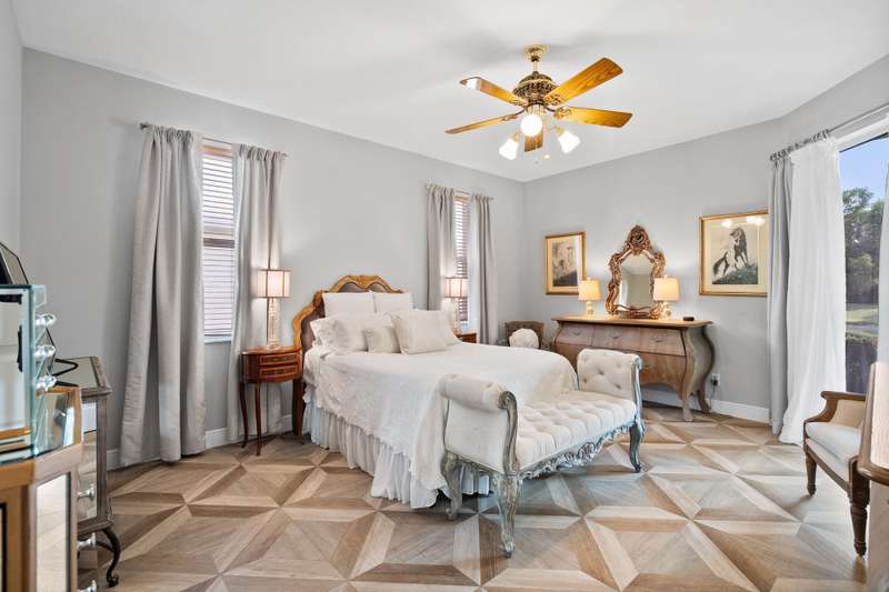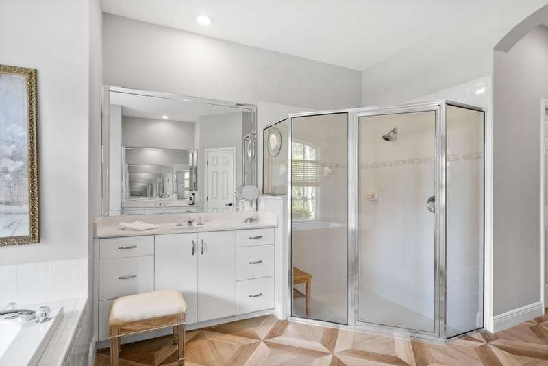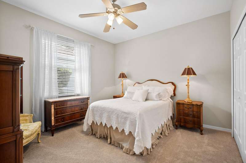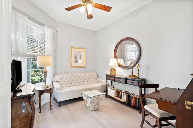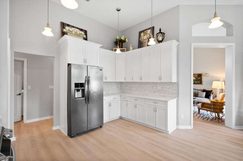 Elegance with modern renovations in this captivating floor Plan. Featuring light, neutral vinyl floors, soaring 12 ceilings in the main living areas, and 10 ceilings throughout the rest of the home, this residence is filled with natural light from abundant windows. Updated kitchen showcases white quartz countertops and stainless steel appliances. Floor plan includes a formal dining room, living room, and family room, plus 4 bedrooms and 3.5 baths. One bedroom is an en suite ideal for a nanny or in-law quarters, while another bath serves as a cabana. Enjoy tranquil lakefront views, beautiful mature landscaping, a 2021 roof, and complete hurricane panels. Community amenities include a clubhouse, pool, tennis, fitness center, and optional golf club with cafe and dining. Membership Optional