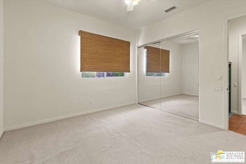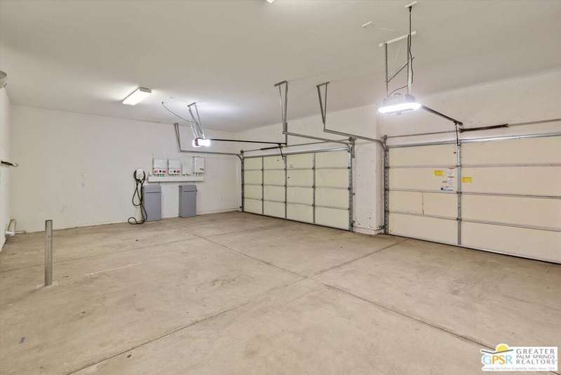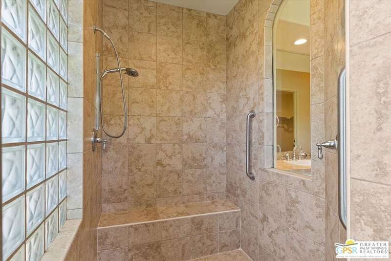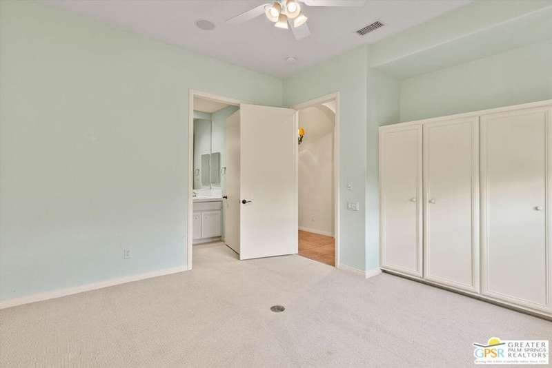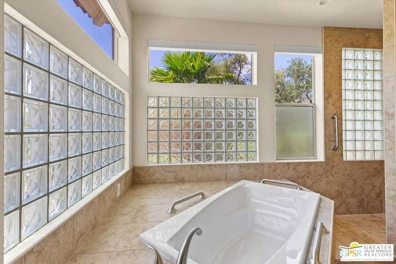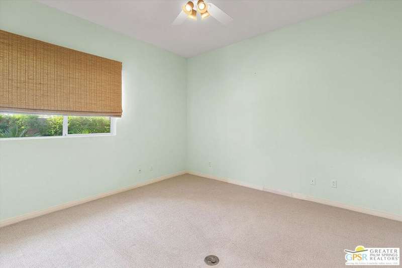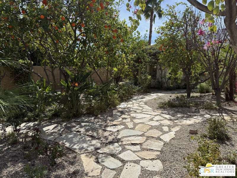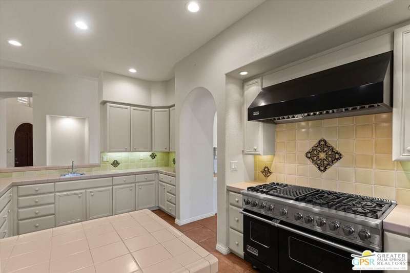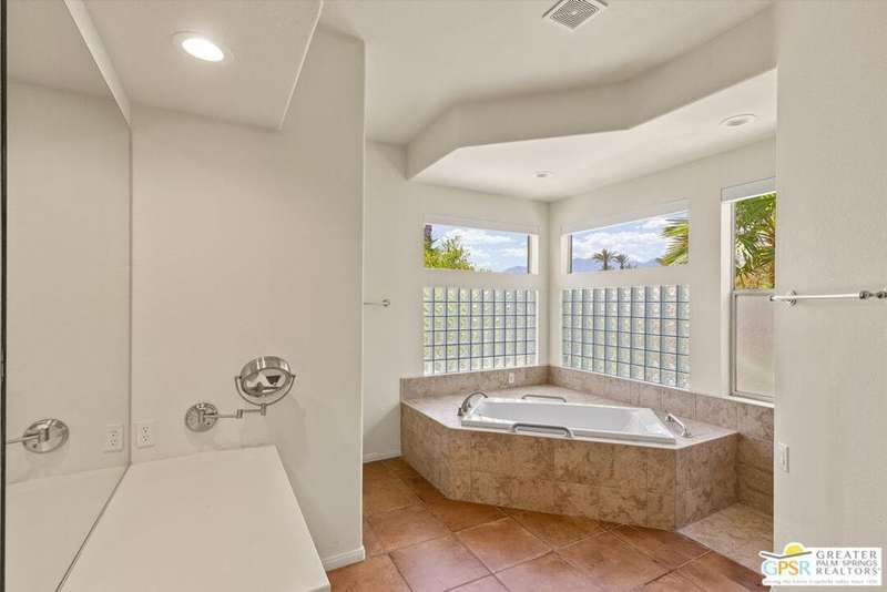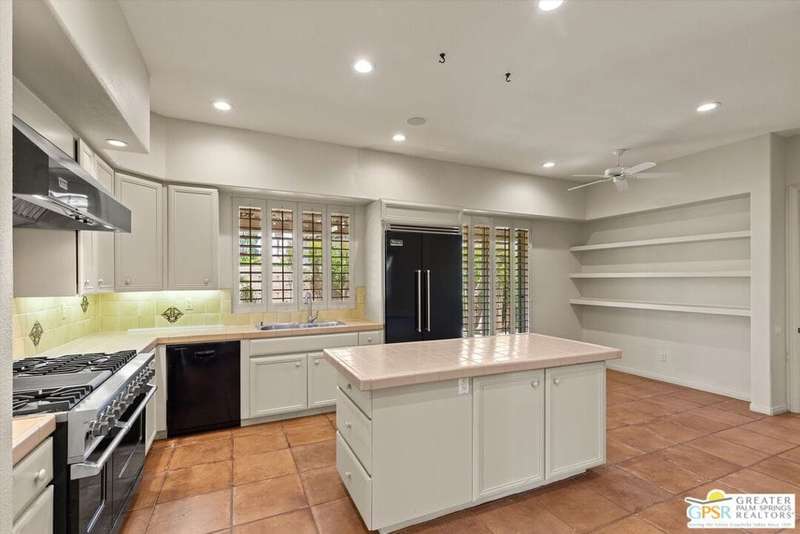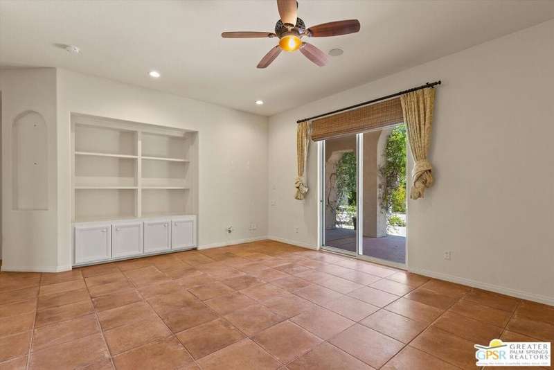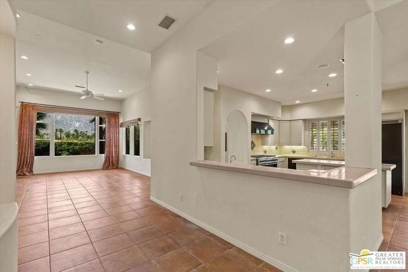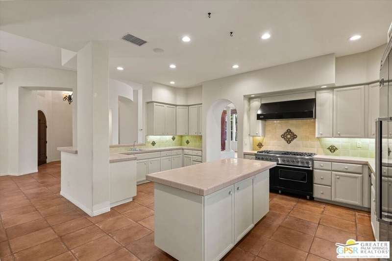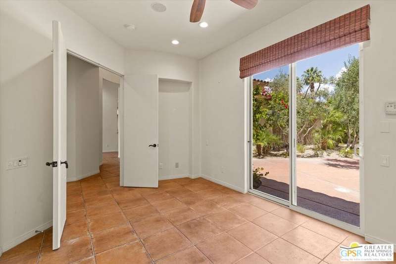 Nestled securely within the prestigious gates of an exclusive enclave, discover this grand Spanish Mediterranean retreat equipped with OWNED SOLAR and offers immediate occupancy in time for season! One of only 35 distinguished residences, the property offers unparalleled privacy amidst lushly hedged landscapes, Zen-like grounds. Imagine strolling along serene walking paths, pausing by a charming gazebo and tranquil pond with a cascading waterfall, all while surrounded by fruit-filled citrus trees and breathtaking, postcard-perfect mountain vistas. Step through the impressive entry rotunda into the spacious 24x15 living room, where soaring 13' ceilings and a striking fireplace create an inviting ambiance with bold mountain views. The living room flows seamlessly into the adjacent 14x13 formal dining room, perfect for elegant gatherings. A separate family/media room, complete with a cozy fireplace, provides an ideal space for friends and family to celebrate the quintessential Palm Springs lifestyle. The truly grand chef's kitchen boasts top-of-the-line Viking Professional appliances, abundant prep spaces, a large center island with extensive storage cabinets and display shelves. Retreat to the pampering primary suite, featuring a generous walk-in closet, built-in linen storage, dual vanities, and a separate tub and shower with mountain views. An adjacent home office or exercise/yoga area offers added convenience. Two additional well separated bedrooms, with their own entry hall and ensuite baths, showcase stunning western mountain views. A full-sized laundry room with extra storage and additional refrigeration provides practicality, leading to the oversized three-car attached garage. Outside, the sparkling pool and spa create the ultimate private resort-like oasis for relaxation. Personalize this hidden gem with your own cosmetic touches and embrace the exceptional private Palm Springs vibe. YES, with an owned energy-saving solar system with car charger and low HOA fees, this retreat is truly a very special find. Personalize the cosmetics to your liking, as there's no need to buy unwanted seller upgrades only to reverse them to your preferences.