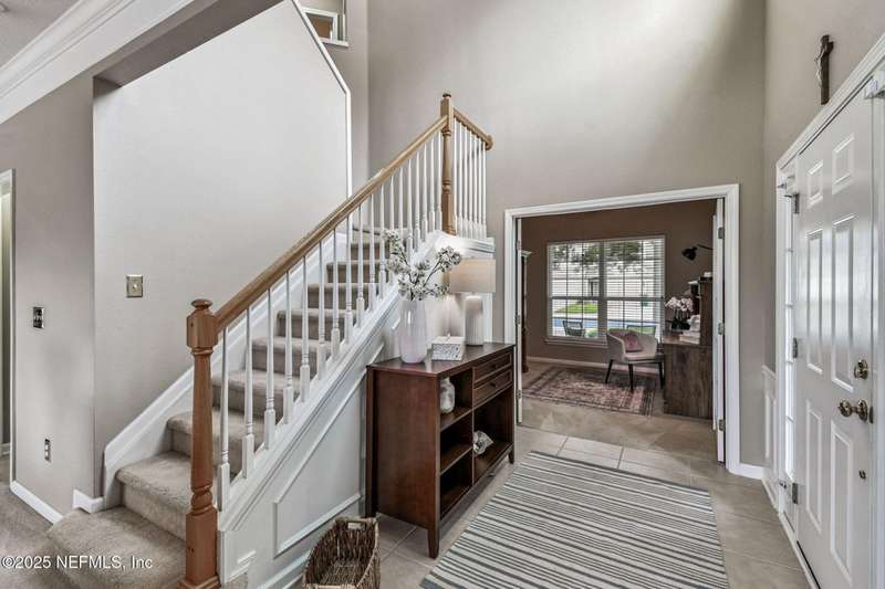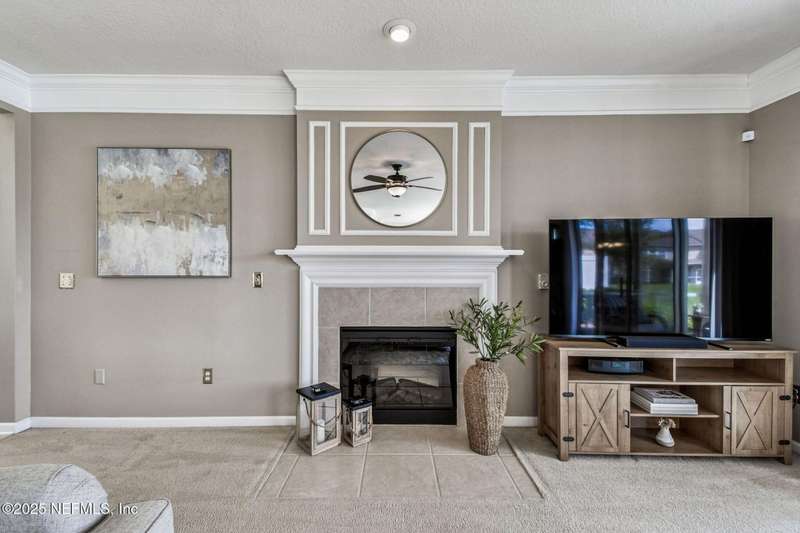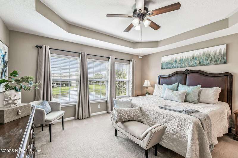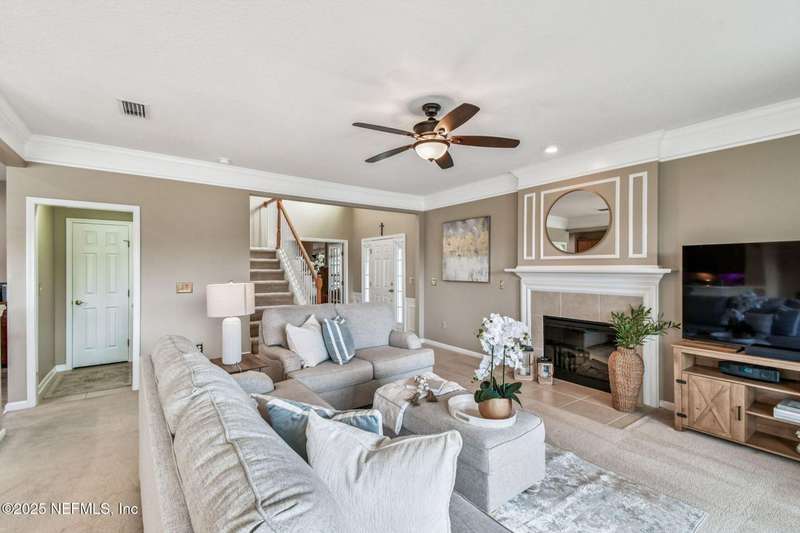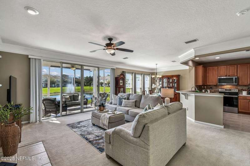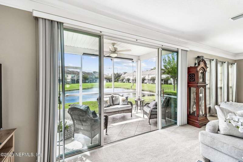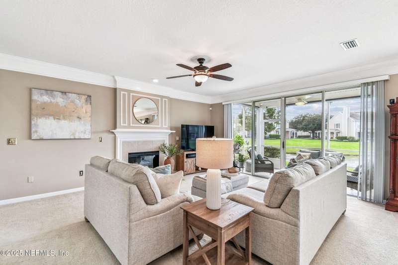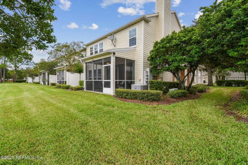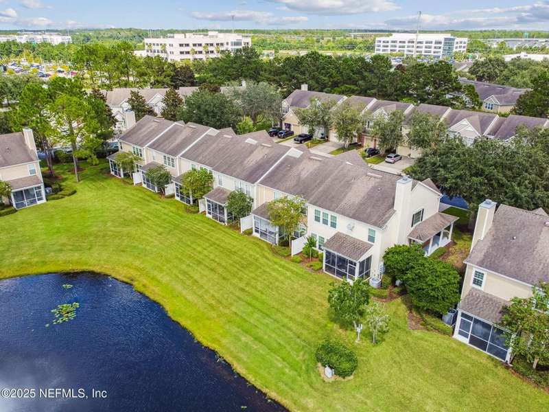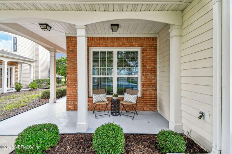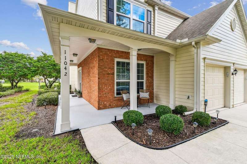 1-Year Home Warranty Included! Welcome to luxury living at the beautiful, gated community of Oxford Chase. This meticulously maintained end-unit townhome has been recently outfitted with energy efficient windows and is ready for its new owner! Upon entering the home, you'll immediately notice the soaring high ceilings, plus the wainscoting in the foyer & entry hall leading to a large open concept living area. Next, you'll spy exquisite crown molding & the magnificent water view of the backyard and fountain through the wall of sliding glass doors which lead onto the screened-in porch. What a great setting for entertaining with friends or relaxing with nature! You will also appreciate the cozy fireplace, featuring remote control electric logs & a large mantel for decorating. . Through the elegant glass paneled French doors to the right of the grand foyer is a private study or flex space that can be utilized as a 4th bedroom. In addition to the spacious dining room, there's an eat-in kitchen with pantry, stunning 42-inch high wood cabinets, upgraded hardware and gooseneck faucet, custom tile backsplash, and a stainless appliance package featuring Bosch dishwasher and LG French Door refrigerator! Plus, there's a breakfast bar for additional seating. Check out the 2-car garage, with epoxy floors, newer garage door openers, insulated garage doors, overhead shelving and ample room for storage. Come back inside to see the stylish powder room with an upgraded vanity and the coat/utility closet to round out the 1st floor. All bedrooms are upstairs and feature plenty of natural light. The oversized Primary bedroom has a tray ceiling and easily accommodates a king-sized bed. The en-suite bathroom features tasteful French doors, double-vanity cabinetry and sinks, a walk-in shower stall, large soaking tub, separate water closet, and a huge walk-in closet. Next-door to the Primary suite is a guest bedroom and a hallway laundry room...washer & dryer included! The 3rd bedroom is down the hall, plus, there's an additional full bathroom. Don't forget to visit the amenities center, featuring the clubhouse, outside covered dining area, fitness center, and a resort style pool! Oxford Chase is a centrally located, sought-after gated community, convenient to St. Johns Town Center, Ikea, JTB, I-295, Mayo Clinic, and the beaches.***Features and Upgrades*** All New Energy Efficient Windows 2022Covered Back Porch Re-ScreenedUpgraded Screened Porch Tile FlooringScreened Porch Roll Down ShadesStainless Appliances: French Door Refrigerator, Bosch Dishwasher, Whirlpool Range 2023Kitchen Custom Tile Backsplash & Under Cabinet LightingUpdated Powder Room Cabinetry and Sink 2-Car Garage with Overhead Storage & Epoxy FloorsNew Garage Door Openers 2020Insulated Garage DoorsWater SoftenerArlo Exterior CamerasSimpliSafe Security SystemCustom Hunter-Douglas Remote Control Foyer Shade Beautiful Fireplace with Mantel and Remote Controlled Electric Log Insert8-10 ft Ceilings, Tray Ceilings, Vaulted Ceilings & Crown MoldingFront Entry Storm DoorLandscape Lighting, Exterior Light Sensor, Motion FloodlightBreathtaking Water and Fountain View!Lawn Maintenance Included!Luxury Gated Community!1-Year Home Warranty Included!