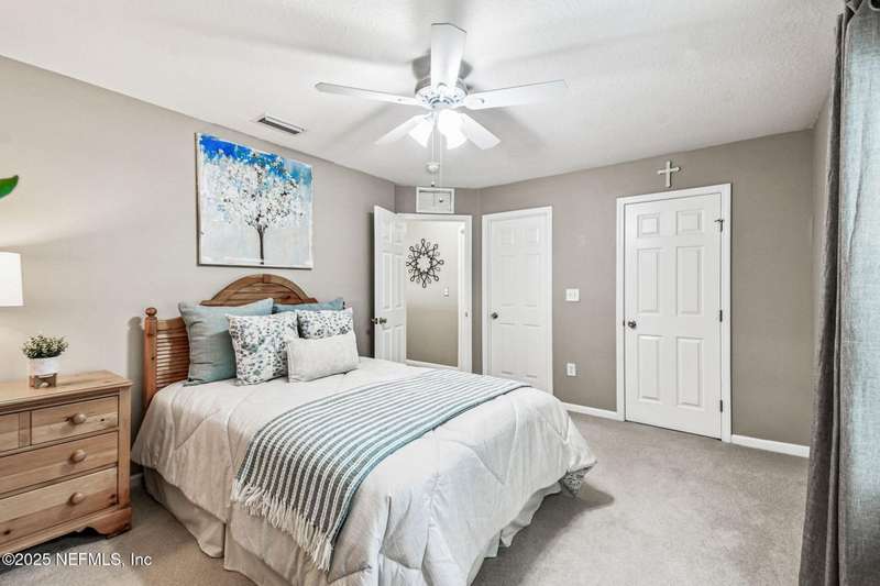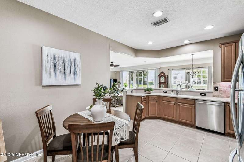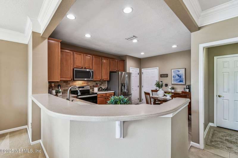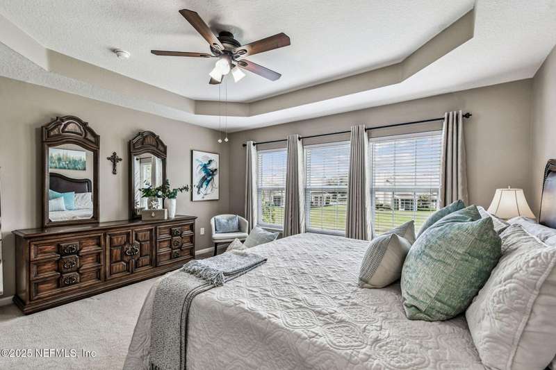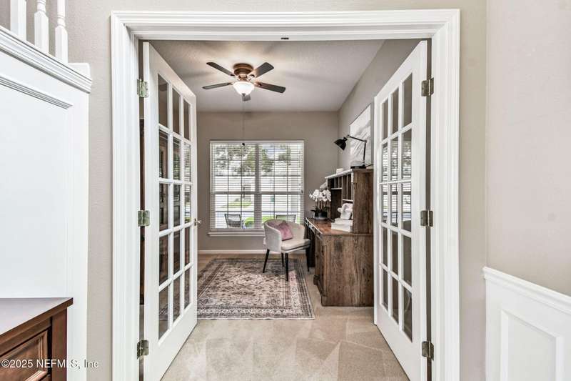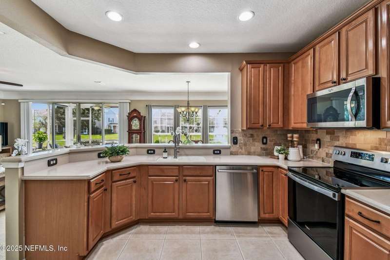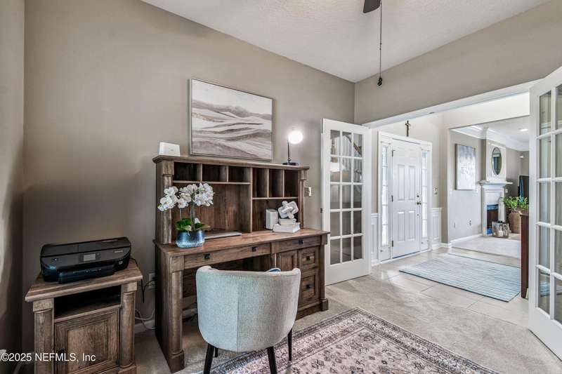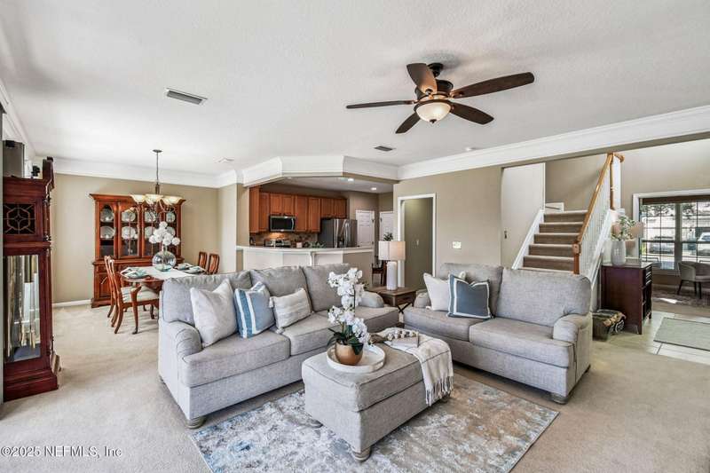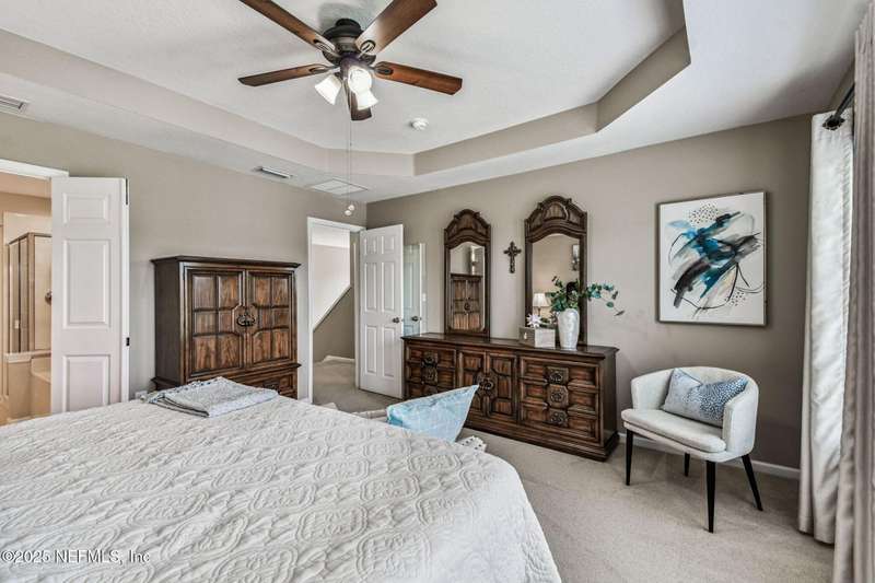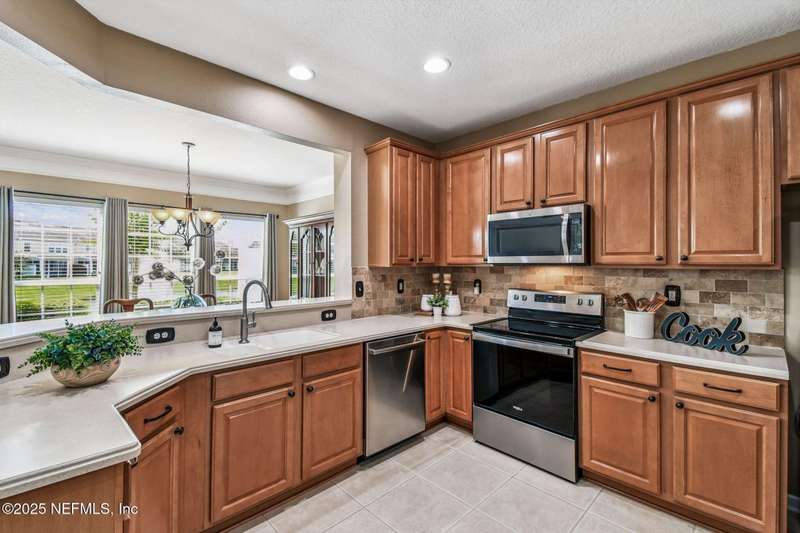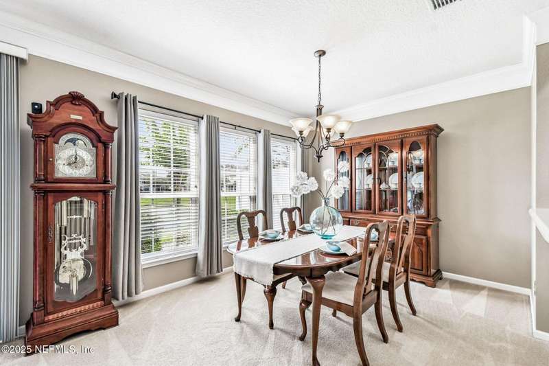 1-Year Home Warranty Included! Welcome to luxury living at the beautiful, gated community of Oxford Chase. This meticulously maintained end-unit townhome has been recently outfitted with energy efficient windows and is ready for its new owner! Upon entering the home, you'll immediately notice the soaring high ceilings, plus the wainscoting in the foyer & entry hall leading to a large open concept living area. Next, you'll spy exquisite crown molding & the magnificent water view of the backyard and fountain through the wall of sliding glass doors which lead onto the screened-in porch. What a great setting for entertaining with friends or relaxing with nature! You will also appreciate the cozy fireplace, featuring remote control electric logs & a large mantel for decorating. . Through the elegant glass paneled French doors to the right of the grand foyer is a private study or flex space that can be utilized as a 4th bedroom. In addition to the spacious dining room, there's an eat-in kitchen with pantry, stunning 42-inch high wood cabinets, upgraded hardware and gooseneck faucet, custom tile backsplash, and a stainless appliance package featuring Bosch dishwasher and LG French Door refrigerator! Plus, there's a breakfast bar for additional seating. Check out the 2-car garage, with epoxy floors, newer garage door openers, insulated garage doors, overhead shelving and ample room for storage. Come back inside to see the stylish powder room with an upgraded vanity and the coat/utility closet to round out the 1st floor. All bedrooms are upstairs and feature plenty of natural light. The oversized Primary bedroom has a tray ceiling and easily accommodates a king-sized bed. The en-suite bathroom features tasteful French doors, double-vanity cabinetry and sinks, a walk-in shower stall, large soaking tub, separate water closet, and a huge walk-in closet. Next-door to the Primary suite is a guest bedroom and a hallway laundry room...washer & dryer included! The 3rd bedroom is down the hall, plus, there's an additional full bathroom. Don't forget to visit the amenities center, featuring the clubhouse, outside covered dining area, fitness center, and a resort style pool! Oxford Chase is a centrally located, sought-after gated community, convenient to St. Johns Town Center, Ikea, JTB, I-295, Mayo Clinic, and the beaches.***Features and Upgrades*** All New Energy Efficient Windows 2022Covered Back Porch Re-ScreenedUpgraded Screened Porch Tile FlooringScreened Porch Roll Down ShadesStainless Appliances: French Door Refrigerator, Bosch Dishwasher, Whirlpool Range 2023Kitchen Custom Tile Backsplash & Under Cabinet LightingUpdated Powder Room Cabinetry and Sink 2-Car Garage with Overhead Storage & Epoxy FloorsNew Garage Door Openers 2020Insulated Garage DoorsWater SoftenerArlo Exterior CamerasSimpliSafe Security SystemCustom Hunter-Douglas Remote Control Foyer Shade Beautiful Fireplace with Mantel and Remote Controlled Electric Log Insert8-10 ft Ceilings, Tray Ceilings, Vaulted Ceilings & Crown MoldingFront Entry Storm DoorLandscape Lighting, Exterior Light Sensor, Motion FloodlightBreathtaking Water and Fountain View!Lawn Maintenance Included!Luxury Gated Community!1-Year Home Warranty Included!