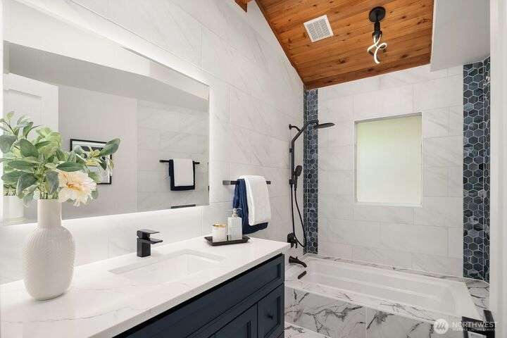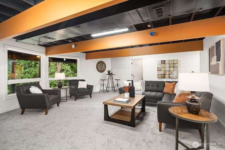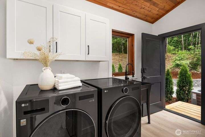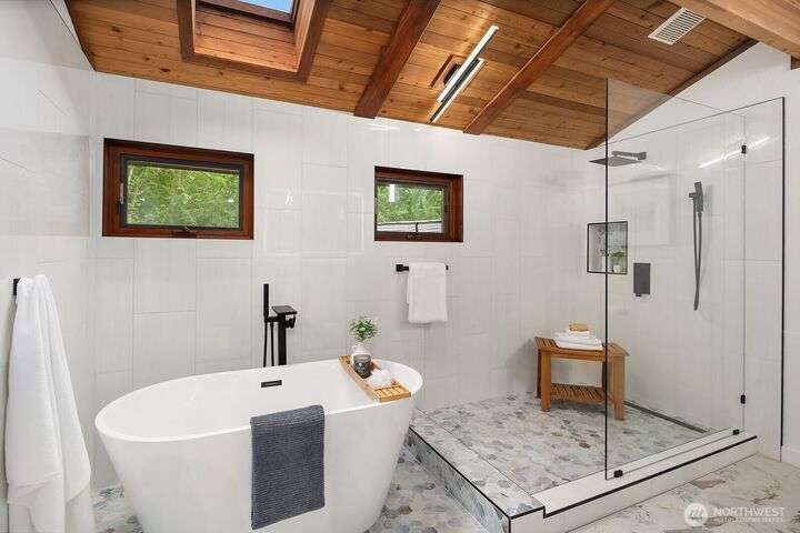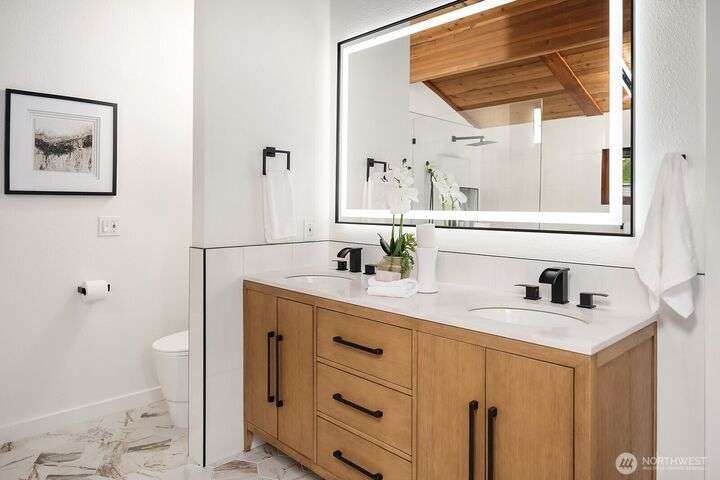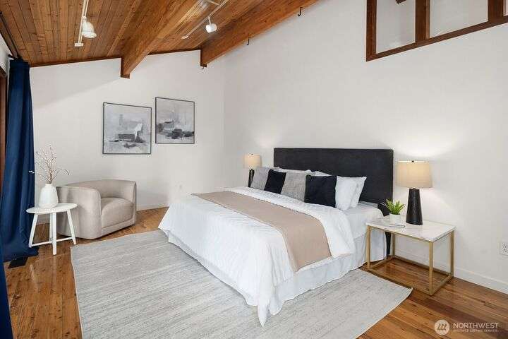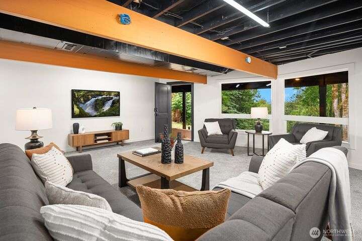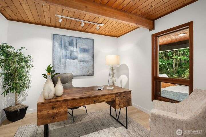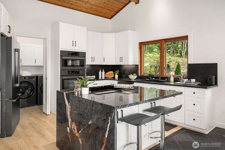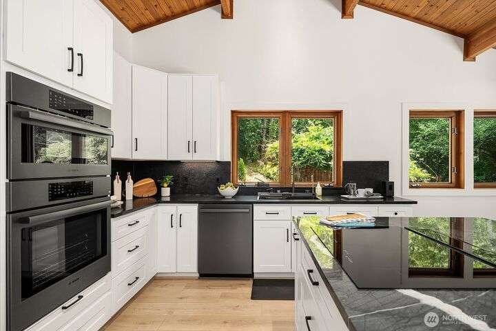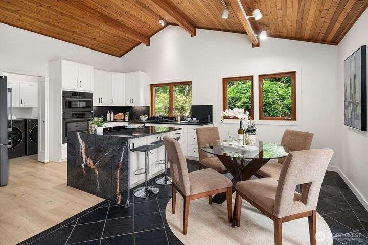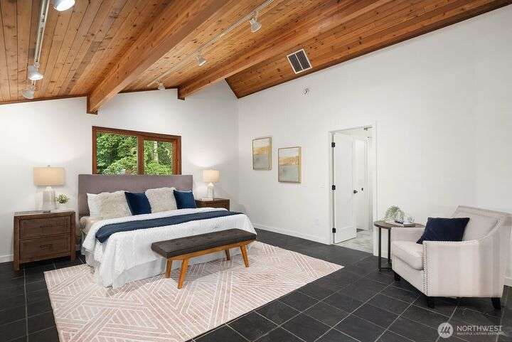 Nestled behind a private gate on nearly 5 acres, this one-of-a-kind retreat blends elegance, privacy, & a picturesque view of Mt. Rainier. With over 3,200SF of thoughtfully laid out living space, every detail is elevated; soaring wood lined ceilings, rich hardwoods, enormous wraparound deck, a chef’s kitchen, waterfall island & premium appliances. The sun-drenched great room centers around a stunning fireplace & panoramic windows that captures the mountain in perfect stillness. Upstairs, the spa-like primary suite offers a luxe bath, walk-in closet & unforgettable vistas. Downstairs includes a second living space & versatile bonus room. Beautifully landscaped, parking & near I405.