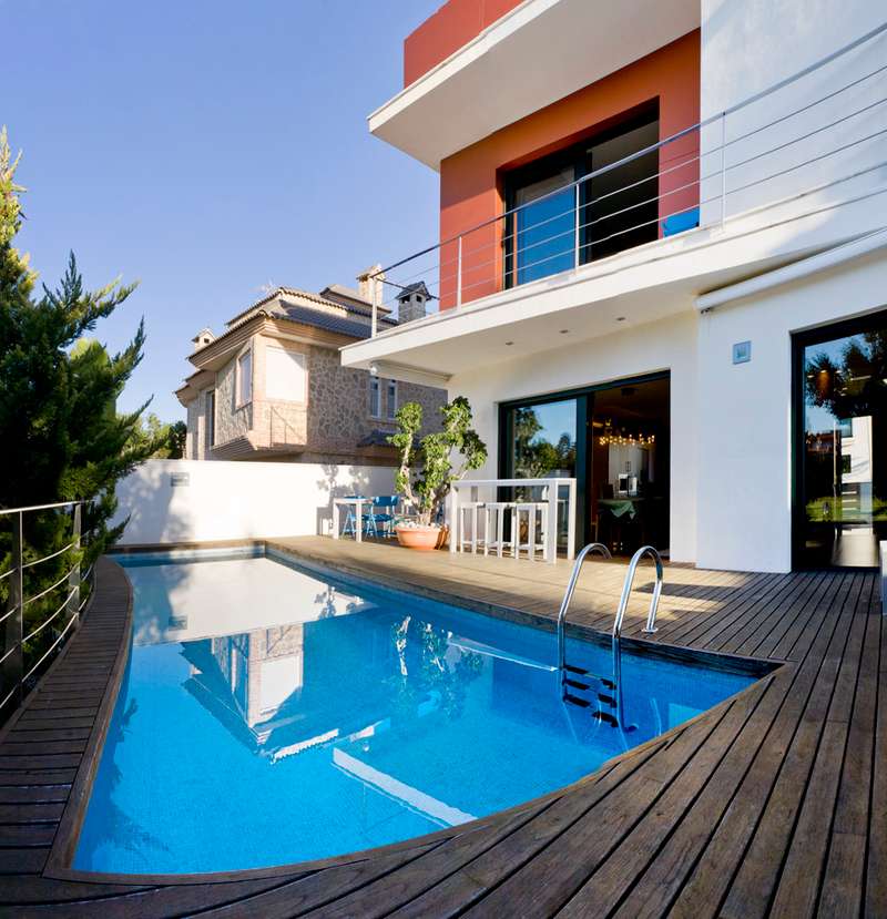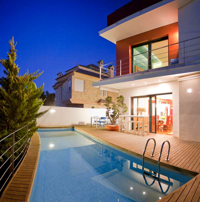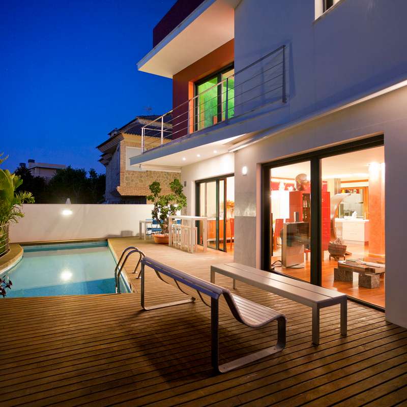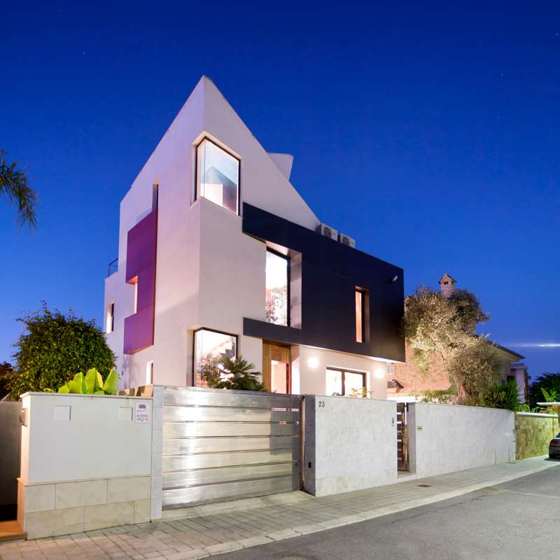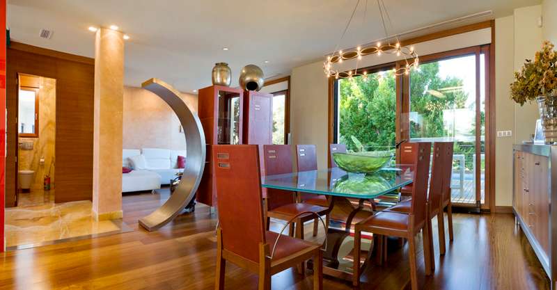 A unique modern architect-designed villa with a frontline golf location within the prestigious La Condomina residential area, in the city of Alicante, a short distance from San Juan beach. The property has been elaborately designed with noble materials like marble or wood with beautiful interiors and works. With a built living space of 346m2, the property is distributed across two floors plus the lower ground level. The ground floor consists of large living/dining room with panoramic windows with views of the golf course and access to the terrace, a modern kitchen equipped with quality domestic appliances and guest toilet. The first floor accommodates the master suite with a large wardrobe, luxurious bathroom with hydro-massage bathtub and shower, and an open terrace with views to the golf course. Also on this floor you will find an additional spacious bedroom, a complete bathroom and private terrace. The lower ground floor comprises of a large garage with automatic doors, a utility room, a gym with sauna, complete bathroom. Moreover, it provides direct access to the main living area. The swimming pool is located next to the main terrace and is surrounded by teak wood. Extras characteristics include; hot/cold air conditioning, a burglar alarm and security cameras.