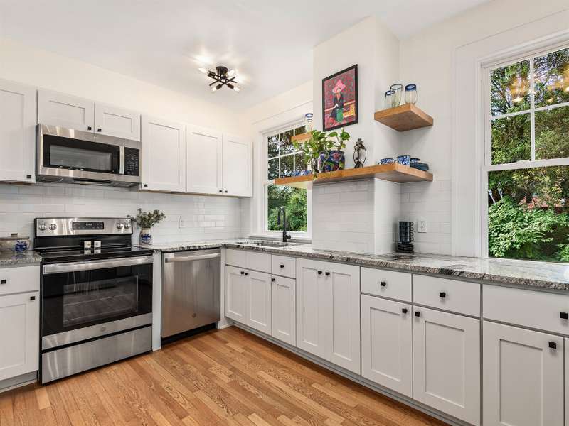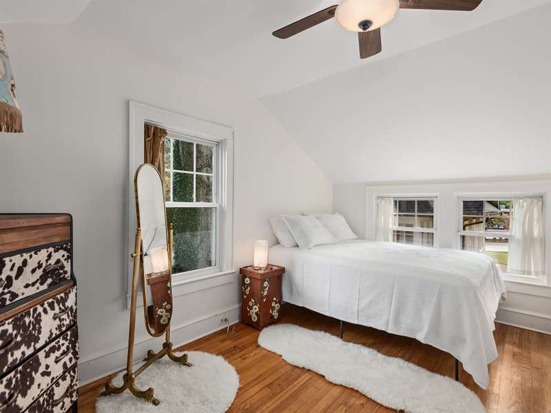 Located in desirable Lucerne Park in West Asheville, this classic 1920s Arts & Crafts bungalow blends timeless character with modern updates and versatile living options. The main home offers five spacious bedrooms, two fully renovated bathrooms, original hardwood floors, and an updated kitchen designed for today's lifestyle, plus a full basement with ample storage or expansion potential. A separate apartment above the two-car garage adds flexibility with a full kitchen, updated bath, bedroom, and living room?ideal for guests, multigenerational living, or rental income. The garage level includes a laundry area that can easily convert to a workshop or studio. Both the main house and guest suite feature new roofs and updated heating and cooling systems. Just steps from West Asheville's vibrant dining, grocery, nightlife, and shopping, and minutes from downtown, this property offers historic charm, modern convenience, and exceptional possibilities.