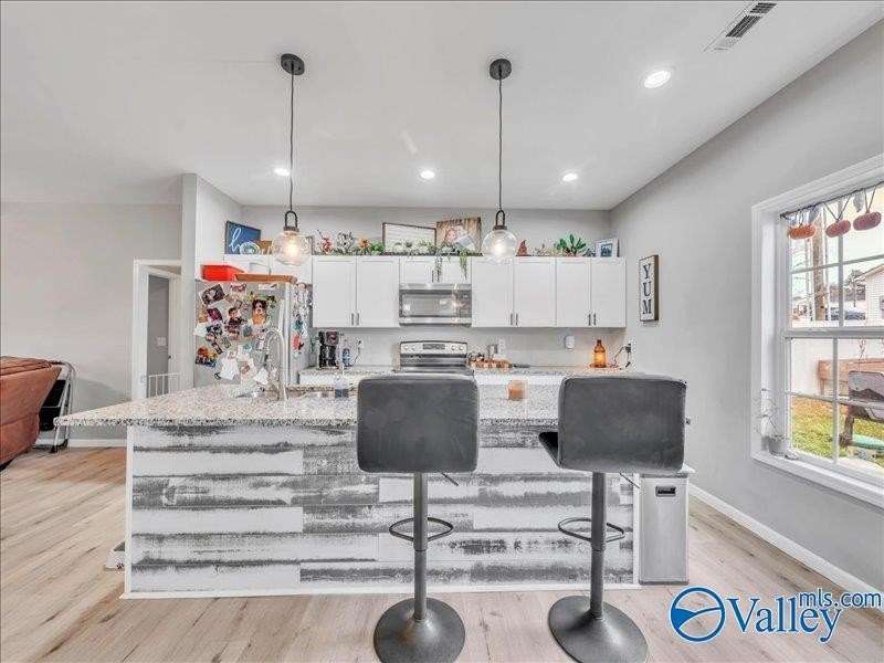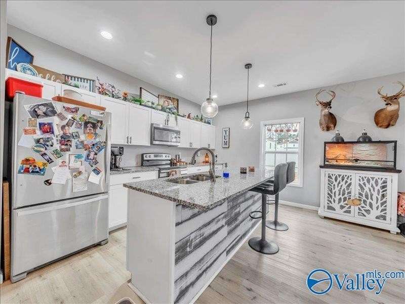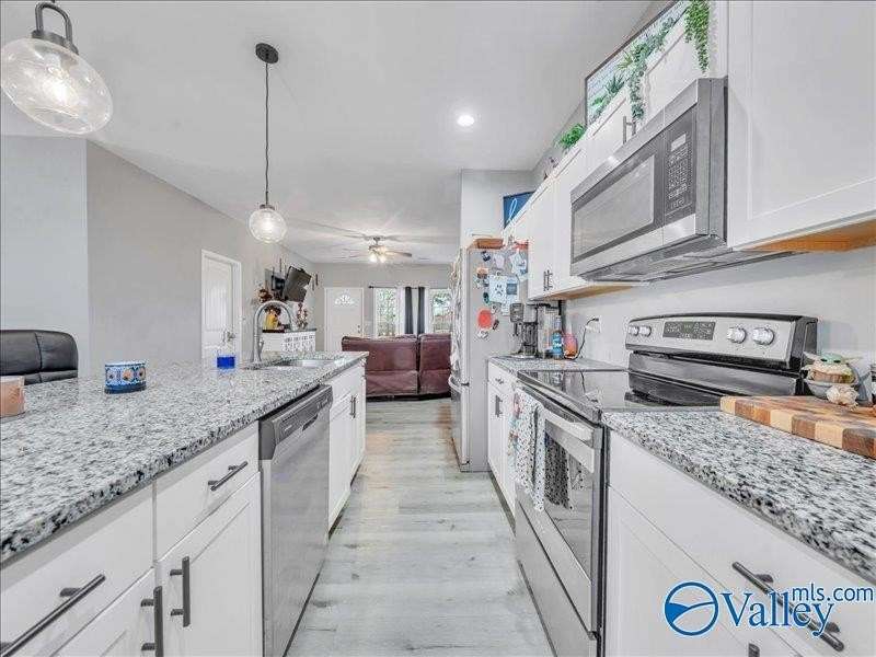 Here’s your opportunity to own this charming home with 1,394 square feet of well-planned living space. It features three spacious bedrooms, two bathrooms, and a two-car garage. Inside, you'll find 9-foot ceilings, LVP flooring, a spacious eat-in kitchen with granite counters, stainless appliances, and ample cabinets. Conveniently located just minutes from shopping, dining, and Guntersville Lake, this property is sure to go quickly.