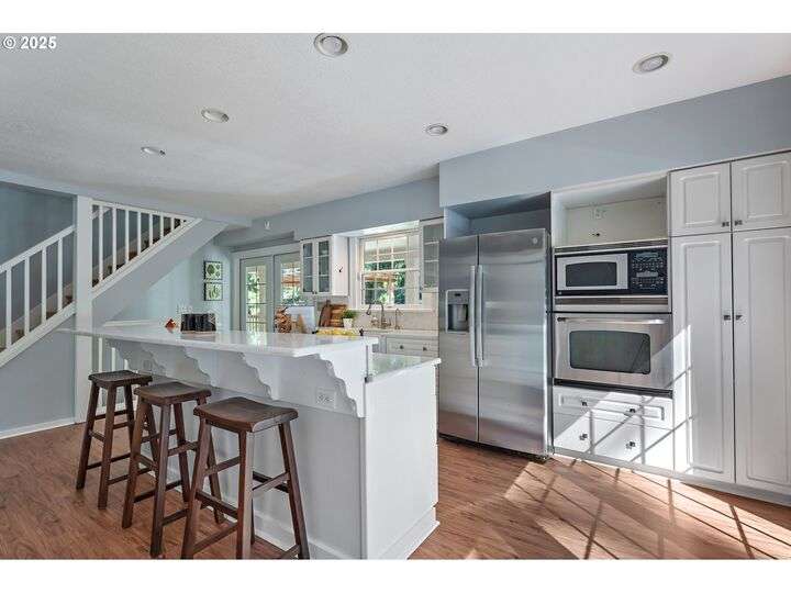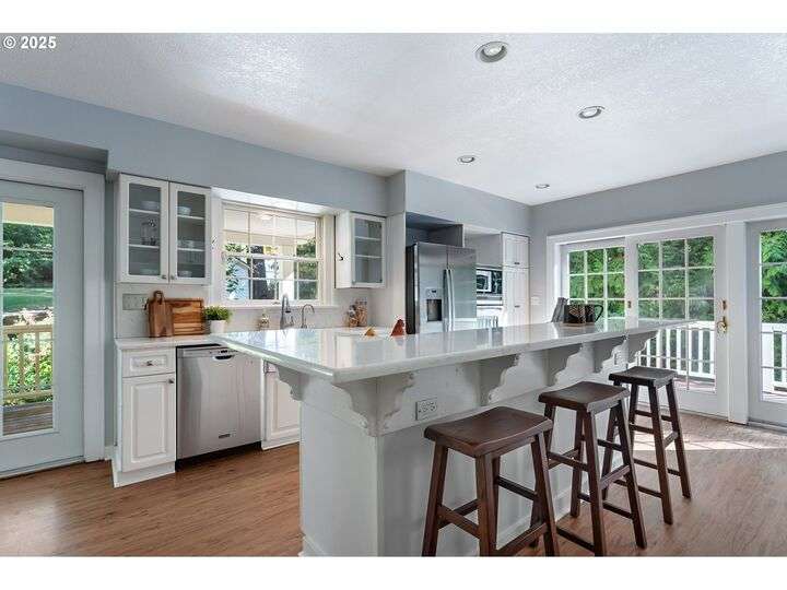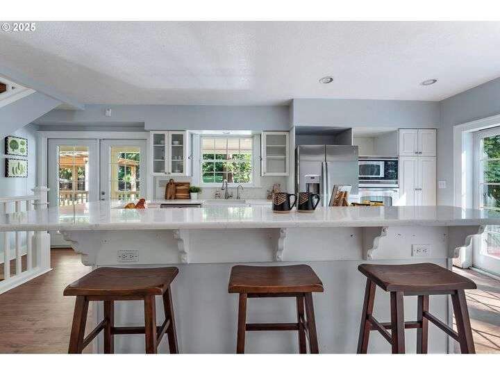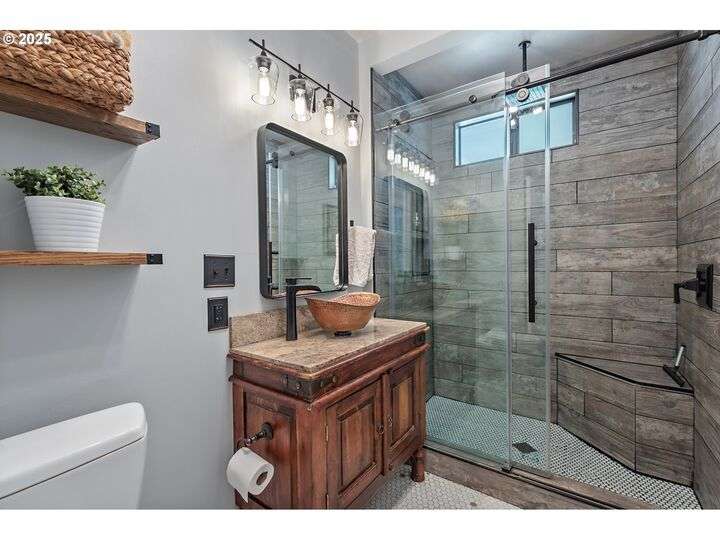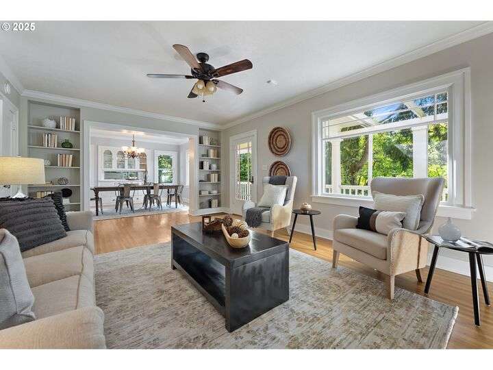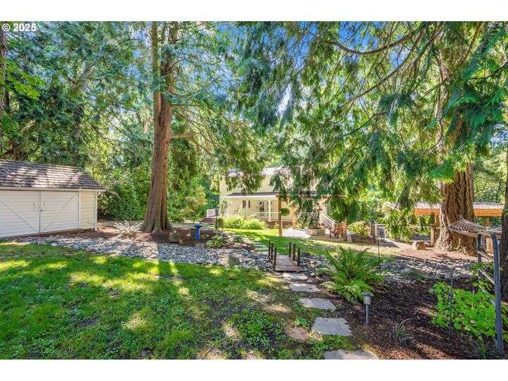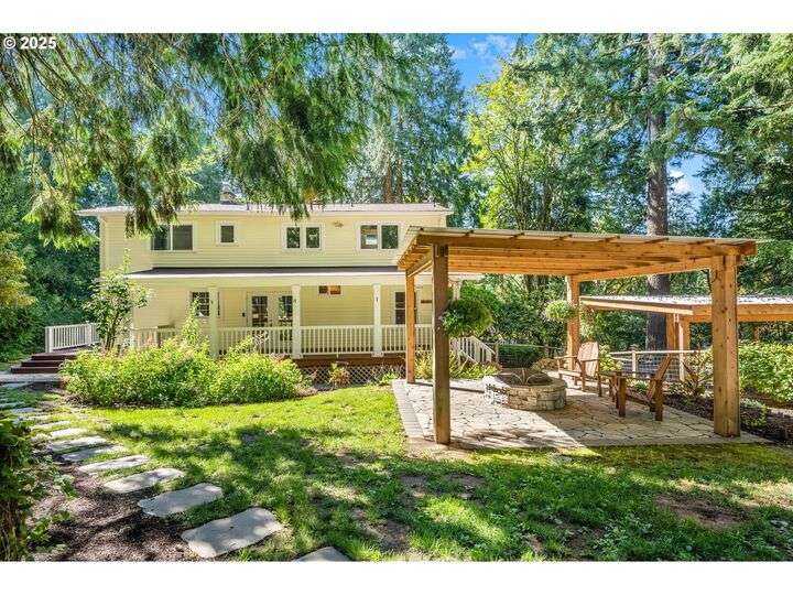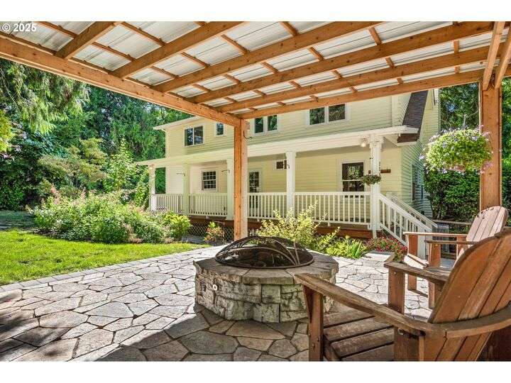 This 1928 Farmhouse delivers a bevy of comforts, tranquility and features galore! Imagine living in your own park (0.68 acres) with picturesque beauty to behold from every vantage point... NOW schedule your in-person viewing of this amazing property and come see for yourself what exceptional living feels like. This home sets a high bar for lifestyle with truly too many features to mention: generous 3,072 sqft layout over 3 floors, Brand New 30 year comp roof, hardwood floors, built-ins, 4 bedrooms, 3 full bathrooms, sun deck(s) & covered porches with durable low maintenance composite decking, covered firepit, SS appliances, gas cooktop in kitchen island, skylight in primary, large primary bathroom with shower & soaking tub, loads of storage space, wood burning fireplace, ceiling fan in living room, dual sinks in 2nd upper bathroom, air conditioning, high efficiency furnace. The detached outbuilding(s) provide additional charm to the yard while offering functionality too. [Home Energy Score = 3. HES Report at https://rpt.greenbuildingregistry.com/hes/OR10241383]