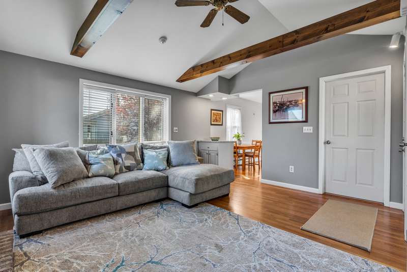 Wonderful ranch home in quiet neighborhood close to parks and beaches. This home offers one-level living at its finest with wood floors throughout. It has a great layout with a large family room in the back of the house featuring a vaulted ceiling and brick fireplace, perfect for spending cozy evenings after a long day's work. The eat-in kitchen is light and bright with stainless steel appliances stylish honed granite counters and wainscotting backsplash. The full bath has a tub/shower combo and has been recently remodeled. The lower level offers additional finished square footage, perfect for a home office, den, or workout space. The fenced-in level back yard has plenty of room for hosting barbeques and playing with your furry friend. Close to beaches, shops, and schools. There are multiple zoned heating, and a new driveway.
