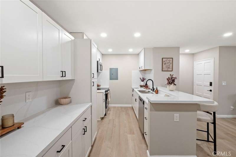COMPLETELY RENOVATED 2 bedroom, 2 bathroom condo that offers 870 square feet of living space and is completely move-in ready. The kitchen has been updated with brand new cabinetry, countertops, and stainless steel appliances. Both bathrooms have been remodeled with modern finishes and brand new tub/shower enclosures. Throughout the home you will find waterproof luxury vinyl plank flooring along with dual pane windows and sliding doors that provide efficiency and comfort. A WiFi smart lock and WiFi thermostat add convenience and peace of mind. This condo includes an in-unit washer and dryer. The community does not allow for the addition of a dryer vent, but new ventless all-in-one technology makes this possible and sets this home apart from the rest. The gated community includes three swimming pools and well-kept grounds. Monthly HOA dues of $426.67 cover water, trash, and sewer. The condo comes with a covered carport that includes storage, and there is plenty of additional parking for residents and guests. The neighborhood is in the midst of a community-wide revitalization. Over the next one to two years, the exterior of all buildings and common areas will be completely refreshed. Building 1 near the entry gate has already been completed and shows the high quality of the improvements that are planned for the entire community. The South Coast Plaza Village redevelopment is moving forward nearby. This project will bring new retail, dining, and community spaces, creating long-term value and future equity for homeowners. Located minutes from South Coast Plaza, Irvine, dining, and freeway access, this condo combines modern upgrades, strong community amenities, and exciting future growth.