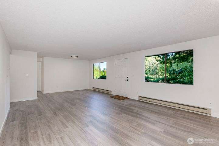 Welcome to Cascade Views amazing ground level no stairs unit! Only 7 units on a shy 1-acre lot! Brand new interior from top to bottom! Living/dining area showcase a brick heatolator fireplace. All new flooring, doors, woodwork, light fixtures, hot water tank & new paint throughout. New light & bright kitchen w/ new soft close cabinets, quartz counters, stainless appliances, sink & disposal. All new bath w/ new fixtures, quartz counter, & walk-in shower. Laundry w/ full size washer/dryer. Spacious bedroom & large closet w/ full length mirrored doors. 2 dedicated parking spaces & private side yard right outside your front door! Parklike area across from unit, is perfect for walking your furry friends. Amazing home & price, so don't miss out!