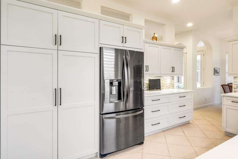 Don't miss your opportunity to see this impeccably maintained home situated on a quiet cul-de-sac in the highly desirable North Naples community of Carlton Lakes. This floor plan features 3 bedrooms, 2 full baths, formal dining space, large living room & open den space located off of the kitchen. This home will check all the boxes. The moment you walk through the front entry you'll notice volume ceilings, decorative archways, plantation shutters and your serene preserve view. Enjoy cooking in your completely renovated kitchen that features shaker cabinets, quartz countertops, large composite sink & stainless steel appliances. You'll enjoy dining alfresco on your oversized screened back lanai listening to the sounds of the birds from the preserve. The spacious master suite has an in-suite bath that has just recently been updated and includes dual sinks with new vanities, quartz countertops, brushed nickel faucets, newly tiled shower with frameless shower door and large soaking tub. Other notable updates include a new roof in 2022, accordion shutters for hurricane protection, recently painted exterior, newer AC and epoxied garage floor. Carlton Lakes amenities include a club house with 60 foot lap pool & hot tub, a fitness room, bocce & tennis courts, tot lot & fishing pier. You are close to shopping & dining, have great walkability to 2 grocery stores and you are only 7 miles to Naples gorgeous white sand beaches. This home comes with a 1 year home warranty for the new buyer at closing.