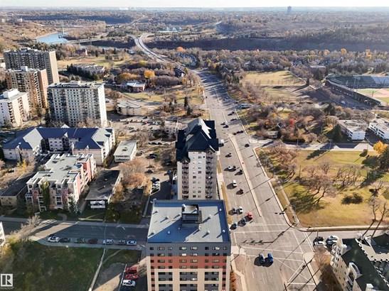 Adorable and affordable! Come and enjoy the convenience of downtown living near everything you love with VERY LOW CONDO FEES. Steps from the river valley, this 1 bed 1 bath unit has easy access to the University of Alberta, MacEwan University, LRT, ICE District, city center, shopping, restaurants, festivals and the incredible river valley trail system. This well maintained unit has an updated kitchen and bathroom, and beautiful Edmonton views! River Valley Condominiums is a well managed building featuring concrete construction, two elevators, a flexible parking system, same floor laundry and garbage disposal and updated windows and heating system. Very low condo fees include heat, unlimited electricity, water, sewer, insurance, property manager and a healthy reserve fund. A wonderful opportunity for first time buyers and investors alike!