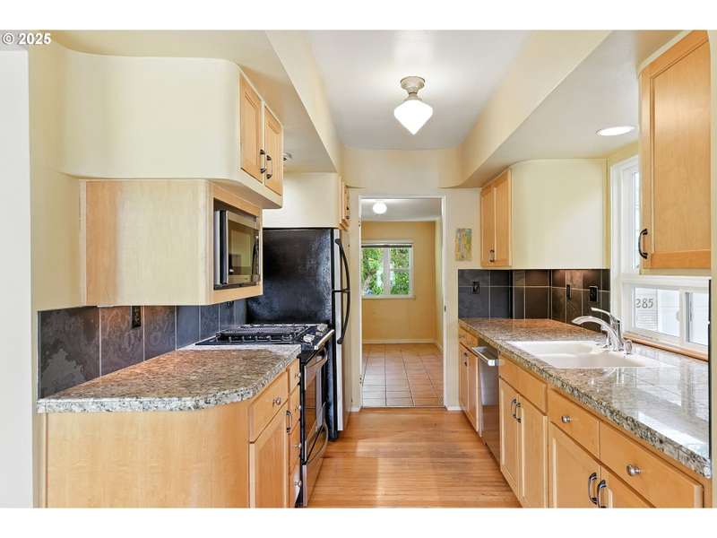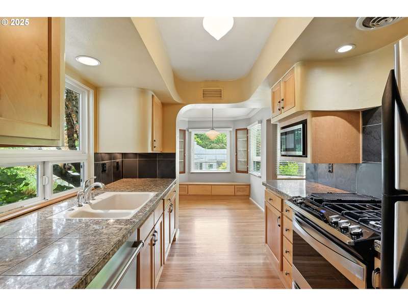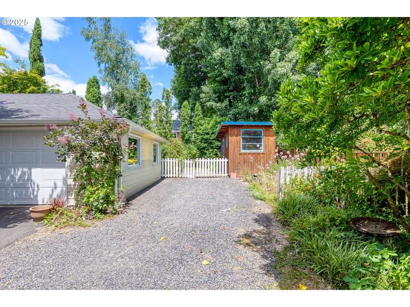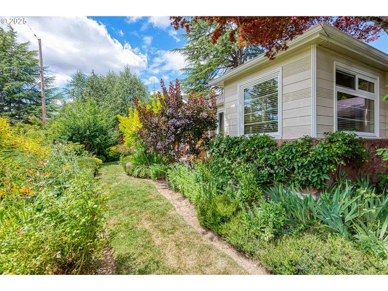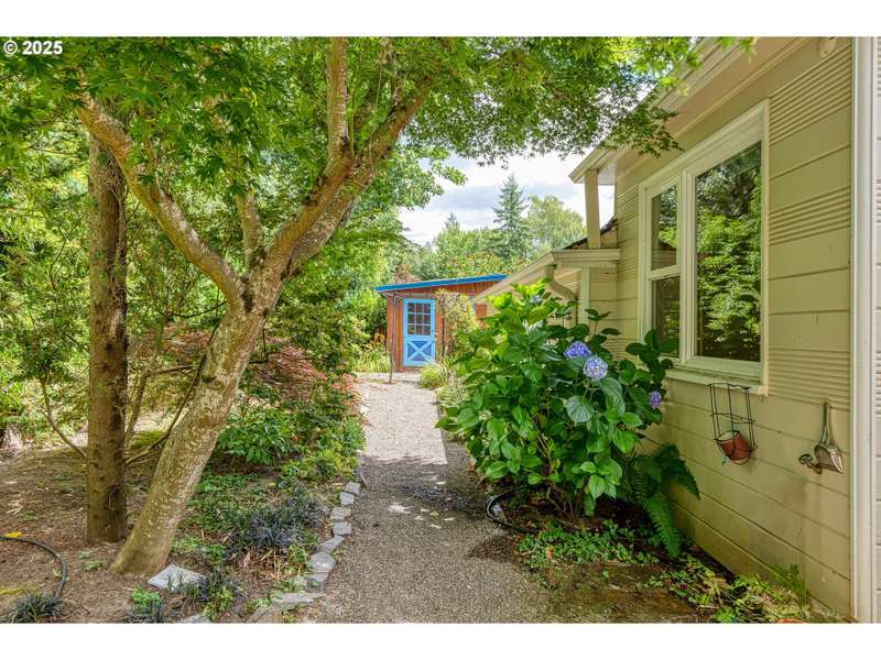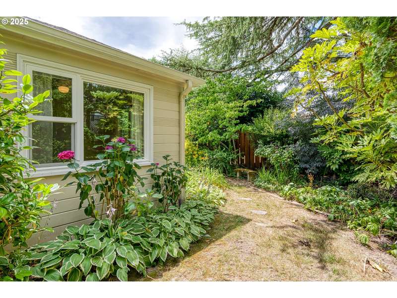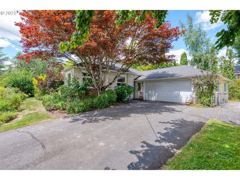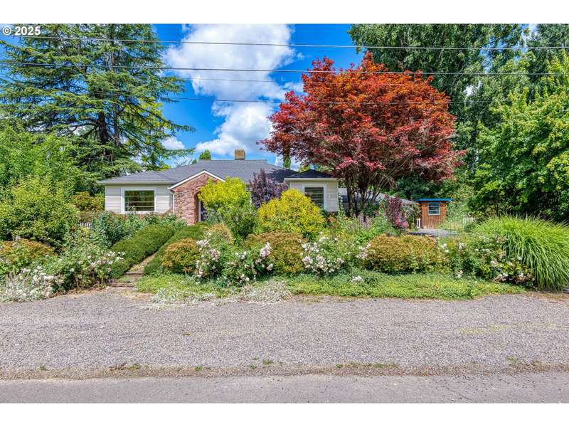 This GARDEN HOME/RALEIGH HILLS/WEST SLOPE English Ranch in Unincorporated Washington County won't last! Gorgeous meticulously maintained English Garden with RV parking+, 2 car garage and artist studio. The galley kitchen with breakfast nook was updated in '08 while keeping the charm of the period with rounded plaster walls & ceilings, built-ins, Restoration Hardware pendant lights, and Hippo Hardware knobs. New tear-off composite roof in 2010. Repaired sewer line in June '25. Repaired electrical and bathroom plumbing. Original decorative cedar siding kept in excellent condition, curved doorways, two wood fireplaces, original tiled bathroom floor and shower, short breezeway from garage to home and very tall ceilings in the large enclosed back patio/family room, and 'mud room.' Two car garage with pull-down stairs for tons of storage in attic. Too much to list. This perfectly situated home within walking distance to parks, neighborhood pool, tennis & pickleball court is a gardener's delight.