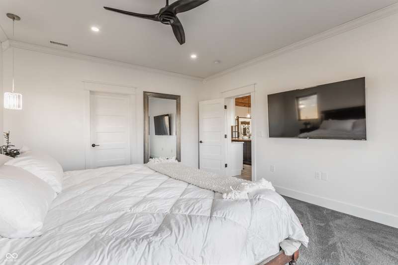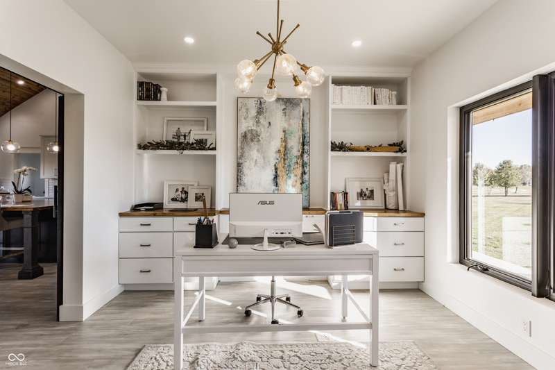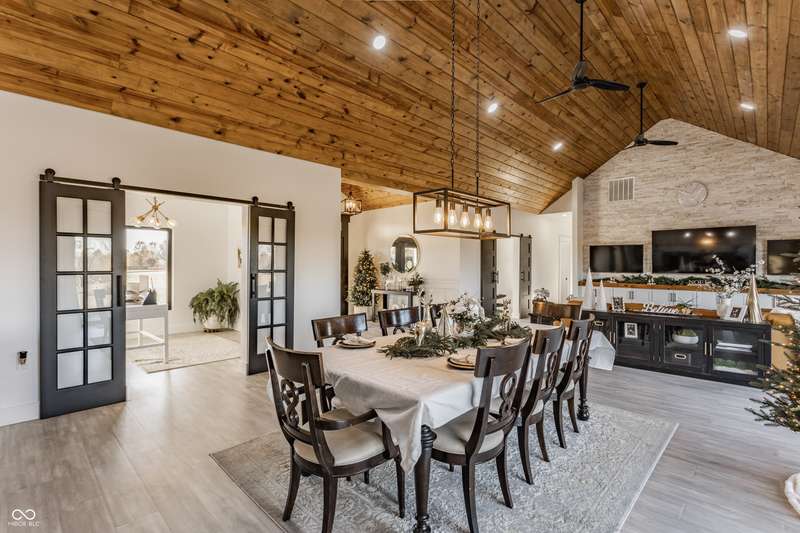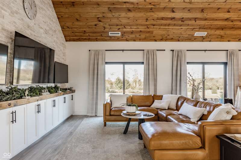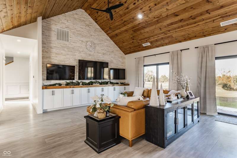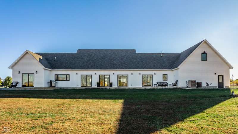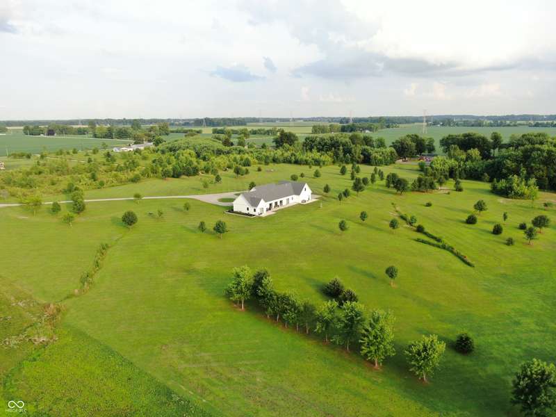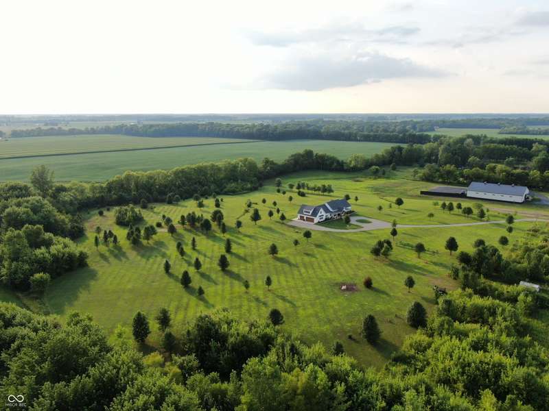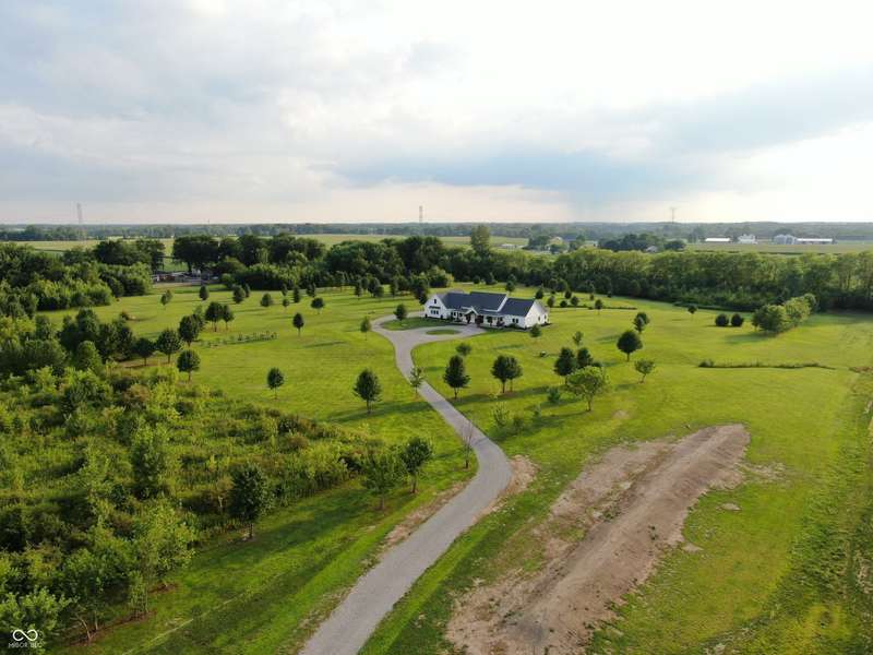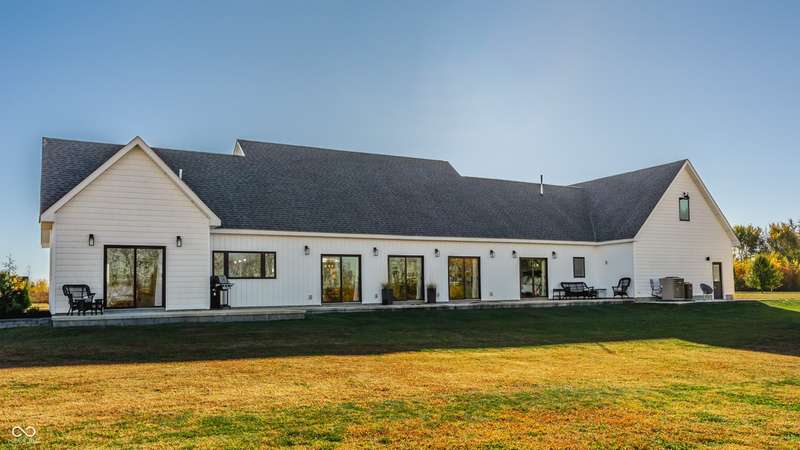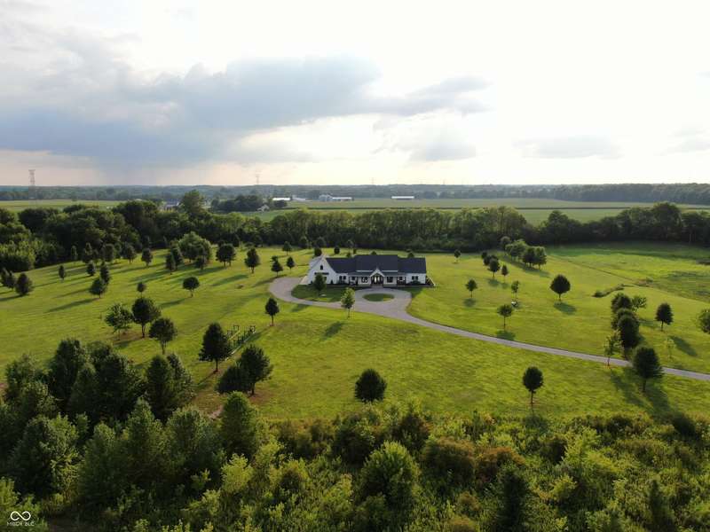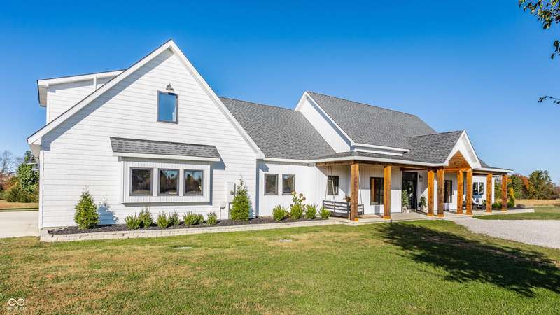 Welcome to your dream retreat! This breathtaking modern farmhouse, built in 2022, is perfectly nestled on 16 acres of rolling hills, offering privacy and abundant wildlife, including whitetail deer. As you approach the property, a 1,000-foot long driveway invites you to your serene escape. Step inside to discover a spacious and inviting interior, featuring a gourmet kitchen that is a chef's paradise. The kitchen boasts a generous 9x6 center island, gleaming quartz countertops, a double oven, a charming farm sink, and a walk-in pantry for all your culinary needs. The open layout seamlessly connects the kitchen to the main living area, perfect for entertaining family and friends. Retreat to the primary suite, where you'll find a cozy fireplace, an ensuite bathroom adorned with quartz counters and a glass shower. The walk-in closet offers ample storage, and a sliding glass door provides direct access to the back patio-ideal for morning coffee or evening relaxation. The upper level features a versatile loft space complete with a private bedroom and bathroom. On the main floor, enjoy a dedicated exercise room and an office space enhanced with built-in cabinets for organization. Relax on the covered front porch, or step out onto the concrete-poured back patio, easily accessible from the primary bedroom, secondary bedroom, and main living area-perfect for enjoying the scenic views of your land. This remarkable property includes a spacious 3-car garage and is conveniently located just 7 miles from the regional airport and 3.5 miles from the Greenfield exit to I-70, providing quick access to downtown Indianapolis. Don't miss this unique opportunity to own a slice of paradise that blends modern luxury with serene country living! Schedule your private tour today!