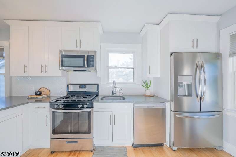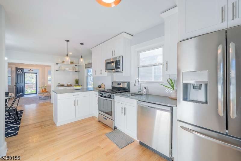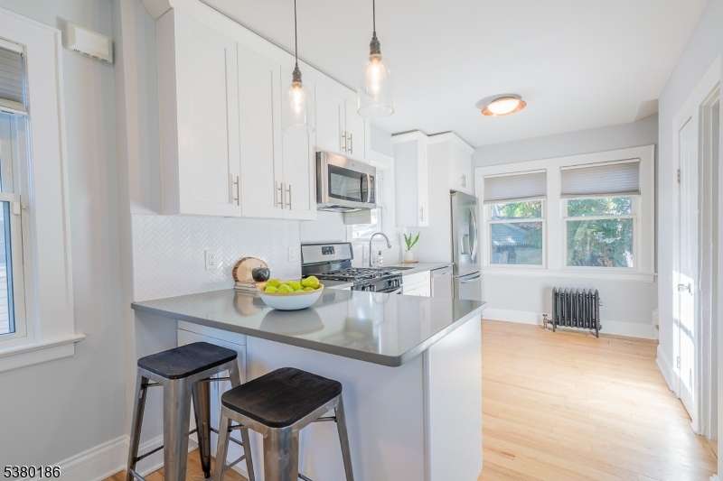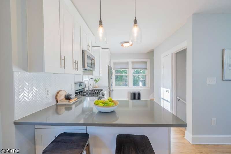 Welcome to this charming, fresh and well-maintained home or condo-style alternative in the thriving Hilton section of Maplewood. The enclosed front porch/sunroom welcomes you into this inviting home. The first level features a bright living room that flows seamlessly into an updated kitchen with granite countertops, tiled backsplash, stainless steel appliances, custom cabinets, breakfast peninsula perfect for your morning coffee and a separate dining area. Upstairs you will find the large Primary Bedroom, Bedroom 2 and full updated bath. The lower level includes a recreation room, office and laundry, ideal for additional living space or remote work. Enjoy the outdoors on the rear patio and fully fence yard with a storage shed providing extra space for tools or seasonal items. Conveniently located just 0.2 mile to the Jitney to trains to NYC, and close to shopping, dining, parks, and schools. This home features freshly painted rooms throughout, hardwood floors and new basement flooring. A perfect blend of comfort, character, and convenience in one of Maplewood's most desirable neighborhoods. A must see!
