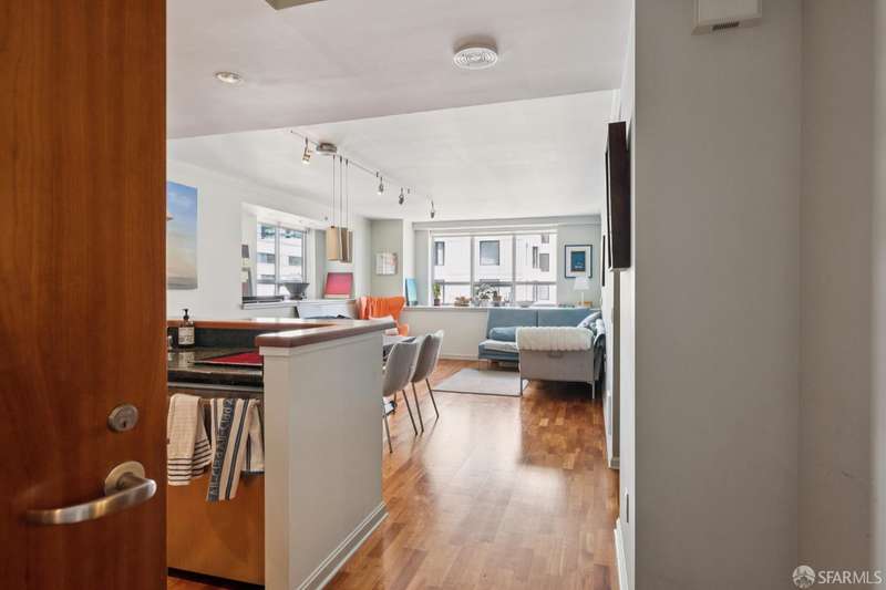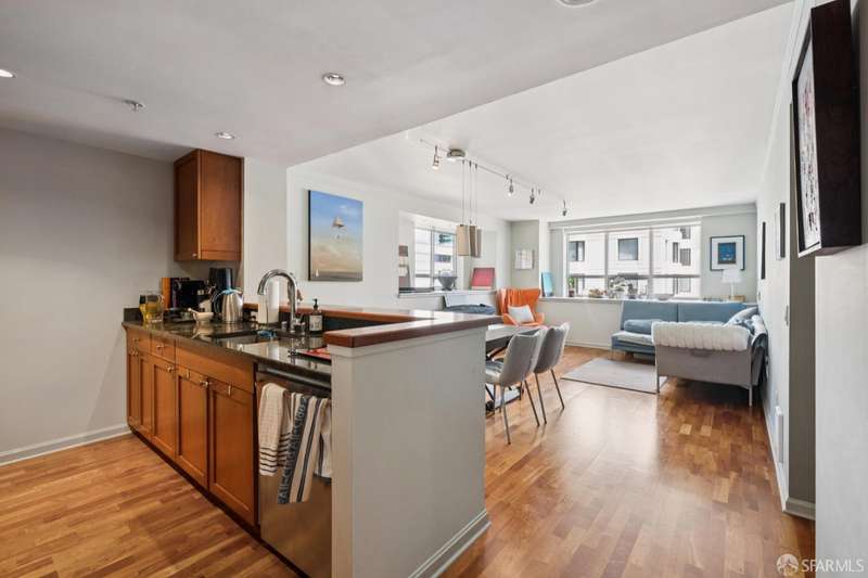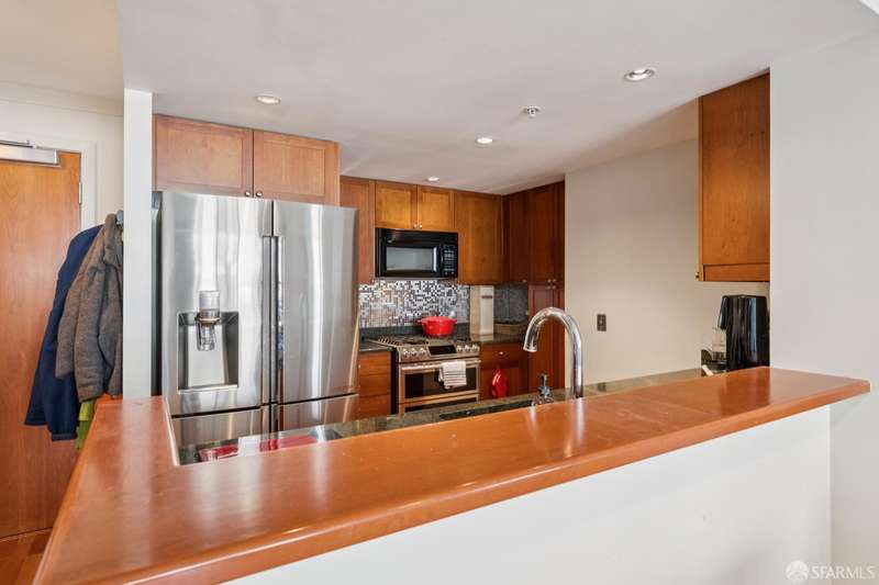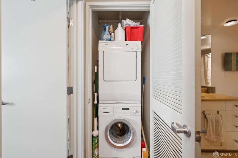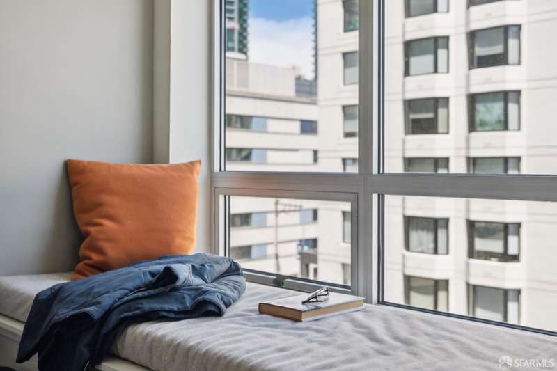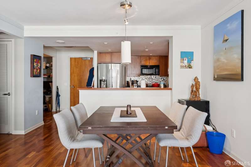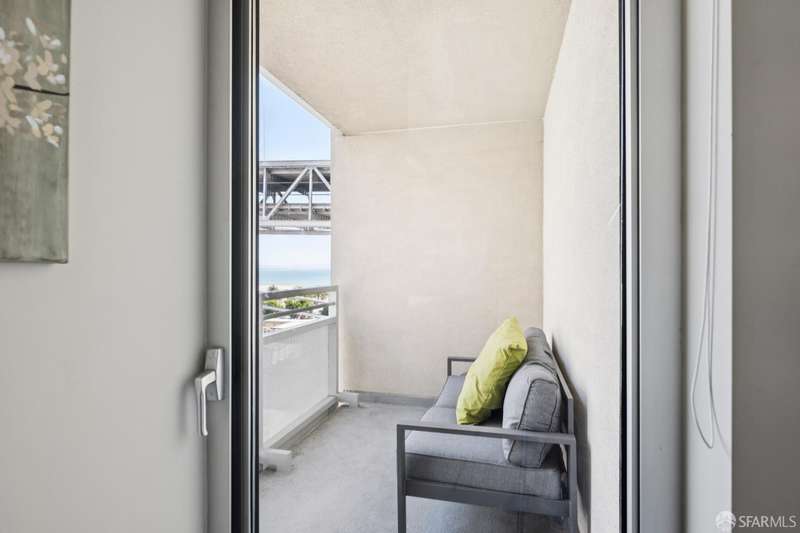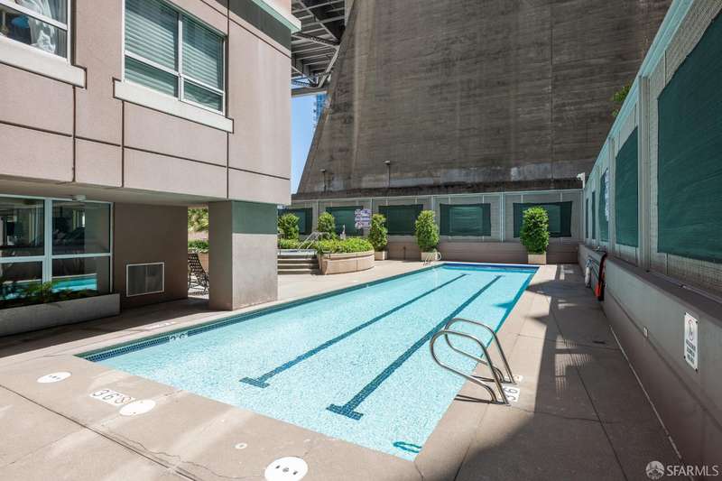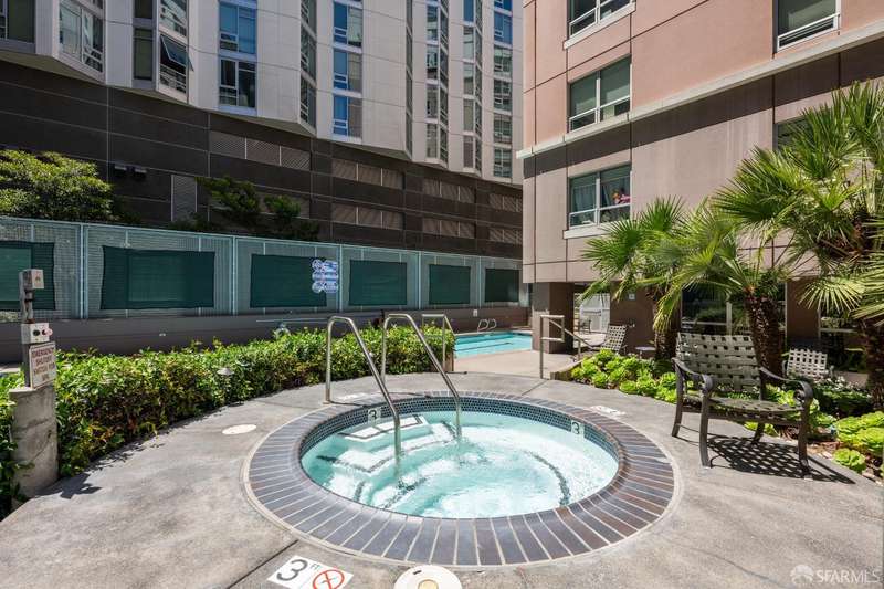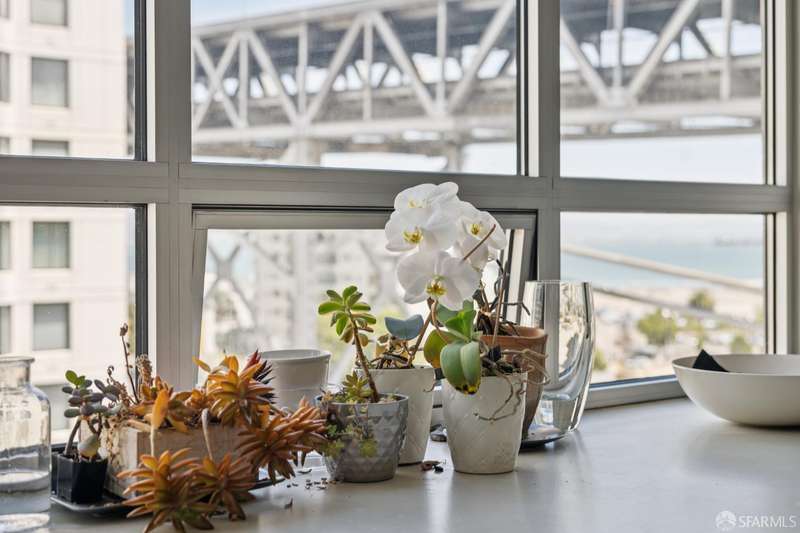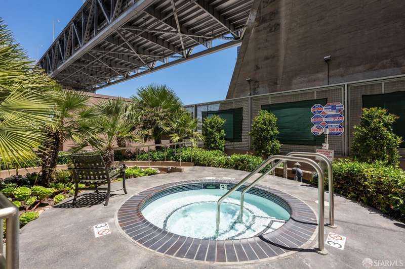 Experience the best of luxury city living in this spacious 828 sq ft one-bedroom plus den condominium at the highly sought-after Bridgeview. Designed for modern lifestyles, this bright and airy home features an open floor plan with a versatile nook ideal for a home office, study, or creative space. Step directly from the bedroom onto your own private patio and enjoy stunning views of the Bay Bridge and sparkling water beyond, an urban sanctuary perfect for morning coffee or evening relaxation. The interior boasts elegant wood flooring, a sleek, modern kitchen with upgraded stainless steel appliances, granite countertops, and ample cabinetry. An in-unit washer and dryer offer added convenience, while a deeded garage parking space and extra storage provide practicality and peace of mind. Bridgeview is a full-service luxury building offering exceptional amenities, including a 24-hour lobby attendant, well-equipped fitness center, outdoor swimming pool, relaxing hot tub, and a rooftop deck with breathtaking bay views. Located in the vibrant South Beach neighborhood at Beale and Harrison Streets, you're just steps from world-class dining, waterfront parks, shops, Oracle Park, and public transit everything you need for the ultimate San Francisco lifestyle.
