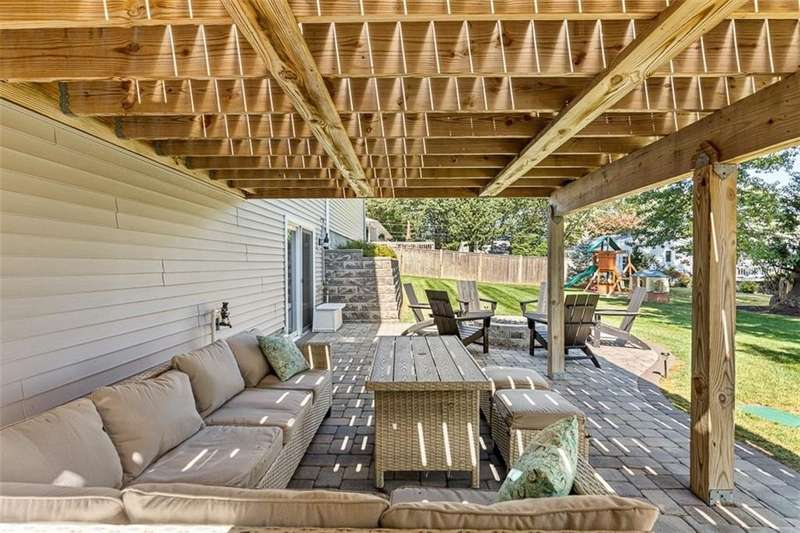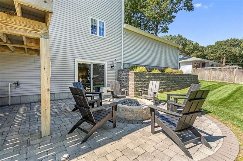 HIGHEST & BEST DUE TUESDAY, 9/23, AT 12PM. This like-new home makes fabulous use of its space; step through a tiled mudroom into the combined kitchen and dining space, where stainless steel appliances, a decorative backsplash, 3 sides of stone countertops, and a center island for informal dining make this a stylish hub of the home. The front to back living room creates entertaining space as elegant or relaxed as you want with the benefit of a Sonos sound system throughout the home. A large slider off the living room opens out to the gorgeous rear deck. Steps lead down the landscaped backyard complete with a welcoming gas fire pit, as well as sliders opening to the lower-level rec room with a handsome dry bar and a full bath. Upstairs, the owner’s suite enjoys a modern full bath with a glass-enclosed shower and walk-in closet, while the remaining 2 bedrooms continue the pleasing style with a full hall bath. This home is connected to natural gas, as well as, a gas hook up for your grill and fire pit, town sewer, and town water heated by a tankless on-demand system. So many ways to enjoy this gem! Enrich yourself at Garvin Elementary, an award-winning Blue Ribbon recipient. Cumberland is a treasure-trove of farms, ponds, and parks, including The Monastery grounds with scenic trails and Diamond Hill Park. Reach Mendon Road shopping, Lincoln Mall, and Emerald Square Mall in 10 minutes. You’ll be close to the Blackstone River Bikeway with a network of woodland paths.