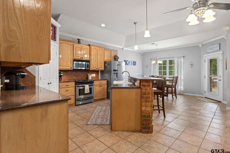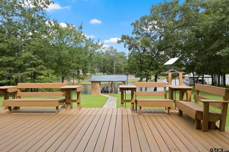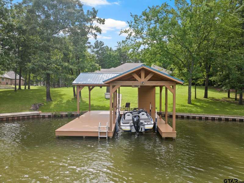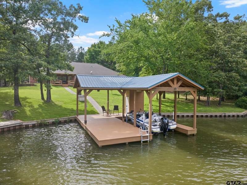 Nestled in a tranquil cove on Lake Bob Sandlin within the coveted Mariner's Retreat subdivision, this luxury lake house is an unparalleled retreat for those seeking a year-round residence or a vacation getaway. Boasting a spacious open floor plan spanning over 2,600 square feet, this exquisite property is designed for effortless entertaining and relaxation. The gourmet eat-in kitchen features a central island with seating, high-end stainless steel appliances, and abundant cabinetry. The expansive primary suite offers a luxurious ensuite bath complete with a rejuvenating jetted tub, dual sinks, and a custom walk-in closet. Three guest rooms share a generously appointed hall bath, with an additional half bath for added convenience. Outside, a stunning boat house with a watercraft lift, tanning deck, and lakeside hangout spot beckons water enthusiasts. Cap off your days by unwinding on the back porch, equipped with a misting system for a bug-free evening as you soak in the picturesque sunset views over Lake Bob Sandlin.