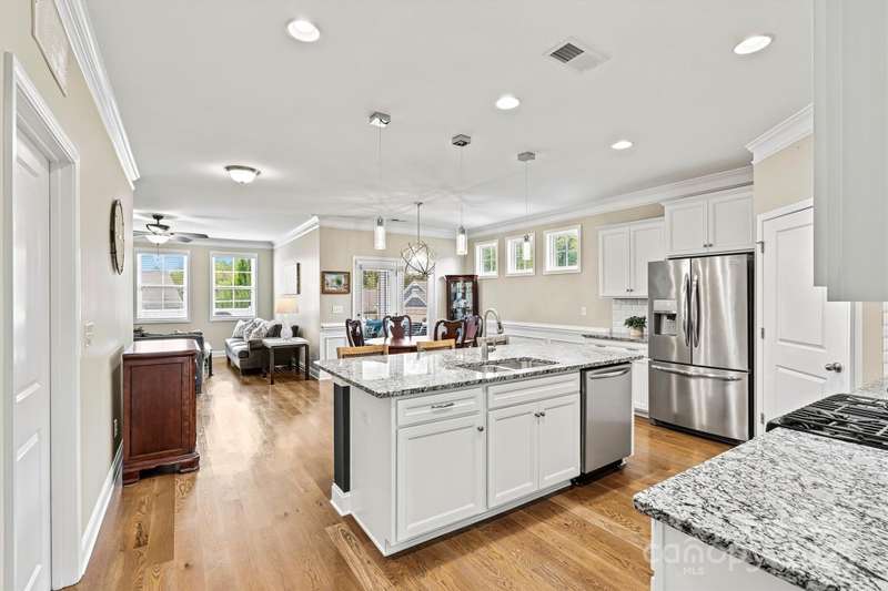 Welcome to easy living on 1 level with a split-bedroom plan in the heart of Sherrills Ford! 3 beds, 2 full baths, and a dedicated office with a bright French door entry. Enjoy a covered, rocking chair front porch, and a screened porch in the rear with a custom paver patio ready for grilling and entertaining year-round in the fabulous NC weather! Hard to come by premium corner lot is fully fenced for privacy and four-legged friends to run and play - plenty of space for your personal dream pool. Open kitchen/dining/living room layout with bright cabinets, a large island with seating, and a walk-in pantry wows the chef and the guests! The huge primary suite is privately tucked behind the living room that features a gas fireplace. Home is set apart by its neutral interior paint, wainscotting, and upgraded prefinished wide plank flooring - a must see! 2 car garage with shelving and exterior door for easy access to the side of the home. Enjoy the community outdoor pool, playground, volleyball court, and street lined sidewalks. 1 minute drive to Publix grocery and a variety of dining/shopping. 5 minutes to Mtn Creek Park for outdoor walks by the lake and more! Lake Norman enthusiasts are conveniently only 5 minutes from the Landing Marina and Waterfront dining - boat club memberships available through The Landing. Easy access to HWY 150 to Mooresville or Hickory and HWY 16 to Charlotte, Denver, and Huntersville.Washer, dryer, refrigerator included. OPEN HOUSE Sat 10/18, 12-2:00.