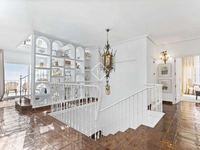 Located in a privileged enclave of El Campello, this spectacular luxury beachfront villa offers an unrivalled living experience. With direct private access to the sand and panoramic views of the Mediterranean, this property redefines the concept of exclusivity, combining sophisticated design, spaciousness and maximum comfort. From the first moment, this villa seduces with its elegance and functionality. On the ground floor, a spacious living-dining room with fireplace becomes the heart of the home, with large windows that flood the space with natural light and allow you to enjoy the stunning views. The spacious and modern kitchen has direct access to the garden, creating a perfect environment for outdoor gatherings. In addition, this floor has a guest bathroom and an study that can be adapted as an additional room depending on needs. Going up to the first floor, the bedroom area invites serenity with its cosy reading corner and access to a large terrace with uninterrupted sea views. On this level, four luxurious bedrooms, all with en-suite bathroom , guarantee an intimate and exclusive space for each member of the family or guests. The top floor is a true sanctuary of peace, with a panoramic living room where the sea becomes the absolute protagonist. In addition, on this level there is a fifth bedroom with an en-suite bathroom , ideal for those looking for a private retreat within the same house. The exterior of the villa is designed to make every moment enjoyable. Its private pool, surrounded by garden areas , invites you to relax, while the exclusive SPA area on the -1 floor adds a touch of sophistication and well-being. For added convenience, the property has a large garage and an independent apartment, perfect for guests or service staff. This villa is much more than a residence; it is a statement of style and distinction. Its unbeatable location, combined with high-end finishes and a design designed for absolute comfort, make it a unique opportunity for those looking to live by the sea without giving up luxury and privacy. Discover a new level of exclusivity in the heart of the Costa Blanca.