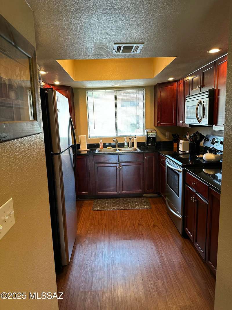 Charming 2-bed, 2-bath condo in the gated community of The Villas at Sabino Canyon! This second-floor unit offers mountain views, a split floor plan, newer A/C and wood laminate flooring and a private balcony. Enjoy resort-style amenities including a pool, spa, fitness center. Prime location near Sabino Canyon, hiking, dining, and shopping. A perfect desert retreat!