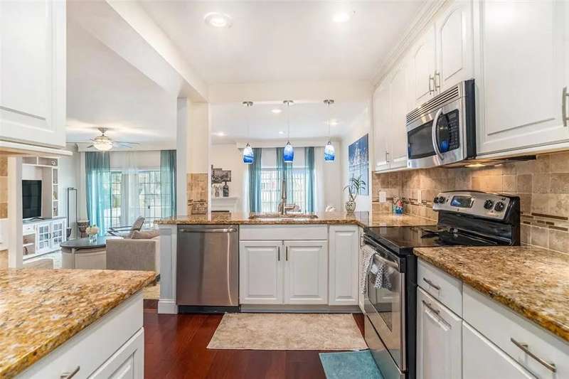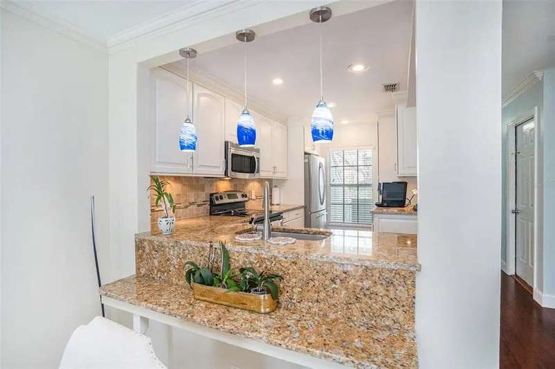 Lovely townhome nestled at the end of a private drive with a pond and fountain view in highly coveted Ballast Point. There are 3 balconies to enjoy all the wonderful Tampa sun and warm weather one from the 1st floor living area, one from the master bedroom, and a small one from the 2nd bedroom. Updated kitchen with granite, wood floors, stainless appliances, and breakfast bar. The split level floor plan allows for an open feel with views of the pond and fountain from the entire living area. There is a large great room with a fireplace that splits between the living room and dining area. There is also a dry bar with wine cooler tucked under the stairs to make entertaining easy from the living room and large balcony. The 2 bedrooms upstairs have ensuite baths, private balconies, and there is a walk-in closet in the owners suite. Other amenities are laundry room on the 2nd floor, large one car garage with extra storage, and community pool. Only ½ mile to Ballast Point Park with a dock, 2 miles to MacDill AFB, and 5 miles to Downtown Tampa.